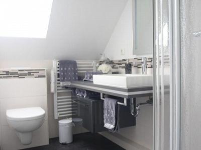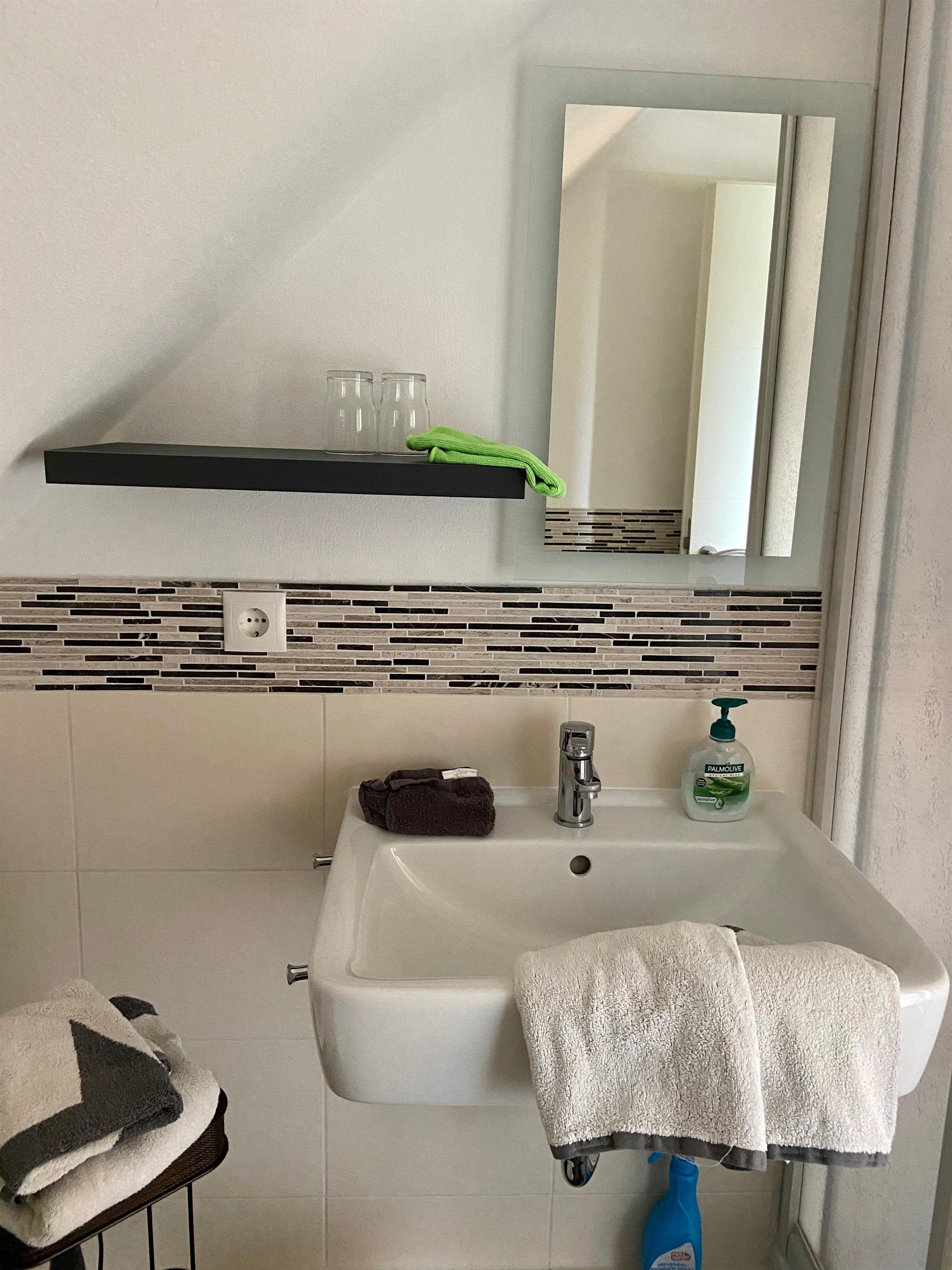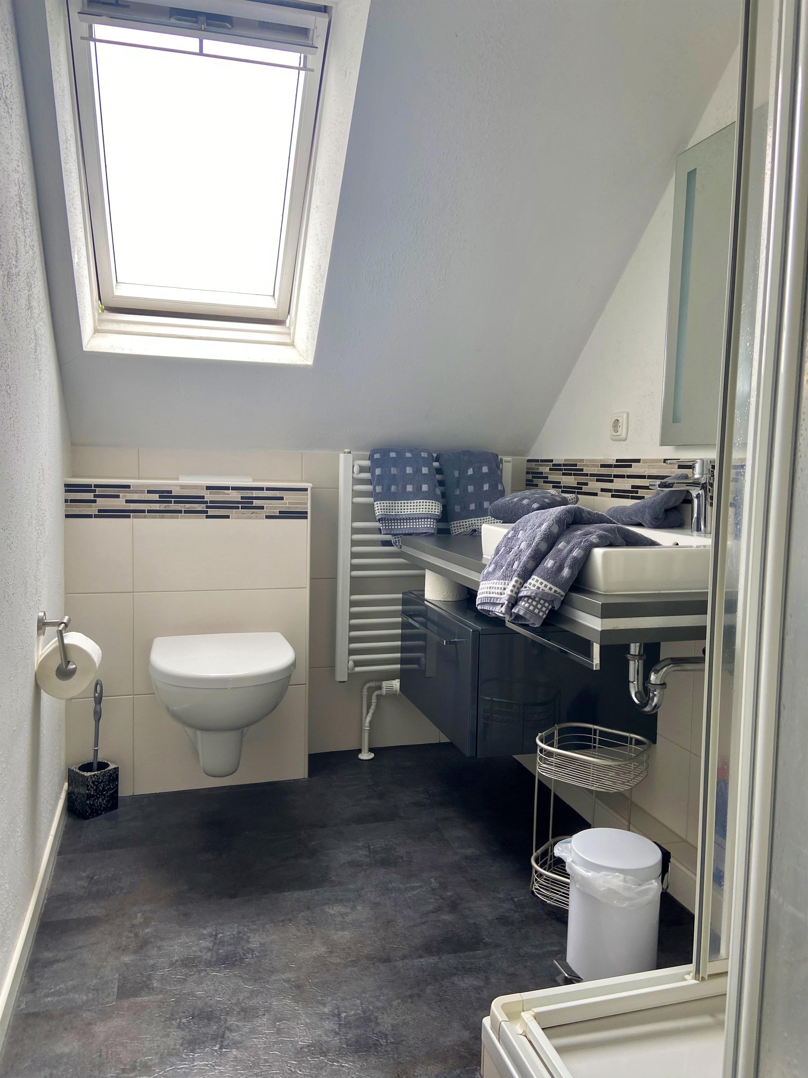2 kombinierte, helle Bäder (Du/WC) mit Haartrockner und Personenwaage