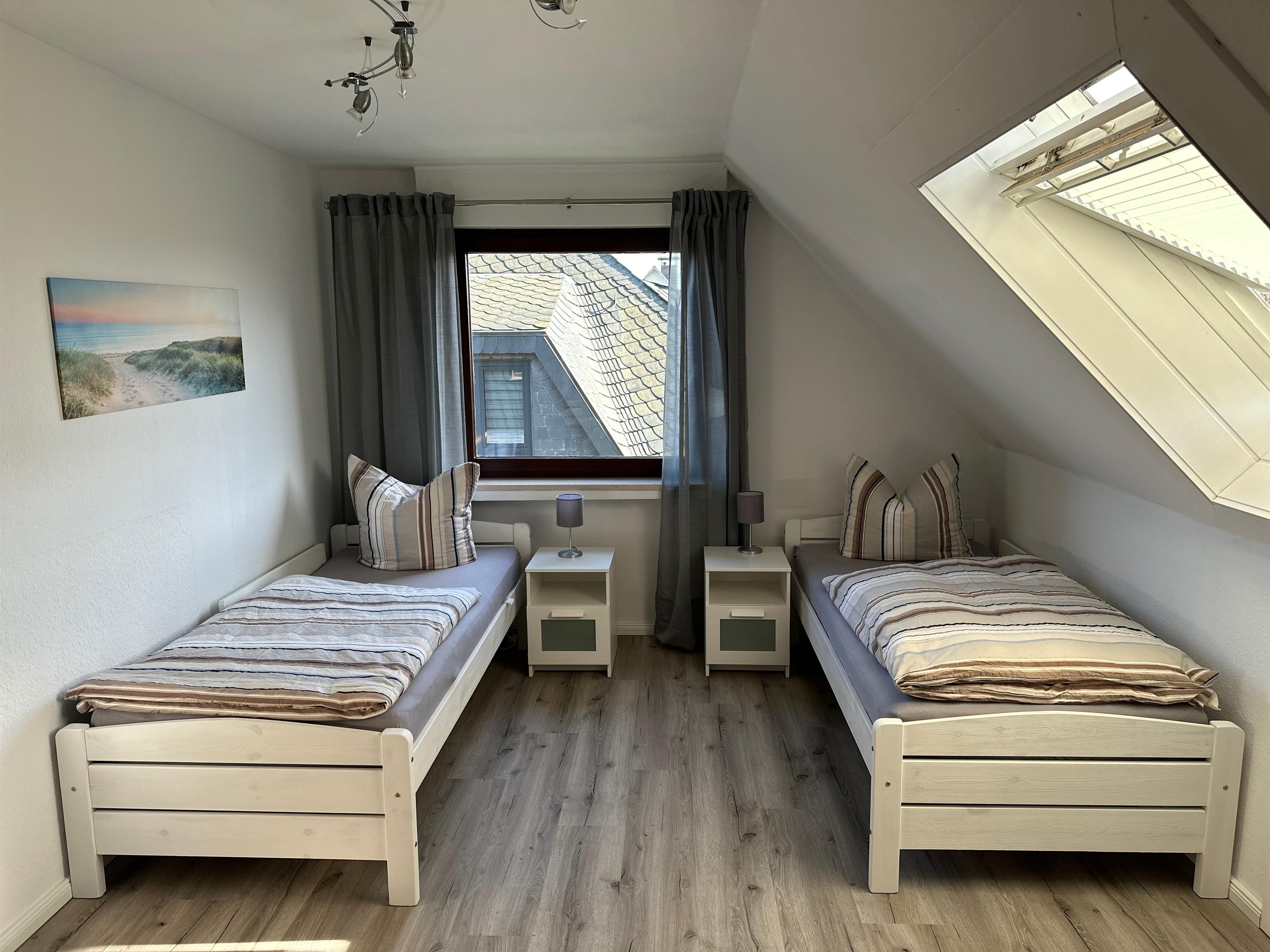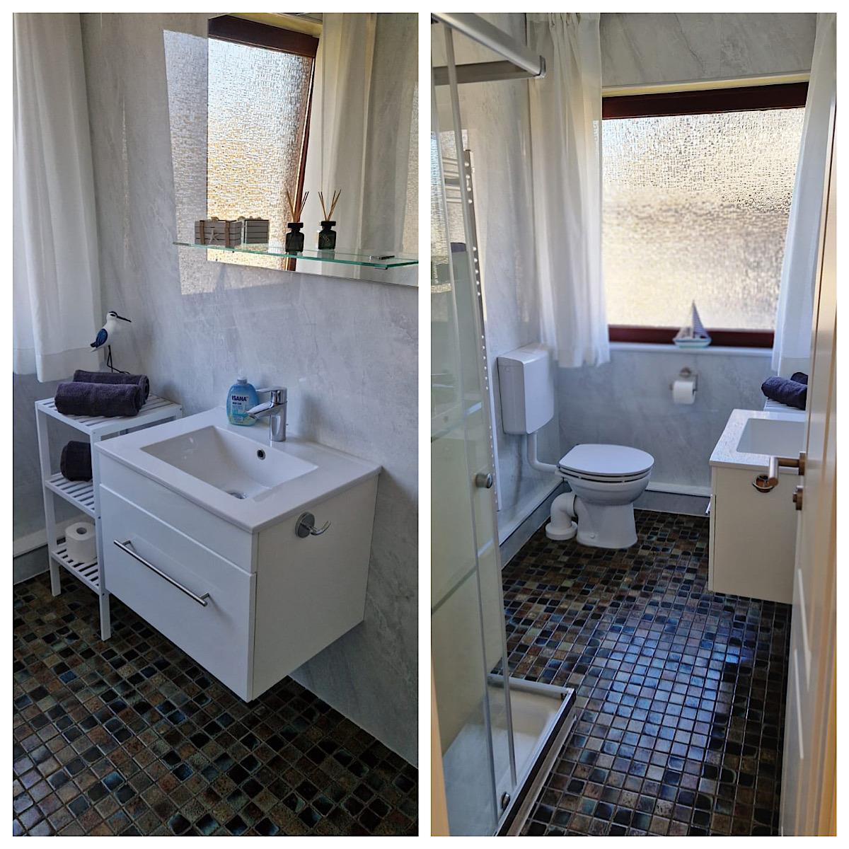 Das Ferienhaus Moin Moin ist perfekt für Familien. Im Erdgeschoss finden Sie ein Wohnzimmer mit offener Küchenzeile, Essplatz und Smart-TV, ein Doppelschlafzimmer, ein Tageslicht-Badezimmer mit Dusche/WC und die Terrasse mit Zugang zum Garten. In der ersten Etage befindet sich zwei weitere Schlafzimmer, eins mit Doppelbett und eins mit zwei Einzelbetten, sowie ein weiteres Tageslicht-Badezimmer mit Dusche/WC.
