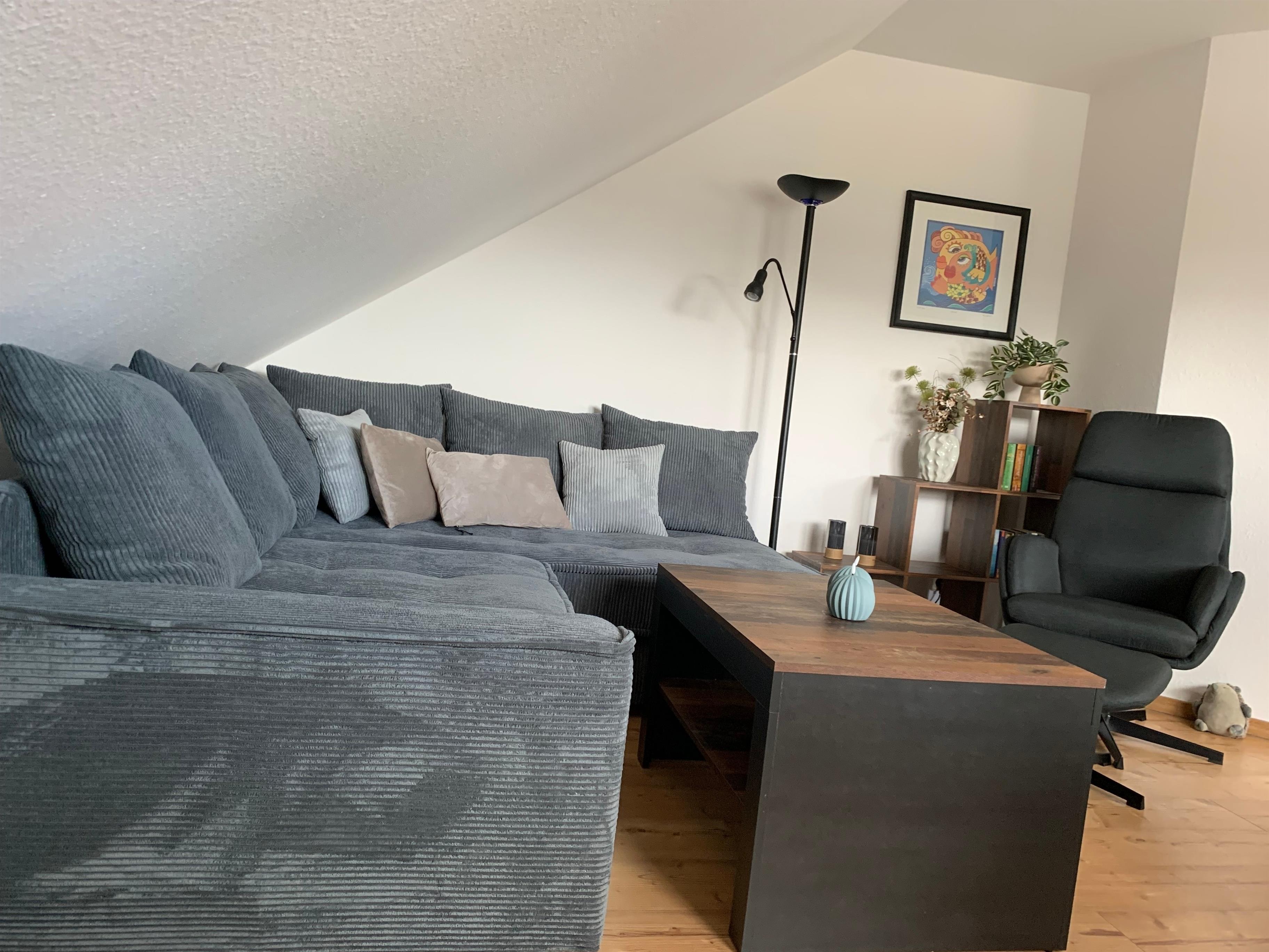 Die 3-Zimmer-Ferienwohnung liegt in der 1. Etage und bietet Platz für max. 4 Personen. Die Wohnfläche der ca. 68 m² großen Unterkunft verteilt sich auf ein Wohnzimmer (WLAN und Sat-TV vorhanden) mit offener Küchenzeile sowie auf zwei Schlafzimmer und das Badezimmer. Das Wohn- / Esszimmer ist mit einer großen gemütlichen Sitzecke versehen - ebenso mit einer offenen Küchenzeile und mit einem Esstisch - die Küchenzeile ist u.a. mit 4-er Ceranfeld, Backofen, Kühlschrank ,Toaster und Kaffeemaschine ausgestattet. Die beiden Schlafzimmer sind mit 1 Doppelbett 1,80 x 2 m sowie Kommode versehen Eins der Schlafzimmer hat 2 Einzelbetten, die auf Wunsch zu einem Doppelbett zusammengefügt werden können. Die Fenster sind mit Jalousien verdunkelbar. Das Badezimmer verfügt über Dusche, Eckbadewanne und WC.