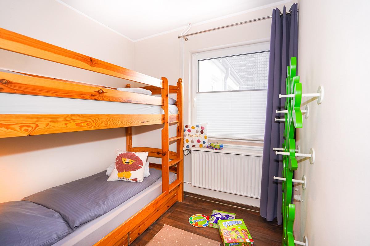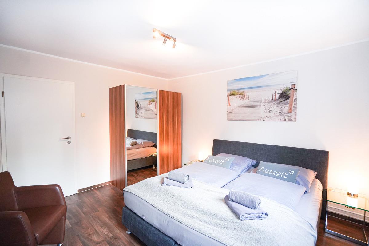 Die Wohnung "Strandmuschel" ist mit 96 qm die größte Einheit im Haus. Sie liegt im Erdgeschoß und besteht aus einem hellen, großzügigen Wohnzimmer mit Flachbild-TV, DVD-Player, Stereo-Anlage mit CD-Player, einer großen nicht einsehbaren Terrasse (ca. 36 qm), einem Essplatz für 6 Personen, einer modernen Marken-Einbauküche u. a. mit Cerankochfeld, Backofen, Kühl- Gefrierkombination, Geschirrspüler, Mikrowelle, Kaffeemaschine, Wasserkocher usw. Die Komfort-Wohnung verfügt über zwei Schlafzimmer mit hochwertigen Doppelbetten sowie einem Kinderzimmer mit Etagenbetten (90 x 2 m). Eines der Schlafzimmer verfügt über ein Master-Duschbad. Ein weiteres großes Duschbad mit Tageslicht steht ebenfalls zur Verfügung.