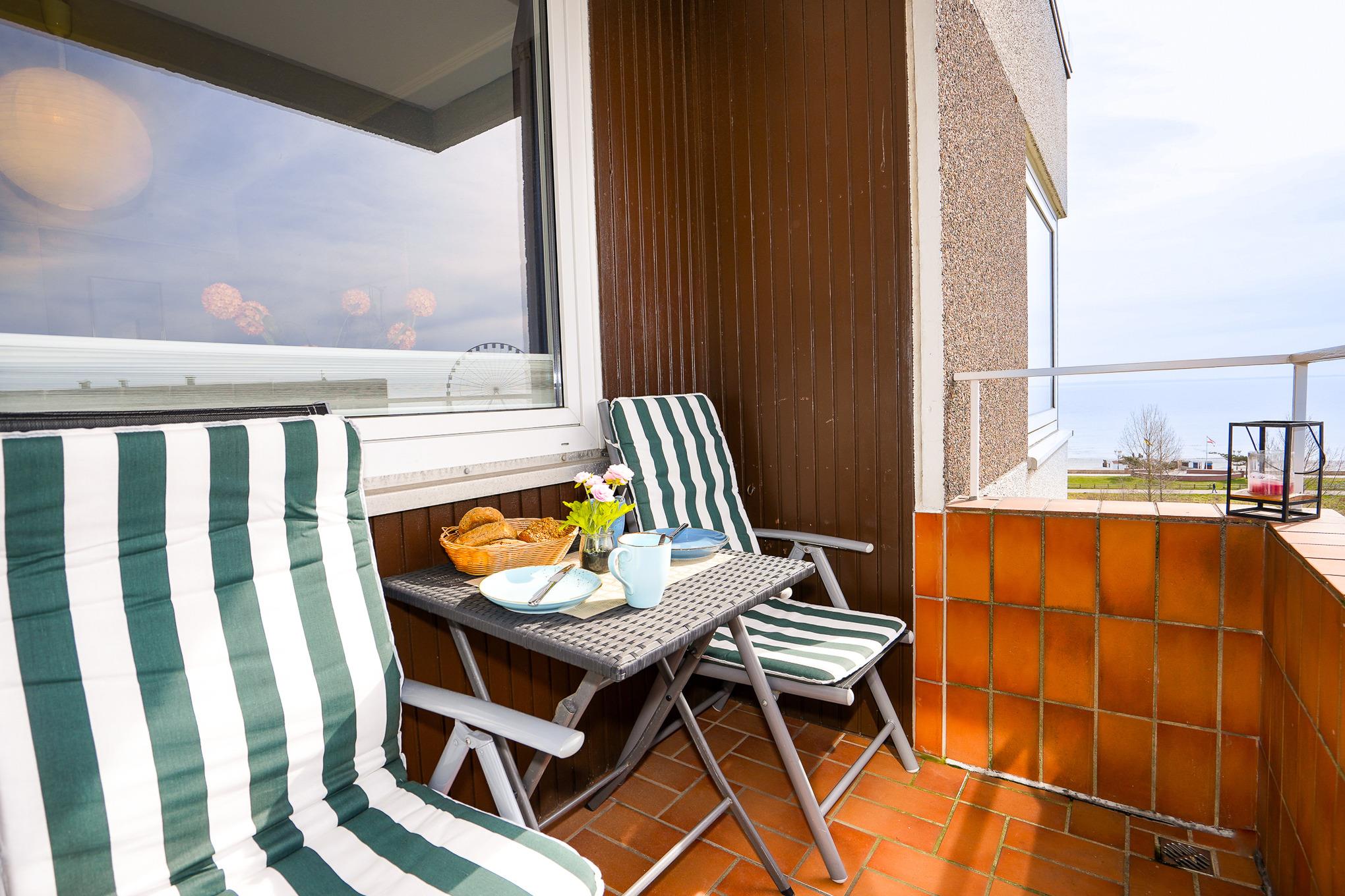 Moderne Ferienwohnung in Grömitz mit traumhaftem Meerblick und Balkon nahe dem Strand.