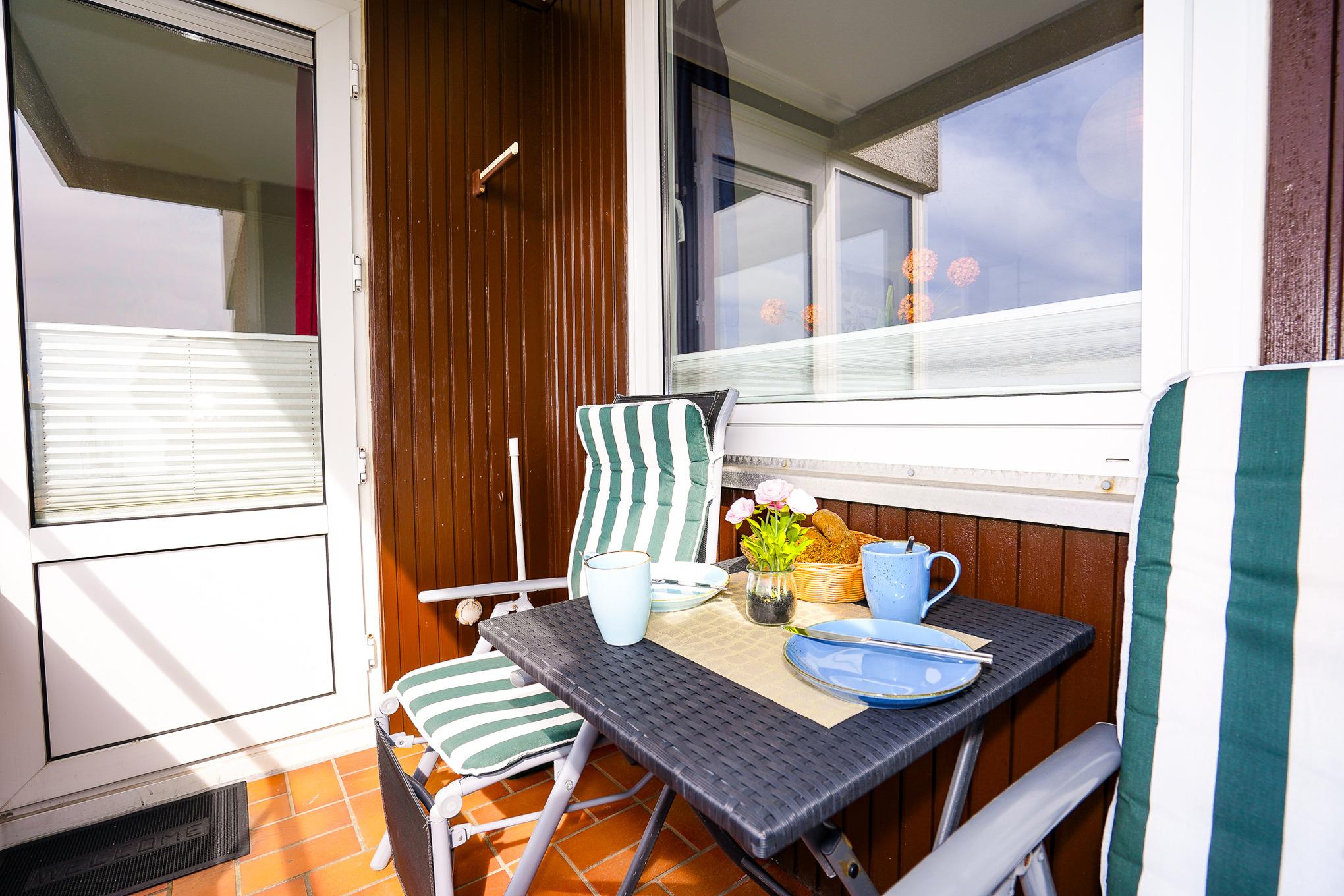 Entspannen Sie nach einem Tag am Strand auf Ihrem nach Süd-Westen ausgerichteten Balkon oder auf dem Sofa mit Blick auf die Ostsee durch die großen Fenster.