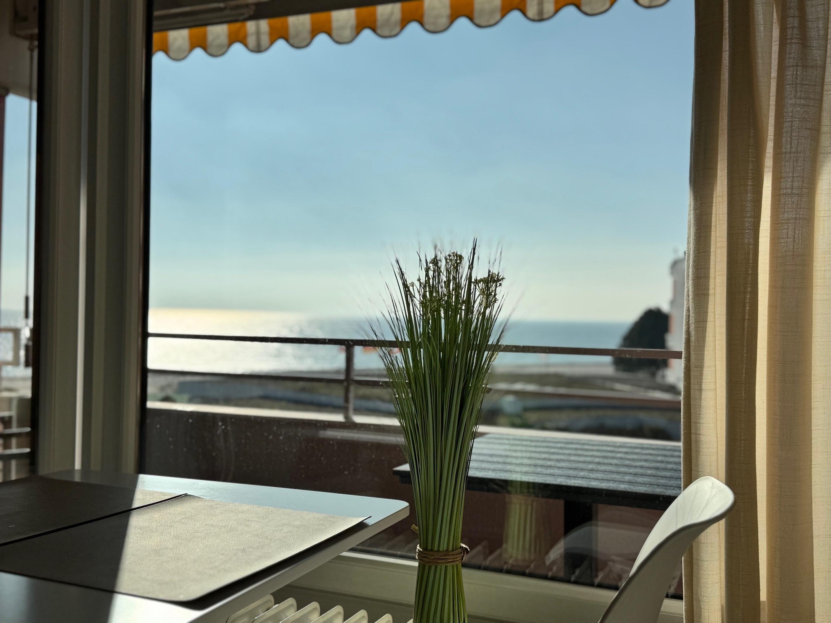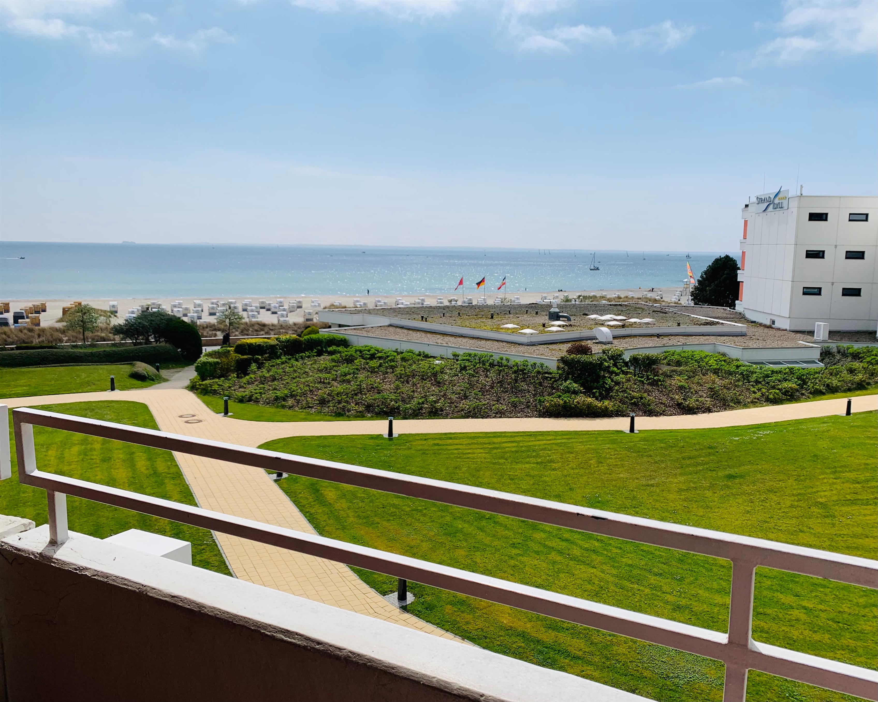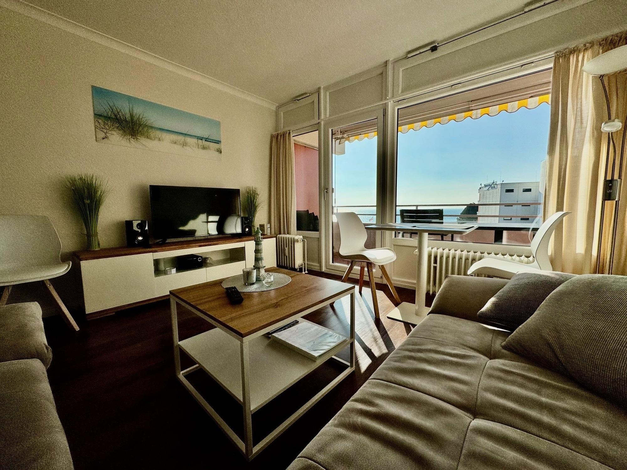 Moderne Ferienwohnung in Grömitz mit Seeblick, Balkon, Schwimmbad und Sauna, ideal für erholsame Urlaubstage zu zweit.