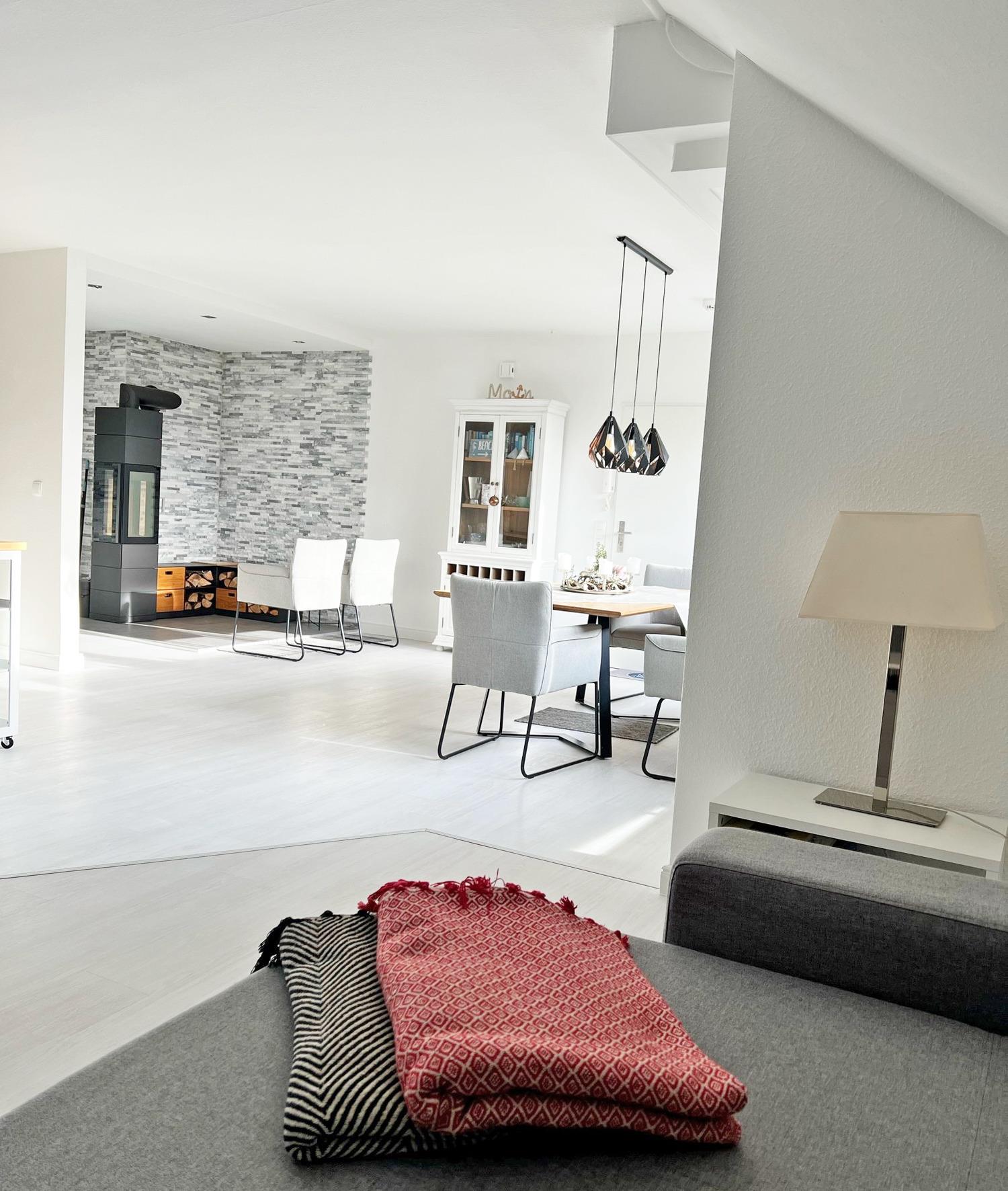 Die 104 qm große Ferienwohnung bietet Ihnen 2 Schlafzimmer, 2 Bäder, einen offenen Wohn-Essbereich sowie einen Relax-Bereich mit Kaminofen.