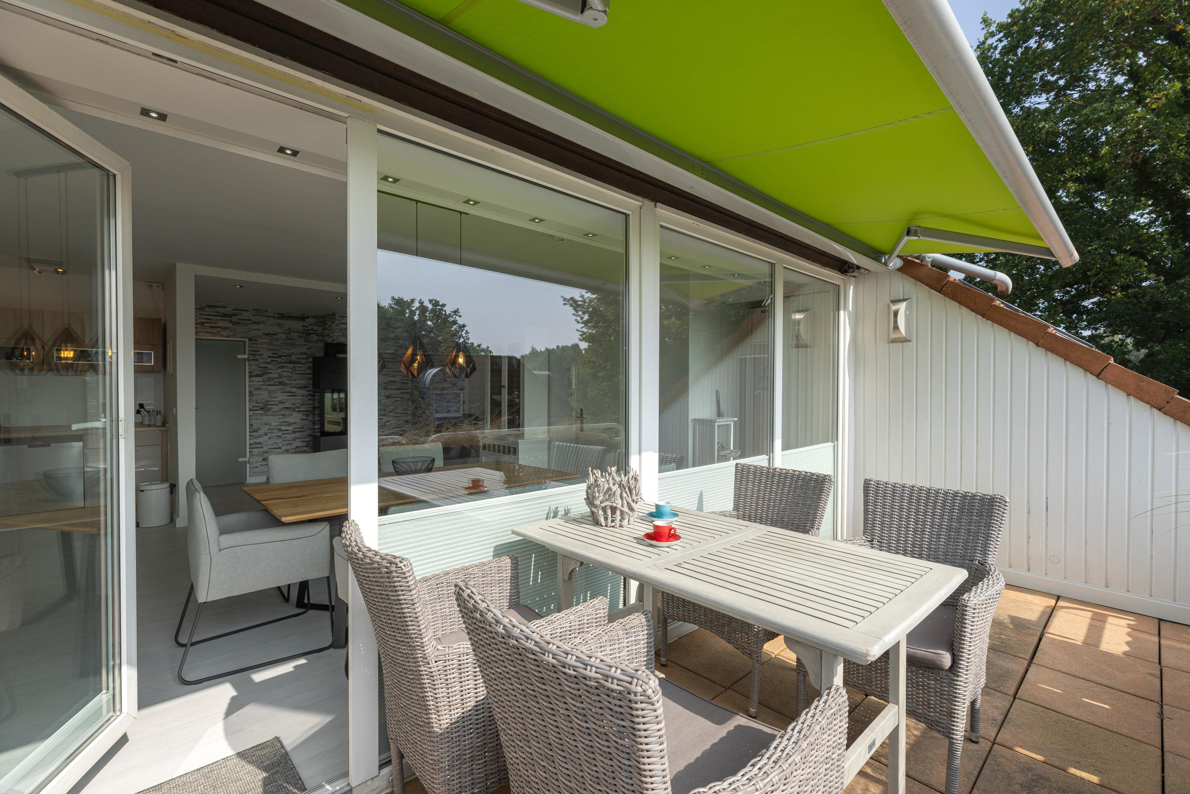 Großzügige Penthouse-Ferienwohnung in Grömitz mit Pool, Sauna und sonniger Südloggia.
