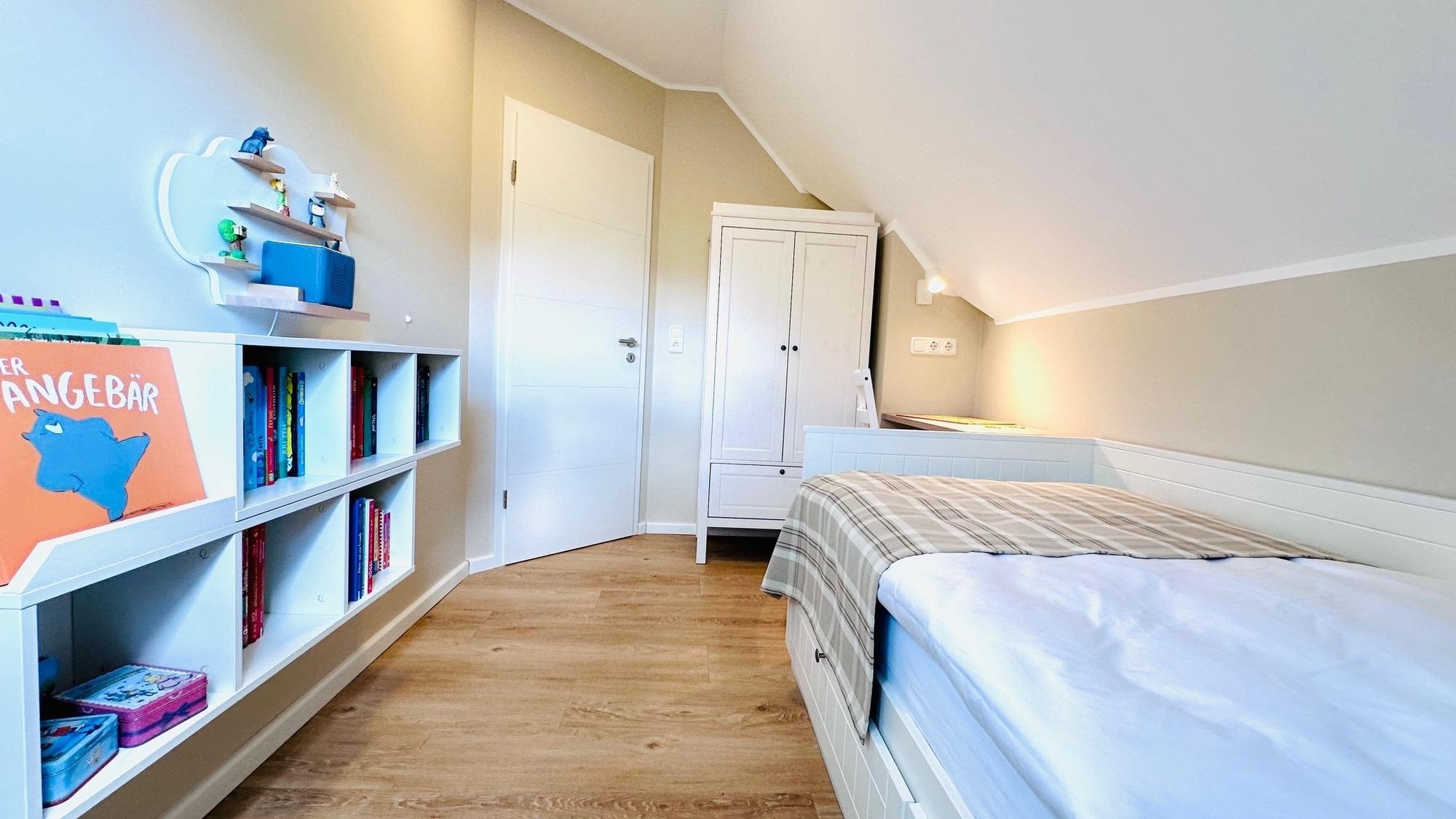 Die Wohnung im OG eines schönen Zweifamilienhauses liegt in einer ruhigen Sackgassen-Lage weniger als 650 m vom Strand entfernt. Das Zentrum, die Promenade und die Ostsee sind in wenigen Gehminuten zu erreichen. Das „komood“ bietet 2 gemütliche Schlafzimmer mit Verdunkelungsmöglichkeiten (Gardinen bzw. Velux-Rollo). Das Schlafzimmer verfügt über ein Doppel-Boxspringbett, Kleiderschrank, Safe, Ablagen und TV und das zweite Schlafzimmer ist mit einem Einzelbett (200 x 90 cm), Kleiderschrank, Bücherregal und Schreibtisch ausgestattet. Für Groß&Klein zum Wohlfühlen.