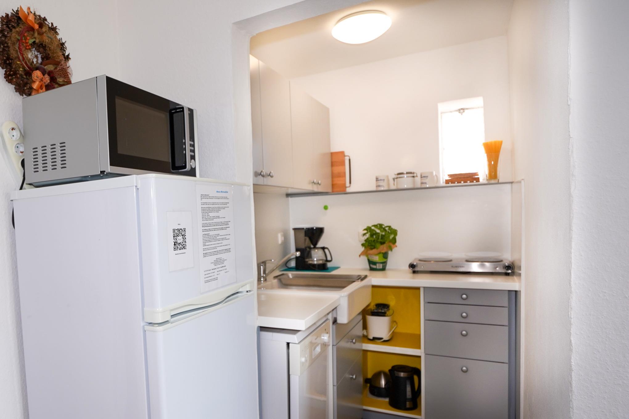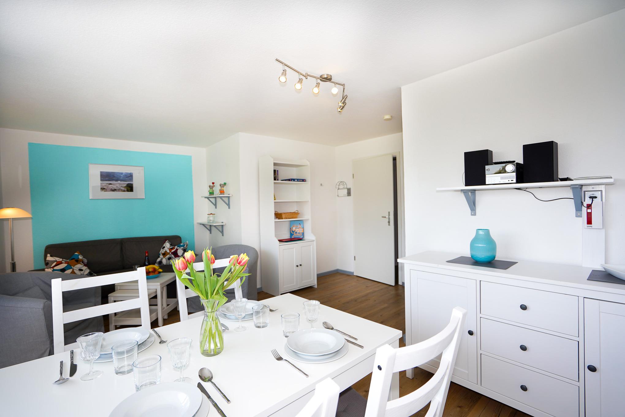 Die modern ausgestattete Nichtraucherwohnung mit einer Größe von ca. 40 qm ist für bis zu 3 Personen eingerichtet. Im Wohnzimmer mit SAT-TV befinden sich eine Schlafcouch sowie ein Esstisch mit Stühlen. In der kleinen Küche finden Sie neben einem 2-Platten Kochfeld und den üblichen Elektrogeräten auch eine Spülmaschine und eine Mikrowelle vor.