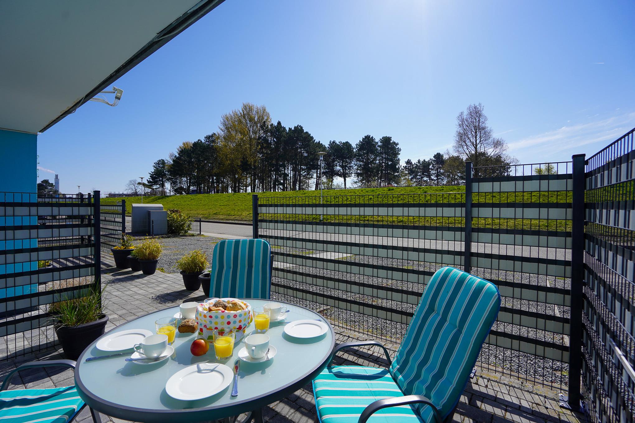 Falls Sie mal nicht an den Strand möchten, genießen Sie die Sonne auf Ihrer ca. 10 qm großen Terrasse. W-Lan und ein kostenloser PKW Stellplatz sind selbstverständlich vorhanden.