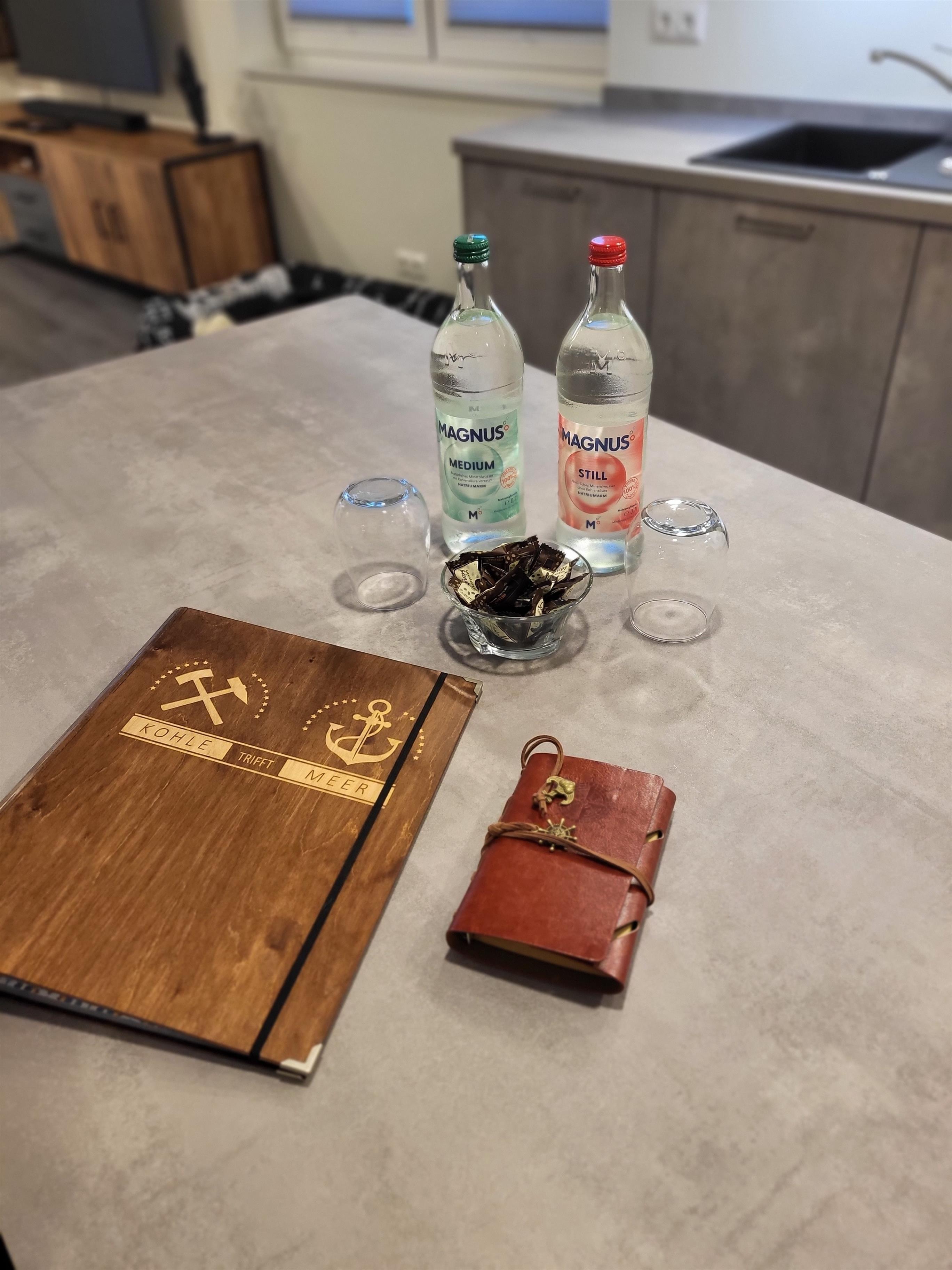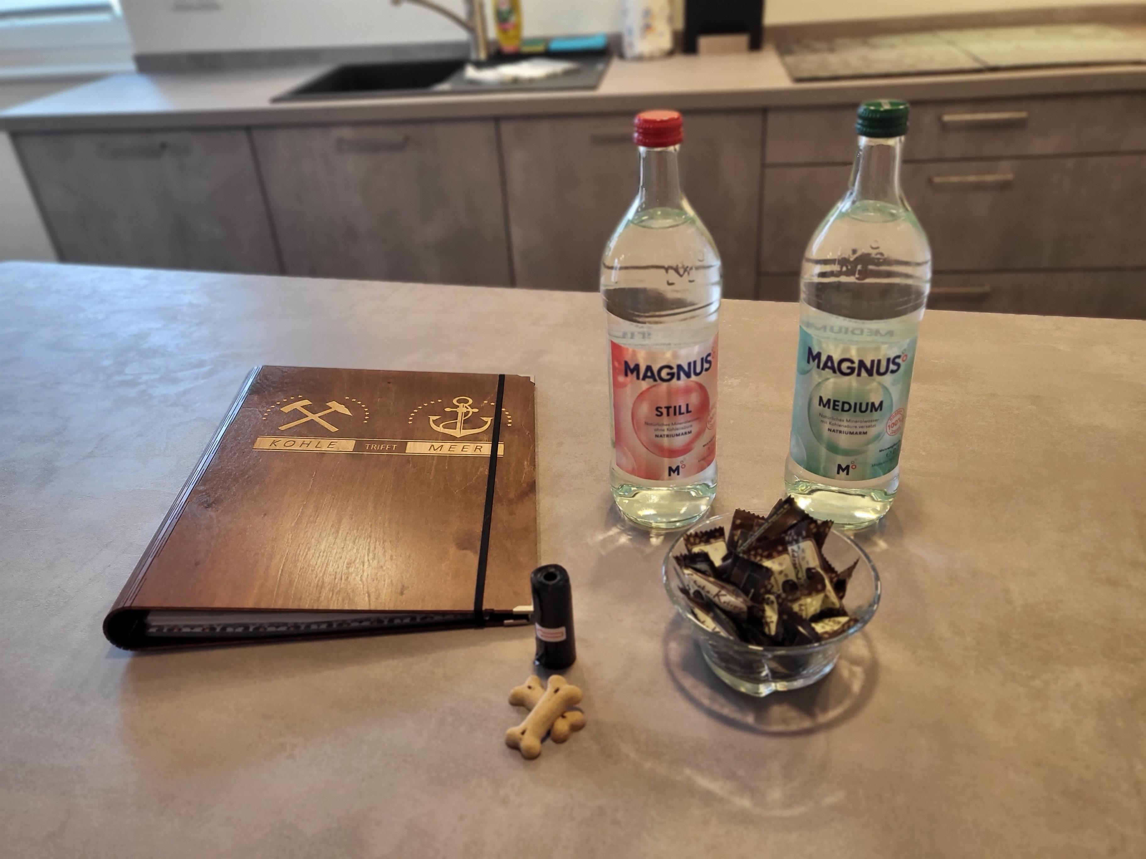 Wir möchten, dass sich alle Gäste in unserer Ferienwohnung genauso wohlfühlen wie wir. Bei Ihrer Ankunft sind die Betten frisch bezogen und die Handtücher liegen im Badezimmer bereit. Ein kleines Begrüßungspaket mit 2 Flaschen Wasser, 2 Kaffeekapseln, 2 Spülmaschinentabs und etwas Süßem darf natürlich nicht fehlen. Spülmittel sowie ein Geschirrhandtuch und ein Spülschwamm liegen bei Ankunft immer bereit.