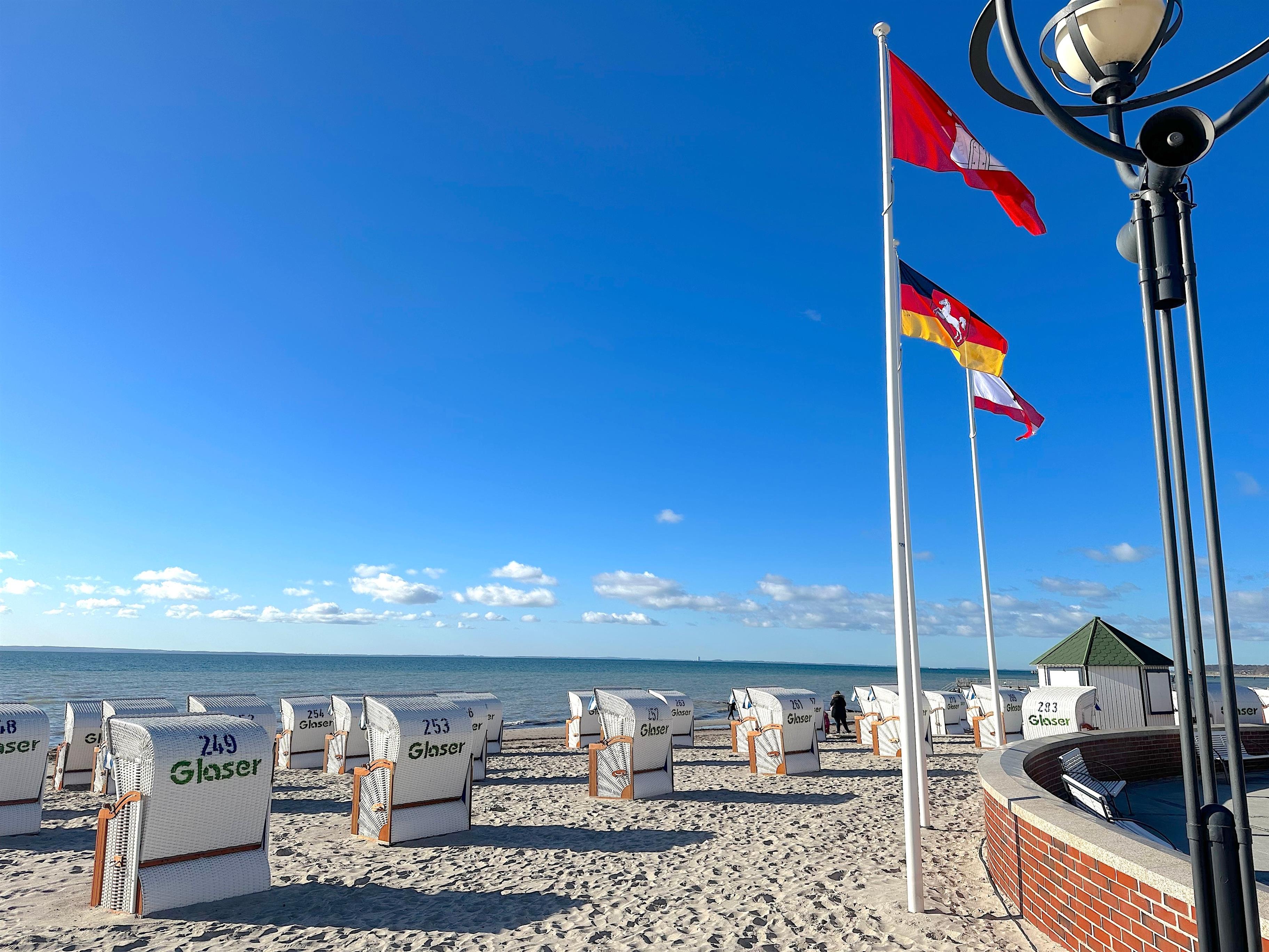 Highlight: Von Ostern bis ca. Ende Oktober (saison-/wetterabhängig) steht dir kostenlos ein XXL-Strandkorb für drei Personen direkt am Ostsee-Strand zur Verfügung.