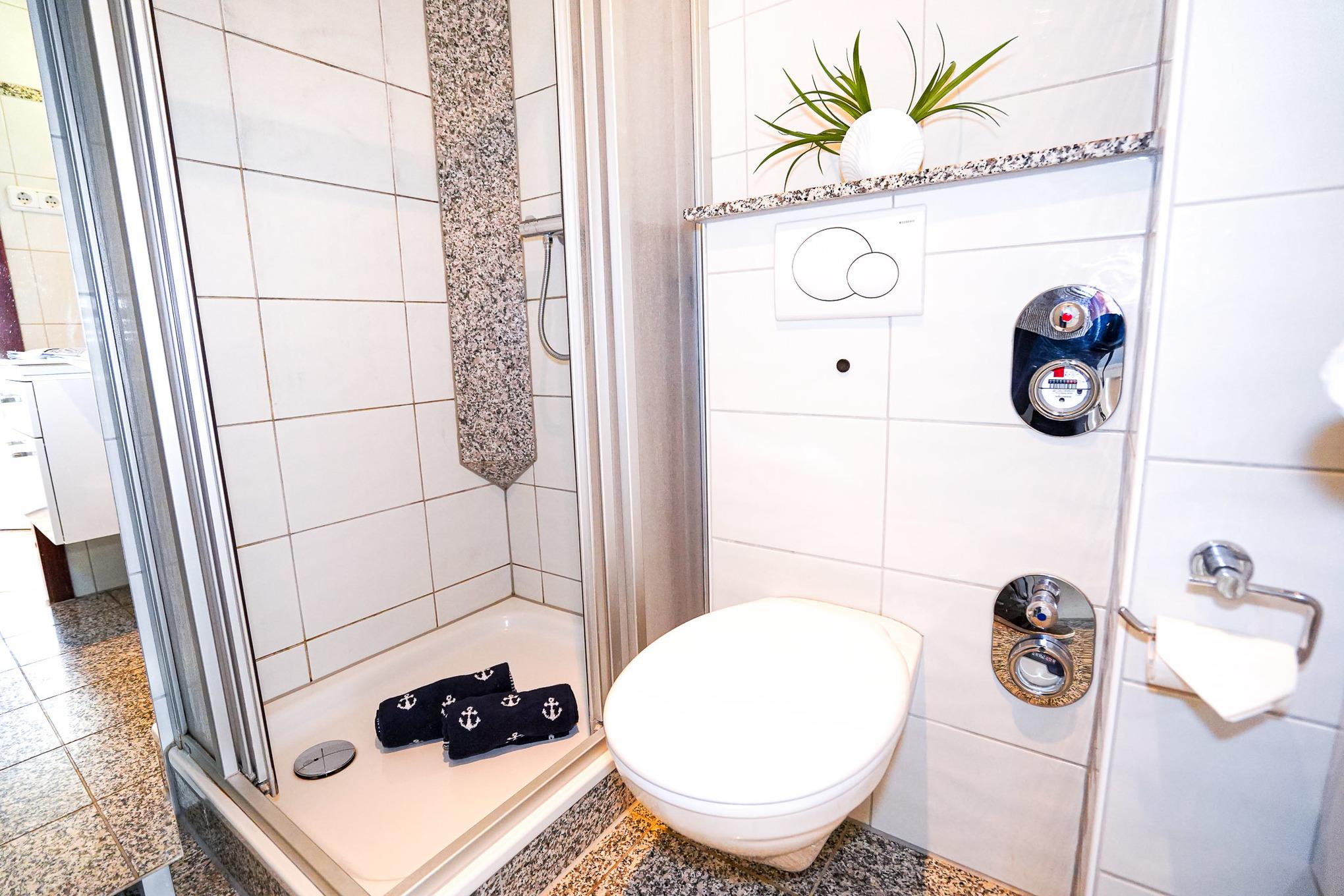 Das Schlafzimmer in Holzoptik und Granitboden, ist mit einem Doppelbett (200 x 200cm) und einem großen Kleiderschrank ausgestattet. Im Badezimmer finden Sie eine praktische Dusche, WC und Waschbecken vor.
