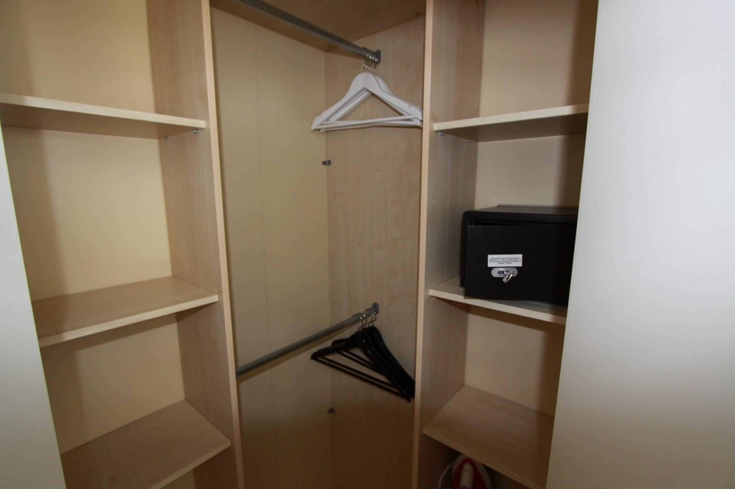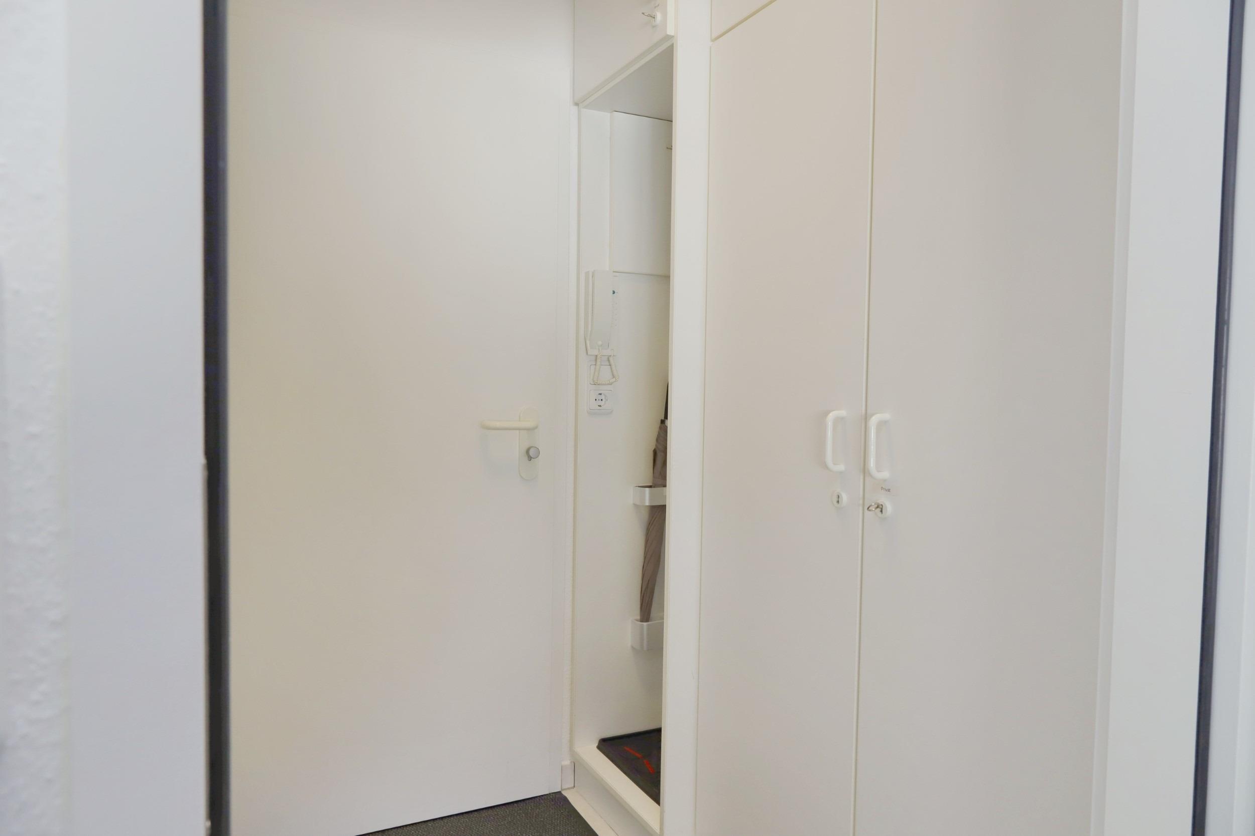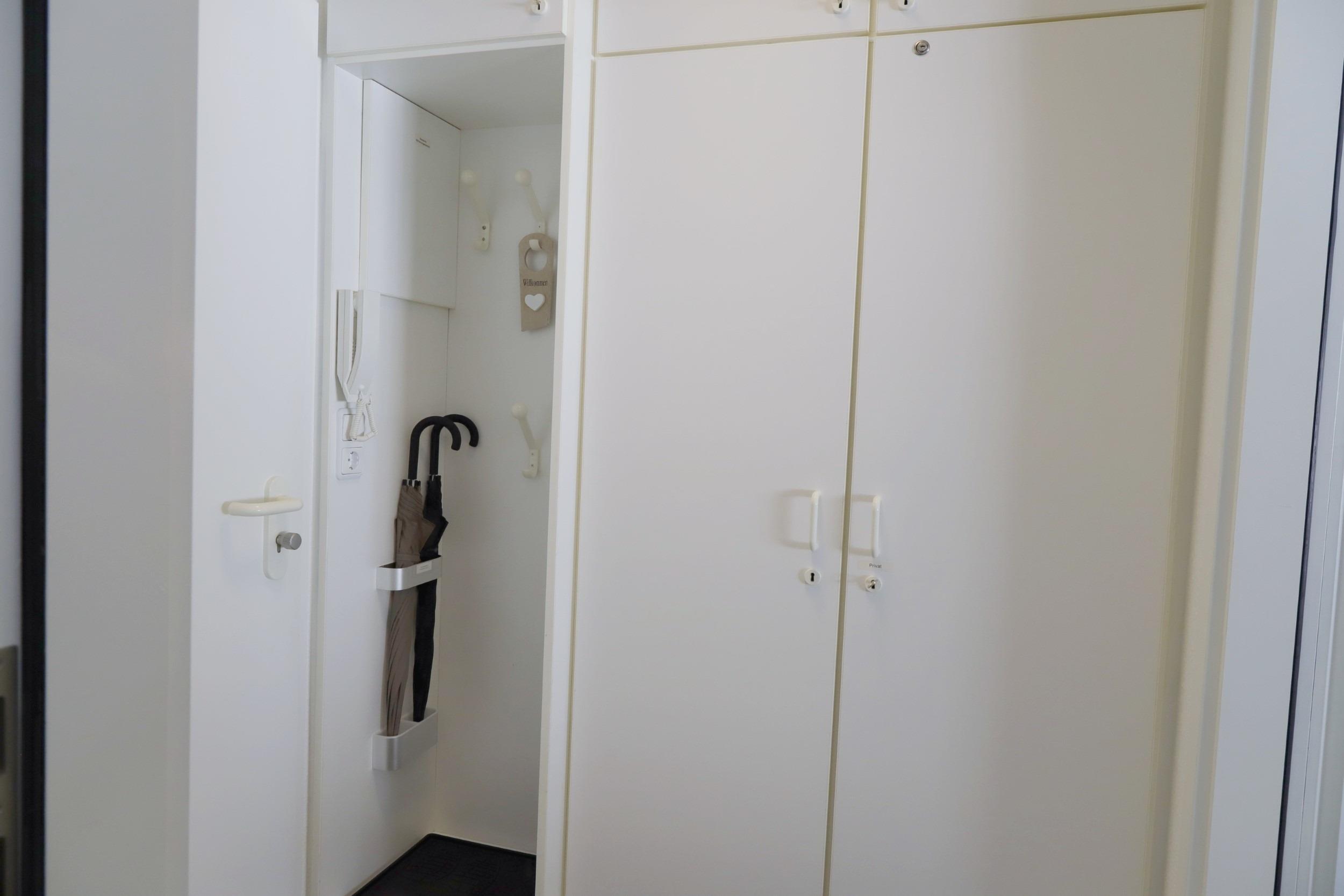 Im Eingangsbereich der Ferienwohnung befindet sich ein Einbauschrank und die Garderobe.