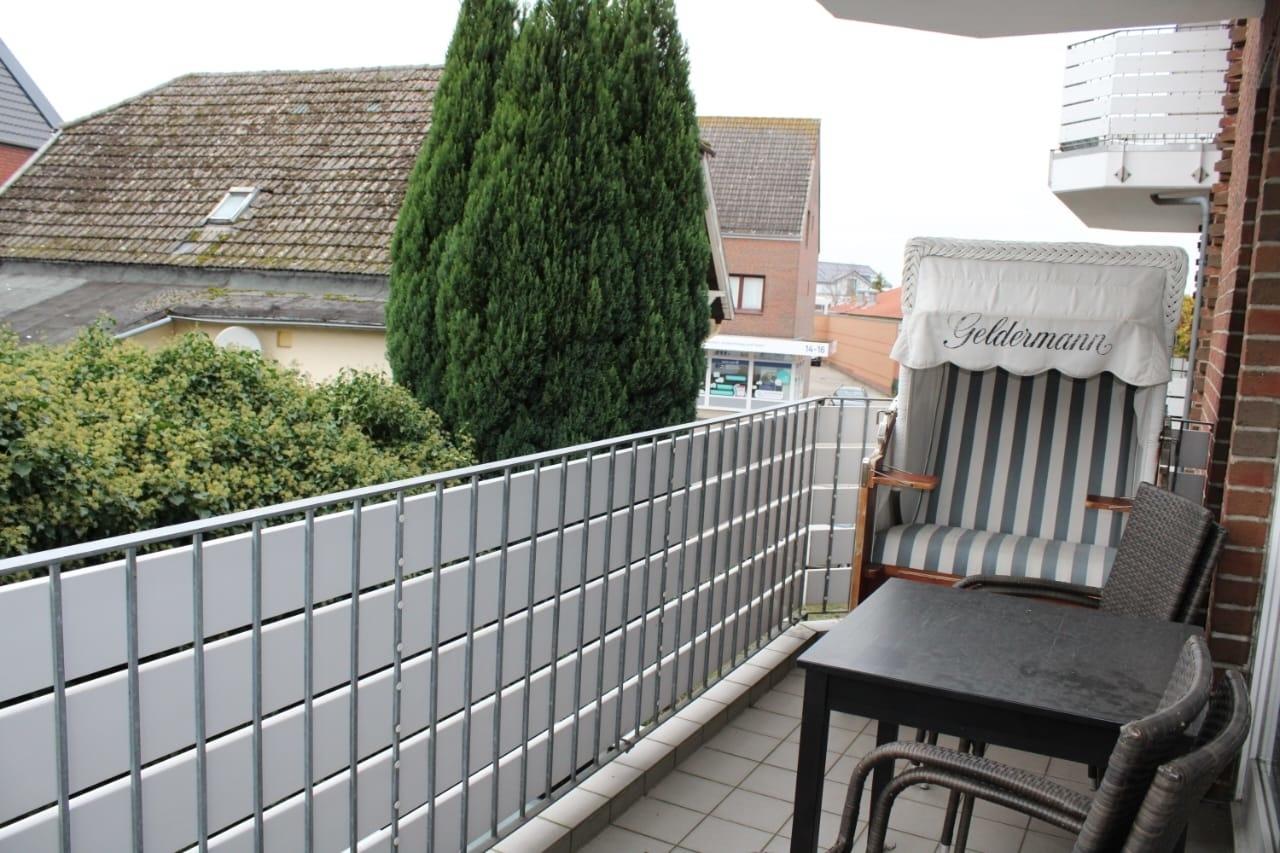 Die Wohnung verfügt über 2 große möbelierte Balkone, einer davon sogar mit Strandkorb, lädt zum entspannen ein und bietet Ihnen Ruhe vom Alltag.