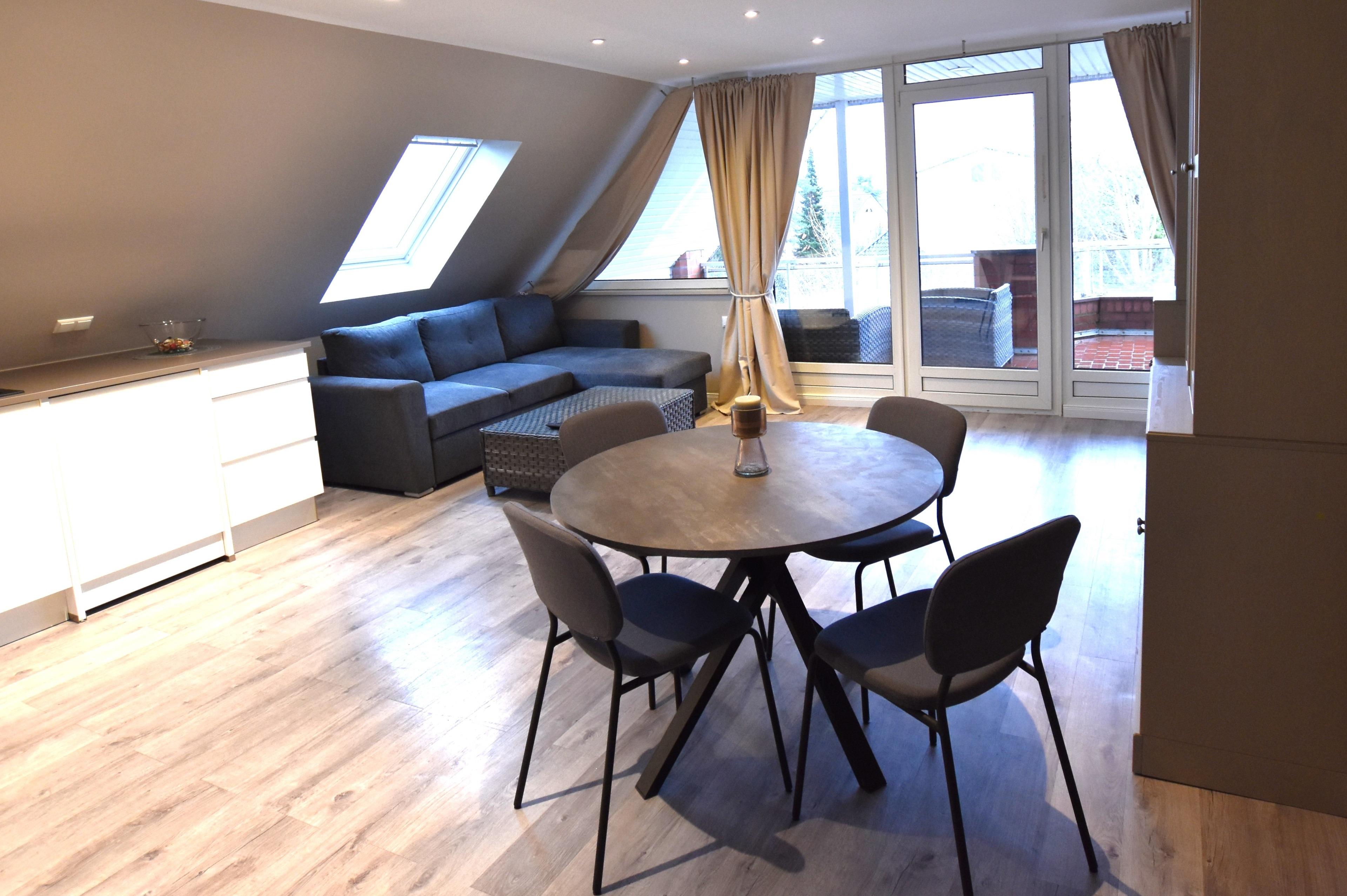 Gemütliche Ferienwohnung in Grömitz mit Balkon, moderner Küche und WLAN, ideal für entspannte Urlaubstage nahe der Ostsee.