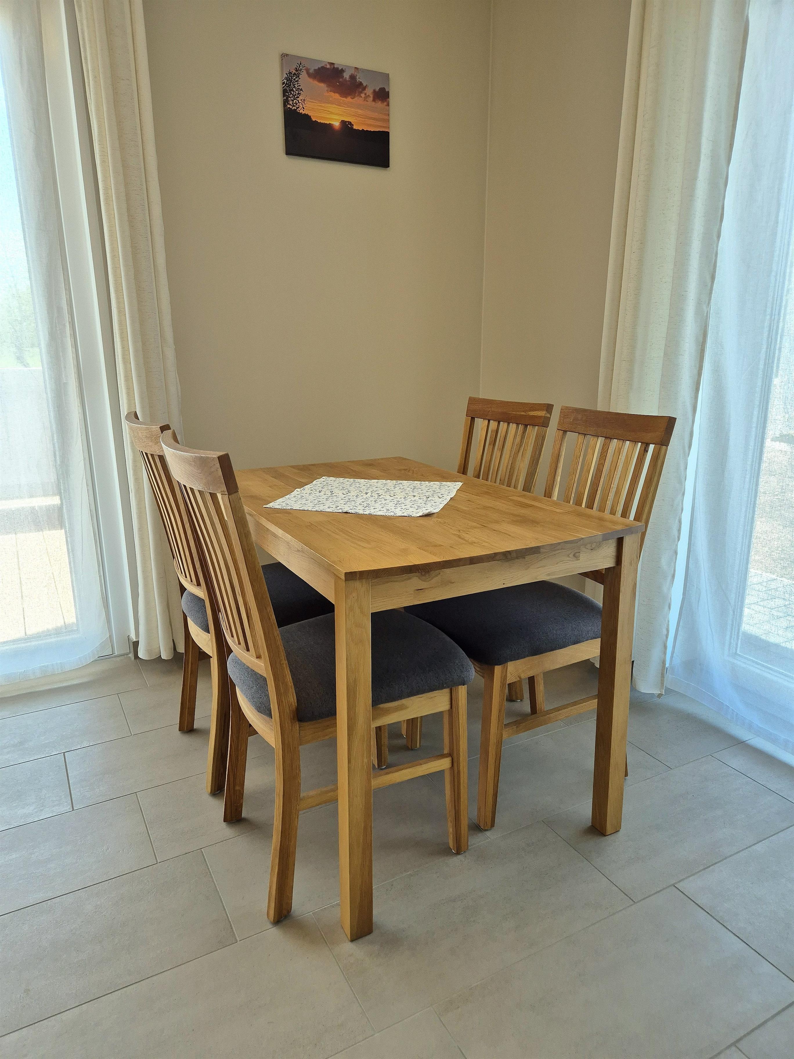 Auf der Terrasse des Ferienhauses können Sie mit Blick in die unberührte Natur entspannen: morgens die Rehe oder Hasen auf der Wiese beobachten oder abends den Sonnenuntergang über dem Wald genießen. Ein großer Garten mit Grillplatz liegt direkt vor Ihrer Terrasse und bietet weitere Möglichkeiten für Erholung und Entspannung.