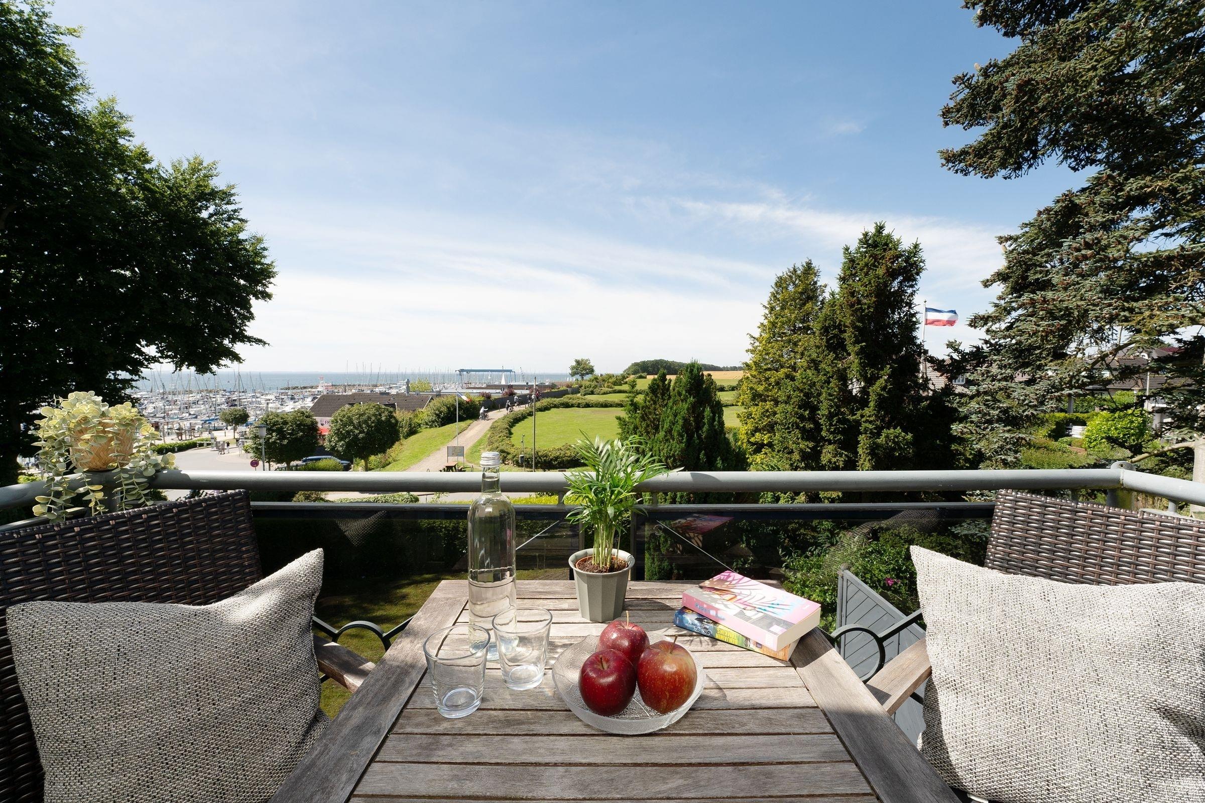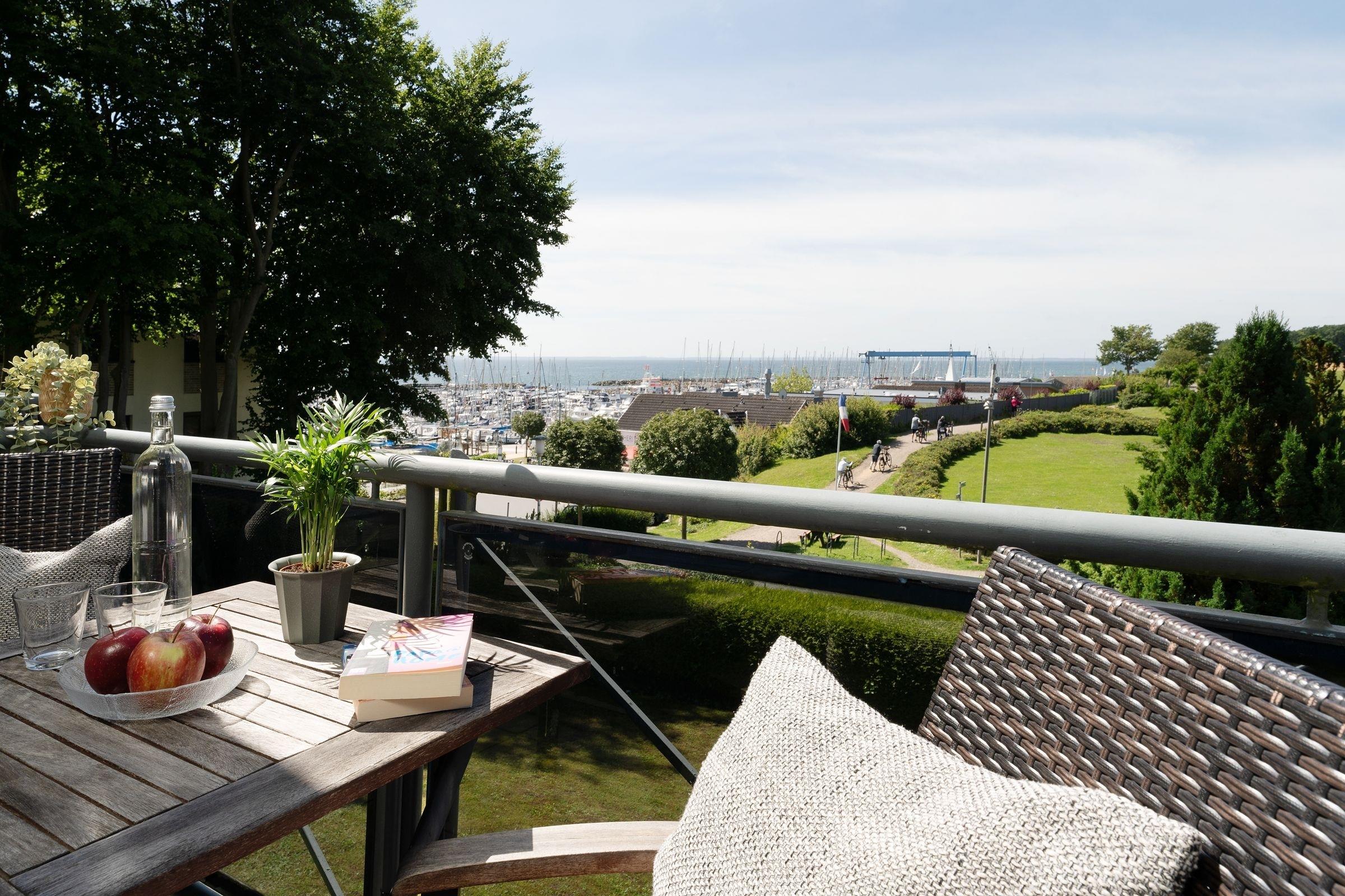 Moderne Ferienwohnung in Grömitz mit Meerblick und Balkon am Yachthafen für erholsamen Ostseeurlaub.