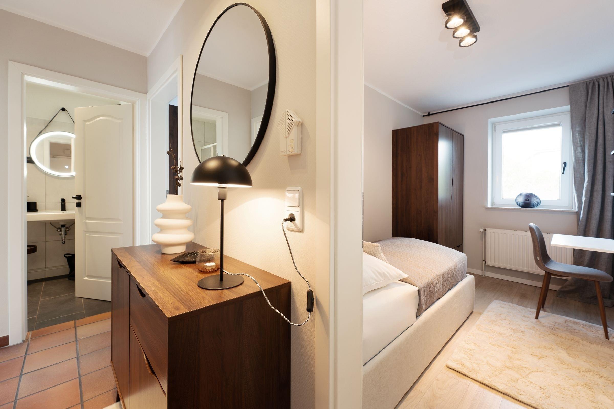 Fahrräder können neben dem Hauseingang abgeschlossen abgestellt werden. Ein kostenfreier WLAN-Anschluss ist inklusive.