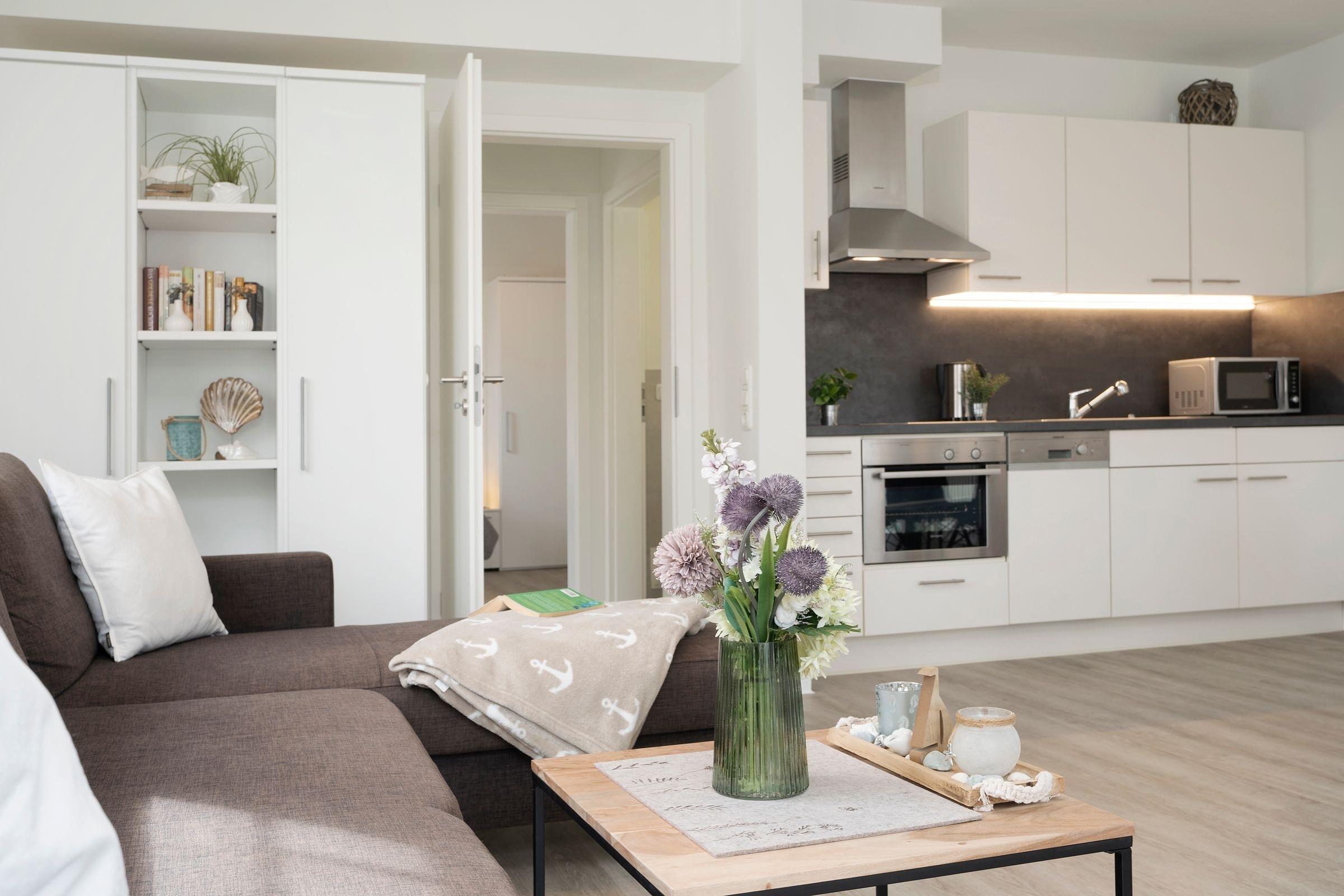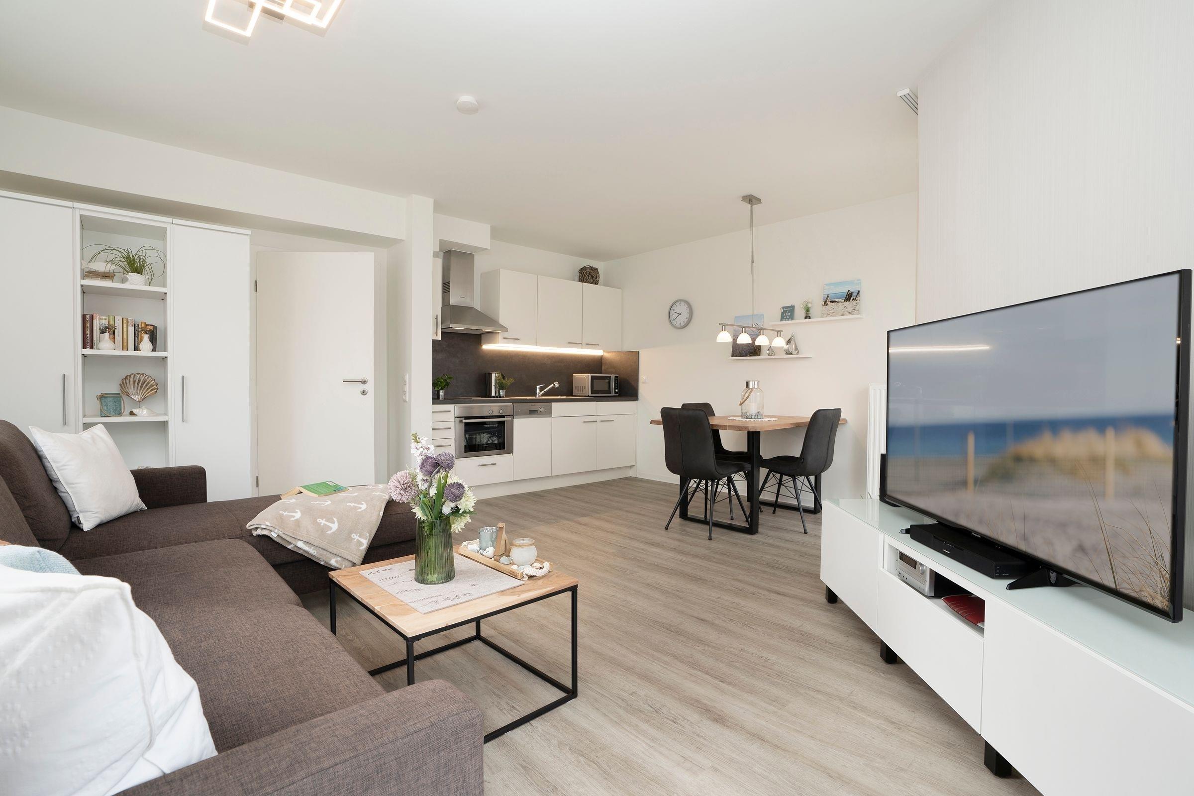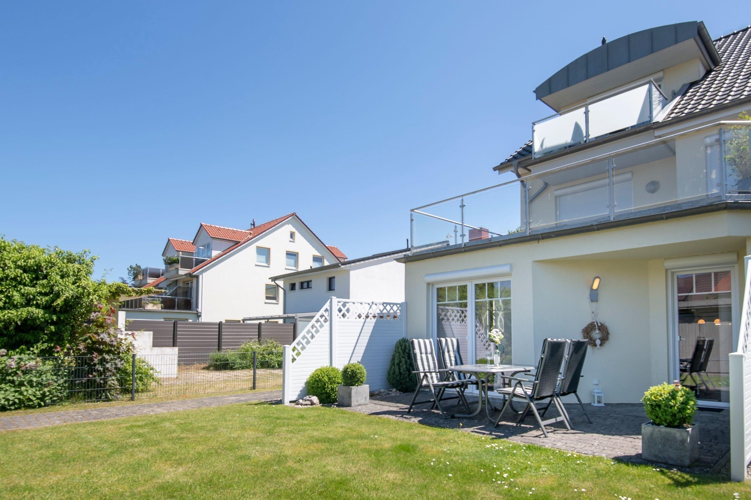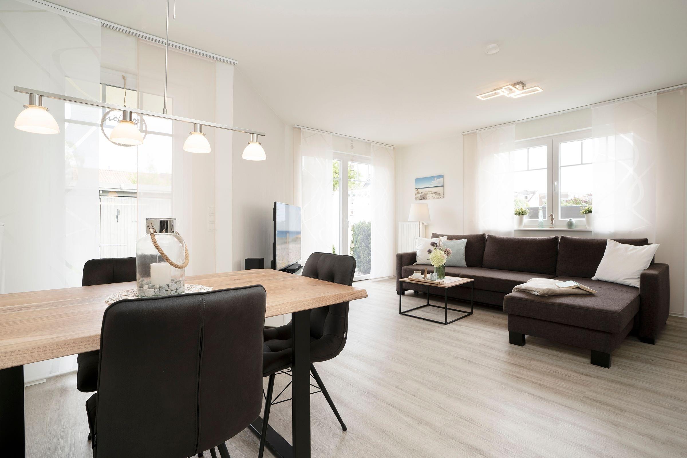 Moderne Ferienwohnung mit Terrasse nahe Ostsee und Strand in Grömitz, ideal für erholsame Tage zu zweit.