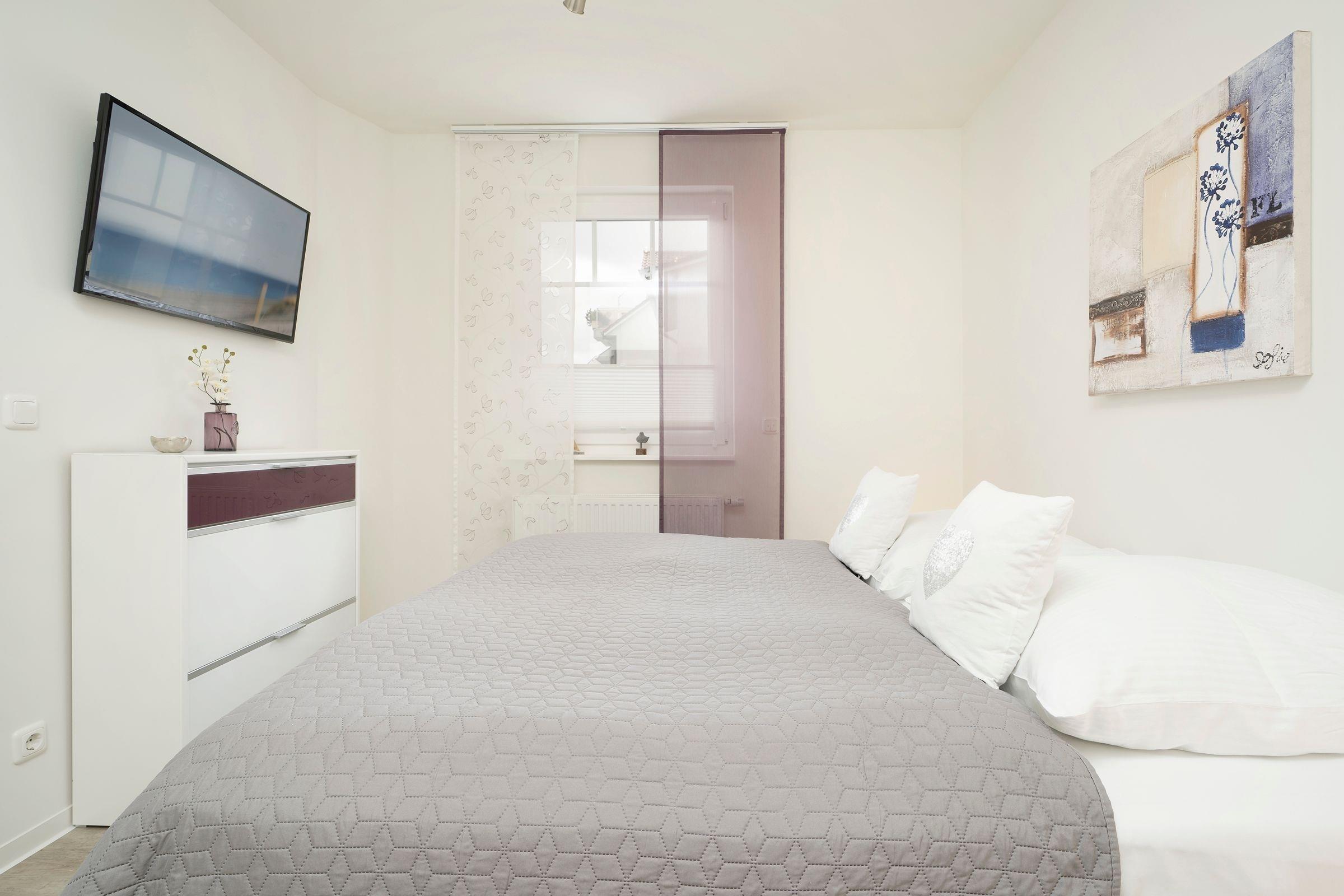 Schlafzimmer: 1 Doppelbett (2 x 90x200 cm), TV, Kleiderschrank, Verdunkelungsmöglichkeit