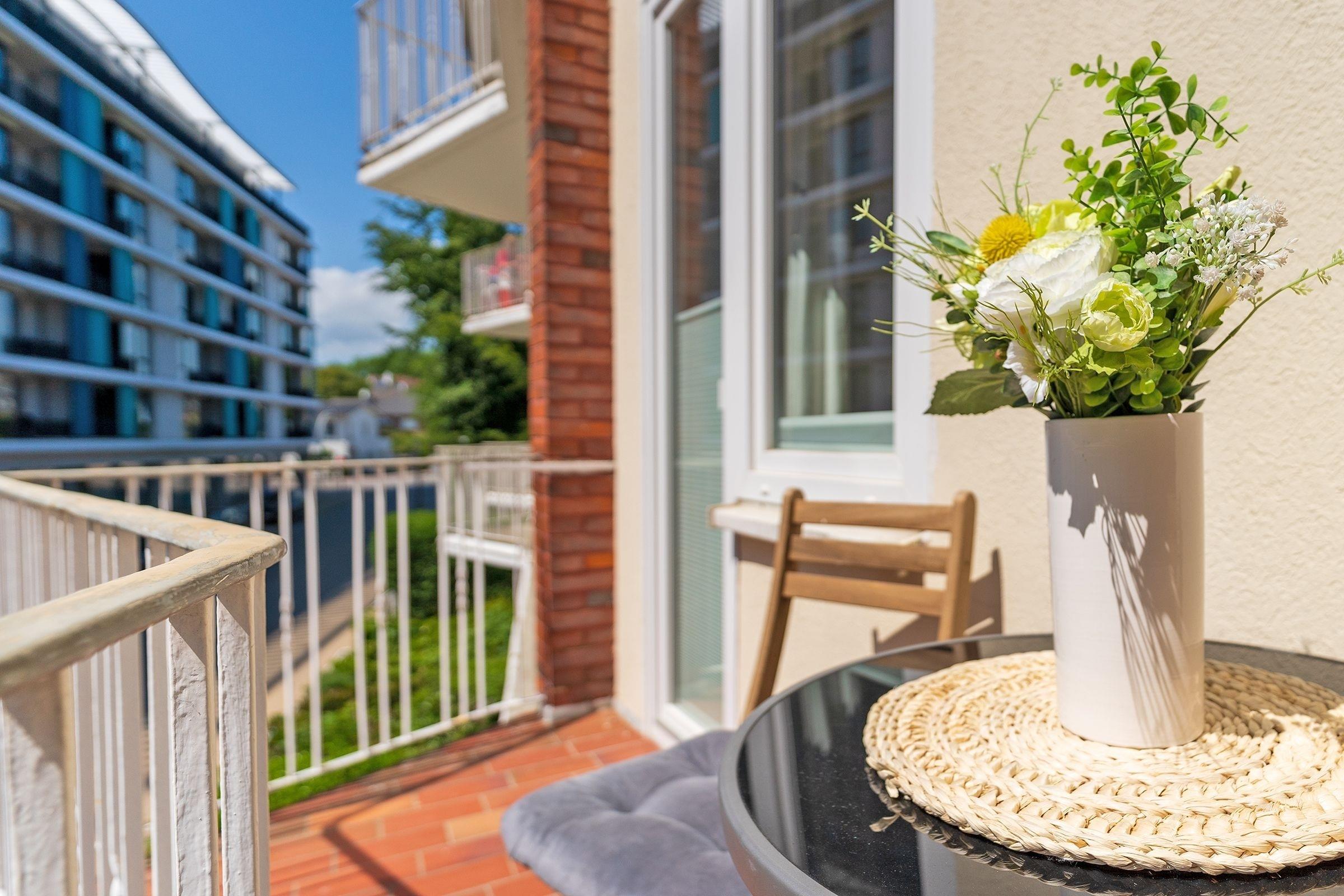 Moderne 2-Zimmer-Ferienwohnung nahe Ostseestrand in Grömitz mit Balkon und WLAN für erholsame Strandtage.