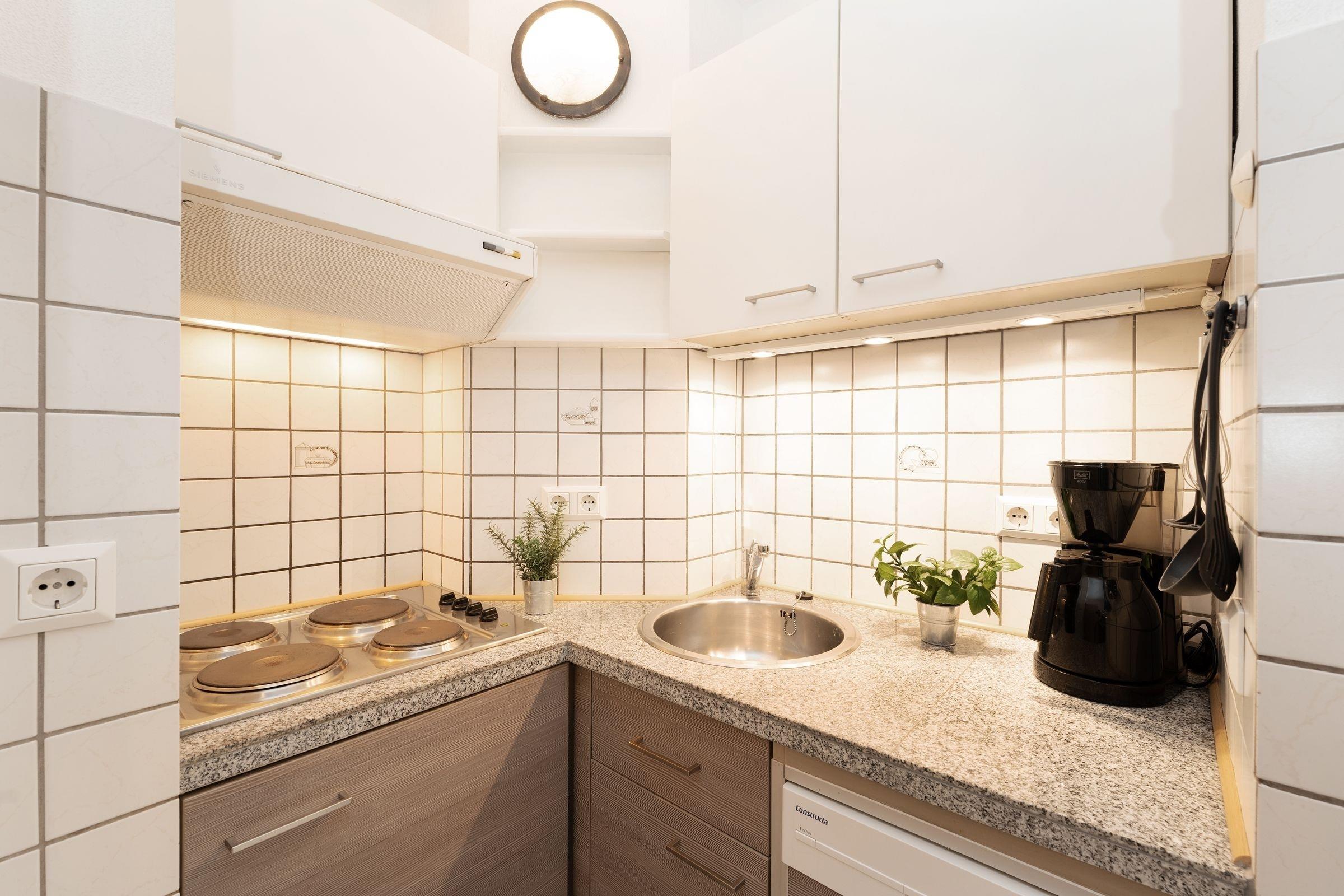 Im Erdgeschoss des Hauses Panorama finden Sie auf 49 m² Wohnfläche einen hellen Wohnbereich mit offener angrenzender Küche. Hier können Sie nach langen Strandtagen einen geselligen Familienabend, zum Beispiel vor dem Flachbildfernseher mit DVD-Player verbringen. Der große Esstisch lädt zum Spielen und Essen ein. Wunderbar entspannen und die Sonne genießen, können Sie auf Ihrer möblierten Terrasse, die Sie direkt vom Wohnbereich aus erreichen. Die Küche ist klein aber fein und verfügt über alle Annehmlichkeiten, sogar über eine Spülmaschine, die Ihren Abwasch übernimmt. In das angrenzende Schlafzimmer mit Doppelbett (2x 90x200 cm) und kleinem Einbauschrank können Sie sich zur Nachtruhe zurückziehen. In einem weiteren Schlafzimmer mit Kleiderschrank stehen ein Etagenbett und ein Einzelbett (je 90x200 cm) für max. 1 Erwachsenen und 2 Kinder bereit. Das WC mit Badewanne rundet die Ausstattung dieser Ferienwohnung ab.