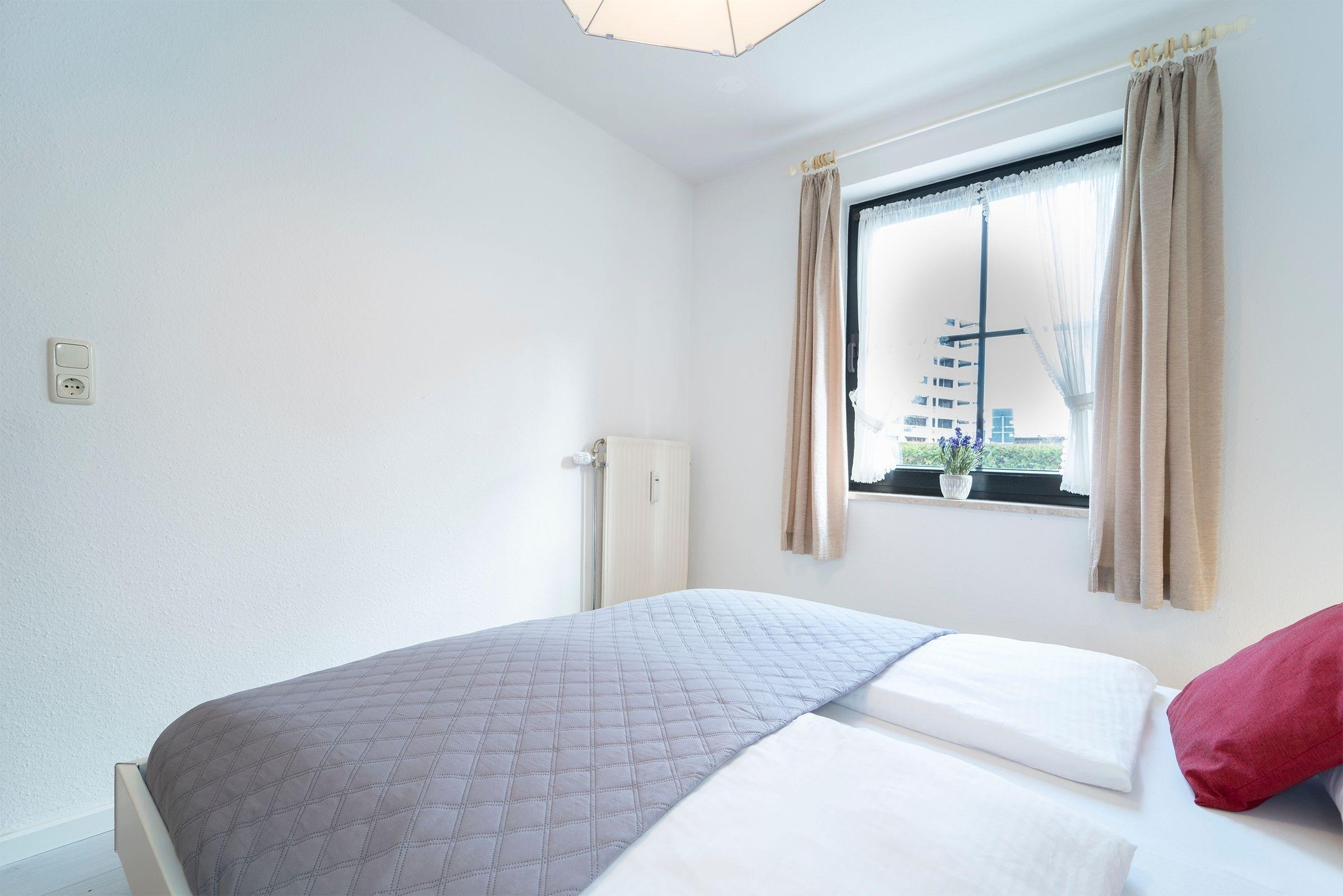 Schlafzimmer 1: 1 Doppelbett (2x 90x200 cm), Kleiderschrank, Verdunkelungsmöglichkeit.