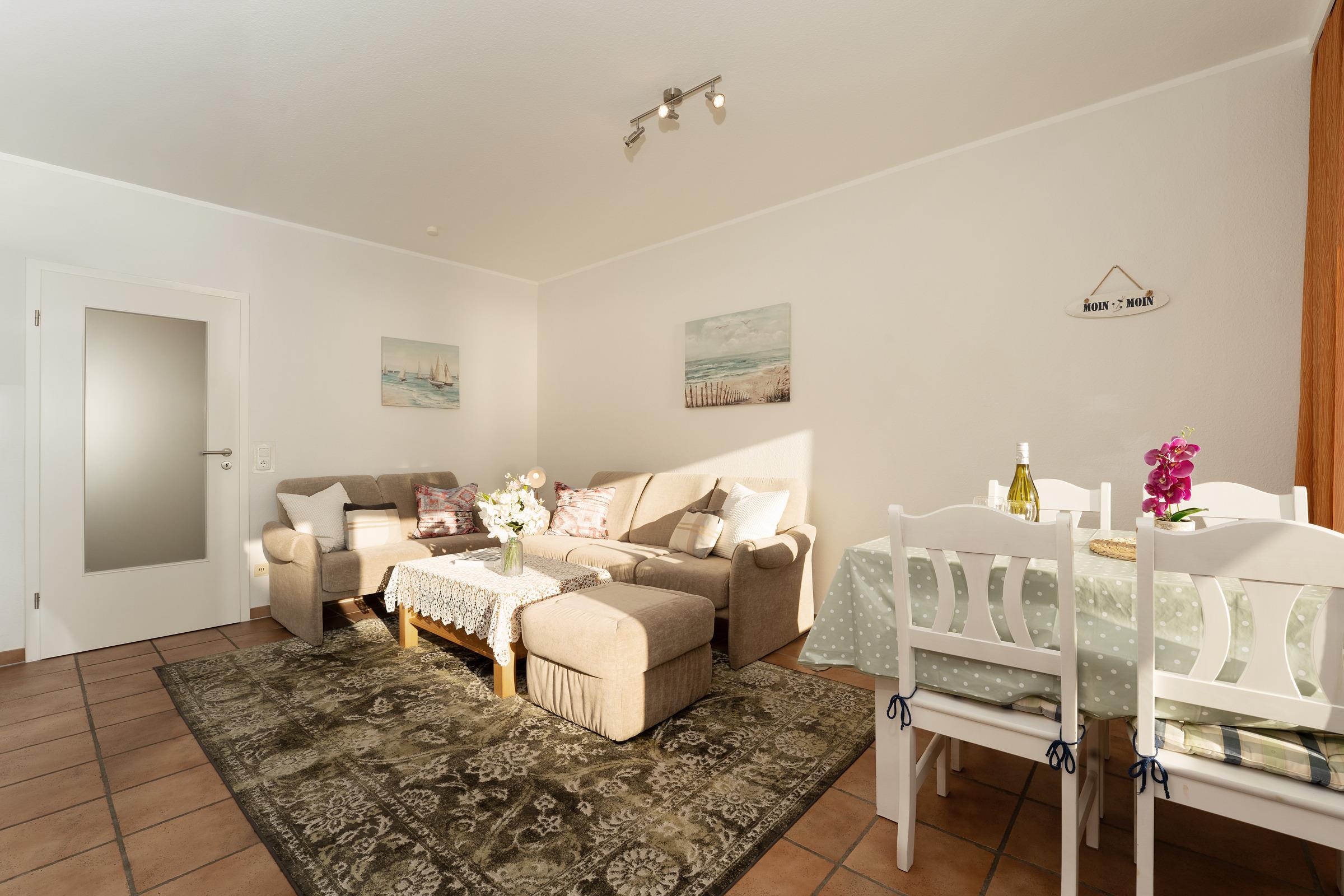 Die Wohnung ist modern und geschmackvoll eingerichtet. In der komfortablen Küche bleiben keine Wünsche offen. Von Spülmaschine, Eierkocher und Toast-/Pizzaofen bis hin zum Toaster ist alles für Ihr perfektes Dinner vorhanden. Im Wohnzimmer erwartet Sie eine gemütliche Sofaecke mit modernem Flachbildfernseher. Im angrenzenden Essbereich trifft sich die ganze Familie um schöne Abende zu verbringen. Im hellen Duschbad wird Ihnen an nichts fehlen. Vom Balkon können Sie die Boote auf der Ostsee mit einem Fernglas beobachten. Nach einem erlebnisreichen Urlaubstag sorgt das Elternschlafzimmer mit einem Doppelbett (2 Matratzen à 90x190 cm), sowie ein Etagenbett (90x200 cm) in einem separatem Schlafzimmer für Entspannung und Ruhe.