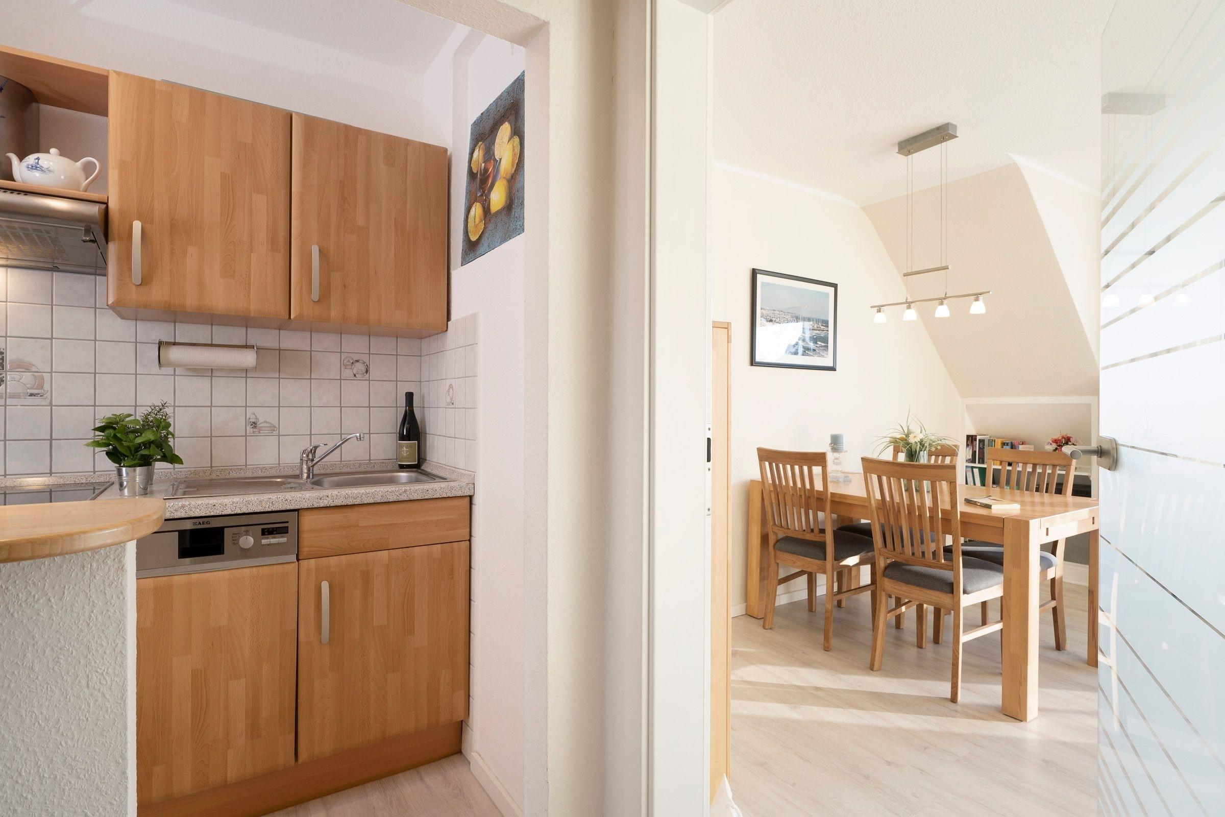 Vorbei an der offenen Küchenzeile gelangen Sie in das freundliche Wohn- und Esszimmer, eine herrlich große Fensterfront und der direkte Balkonzugang sorgen für einen lichtdurchfluteten Raum. Der integrierte Essbereich bietet Platz für gesellige Mahlzeiten. Machen Sie es sich auf dem großzügigen Ecksofa nach einem schönen Strandtag bequem und entspannen auch an Regentagen bei Unterhaltung vom modernen Flachbildfernseher oder genießen Sie die ersten oder die letzten Sonnenstrahlen auf Ihrem möblierten Balkon mit Südostausrichtung und schnuppern die wunderbare Ostseeluft, hier ist pures Urlaubsgefühl garantiert!