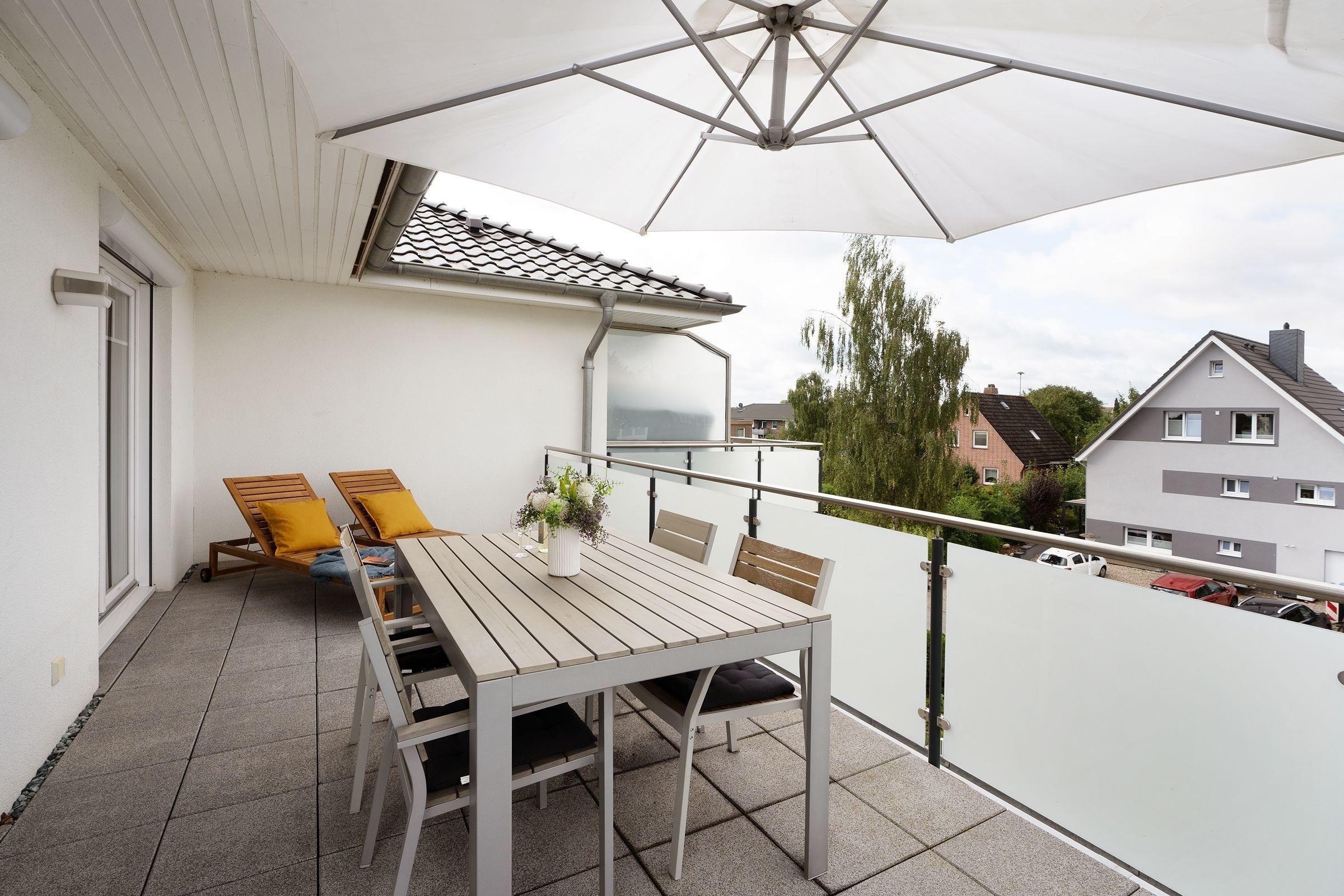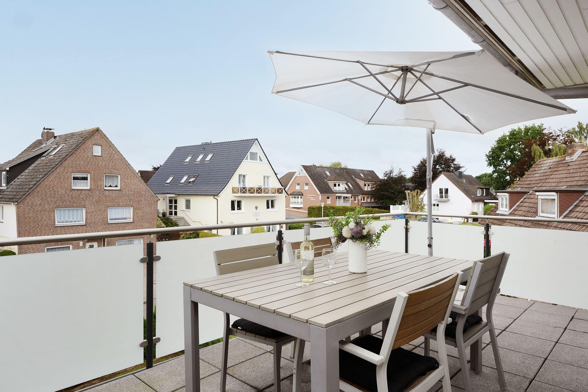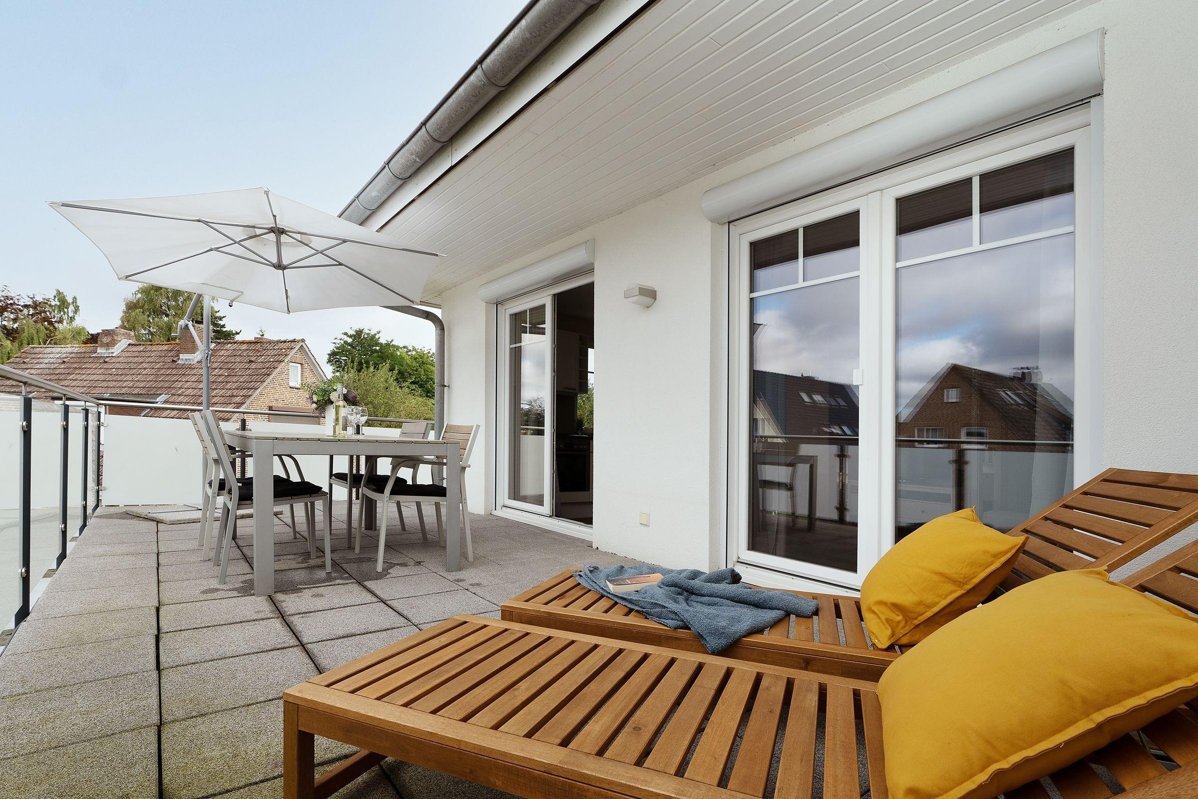 Moderne Ferienwohnung mit Dachterrasse und Meerblick in Grömitz für erholsame Urlaubstage.