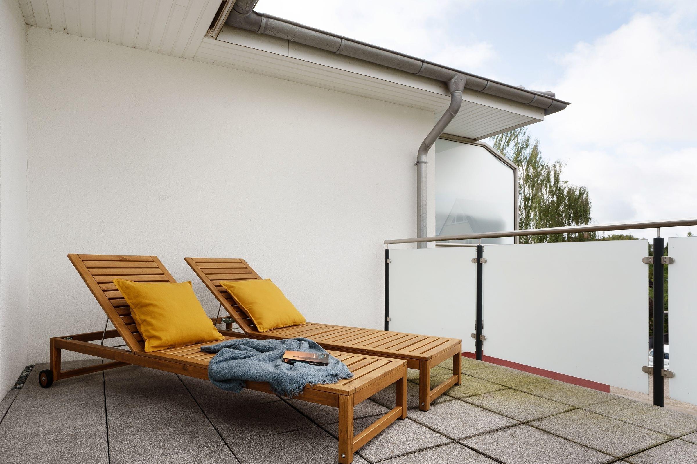 Mit einer Wohnfläche von ca. 69 m², 3 Zimmern, 2 separaten Schlafzimmern, großzügiger Dachterrasse, offener Wohnküche und geräumigem Duschbad bietet diese stilsichere Ferienwohnung spielend Platz und Komfort für bis zu 4 Personen.