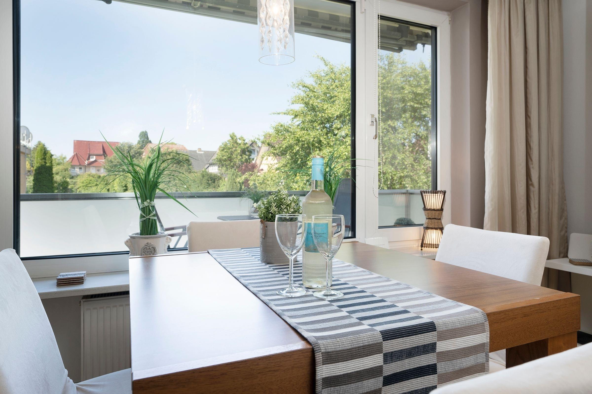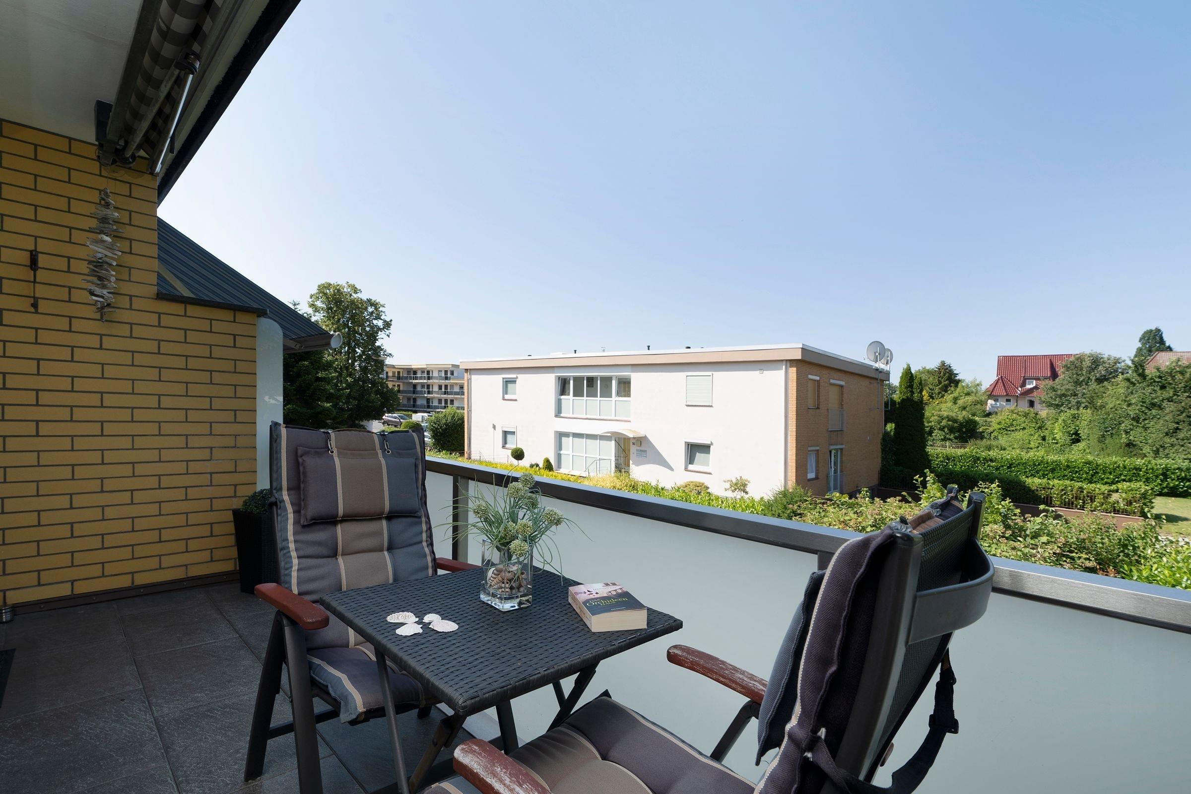Moderne Ferienwohnung mit Balkon und Gartenblick in Grömitz, nur 5 Gehminuten vom Strand entfernt.