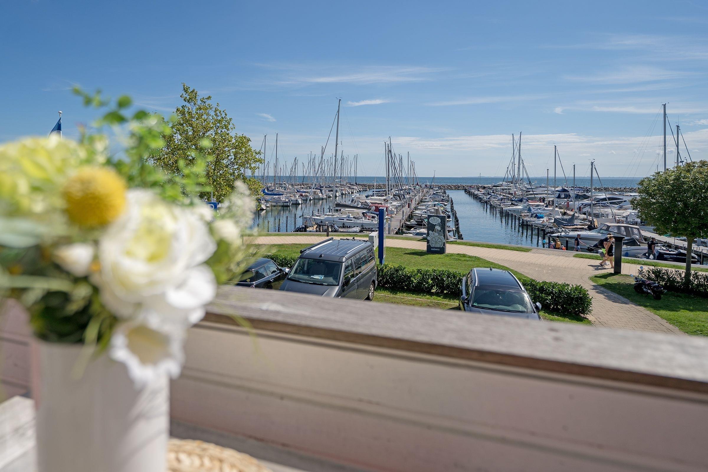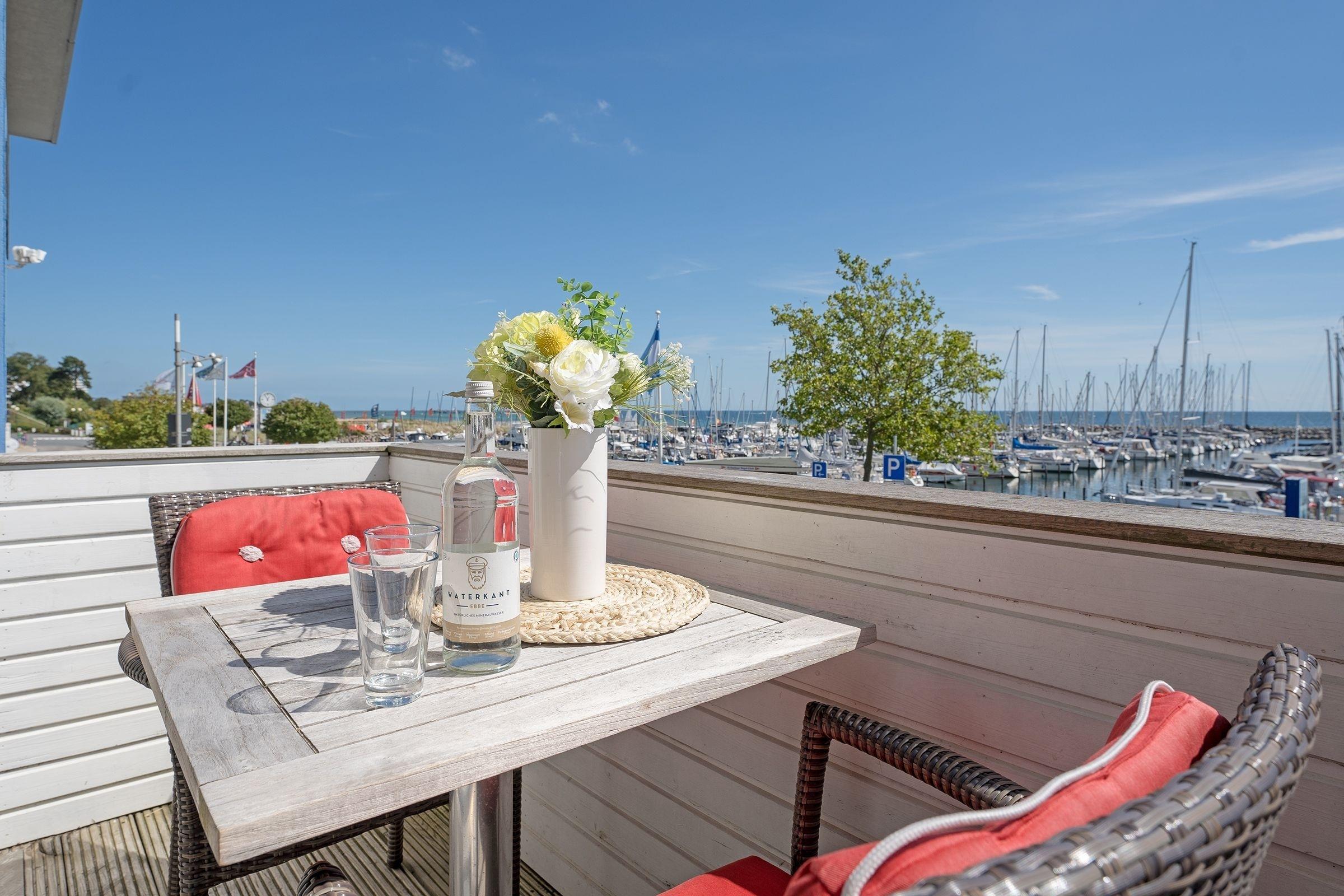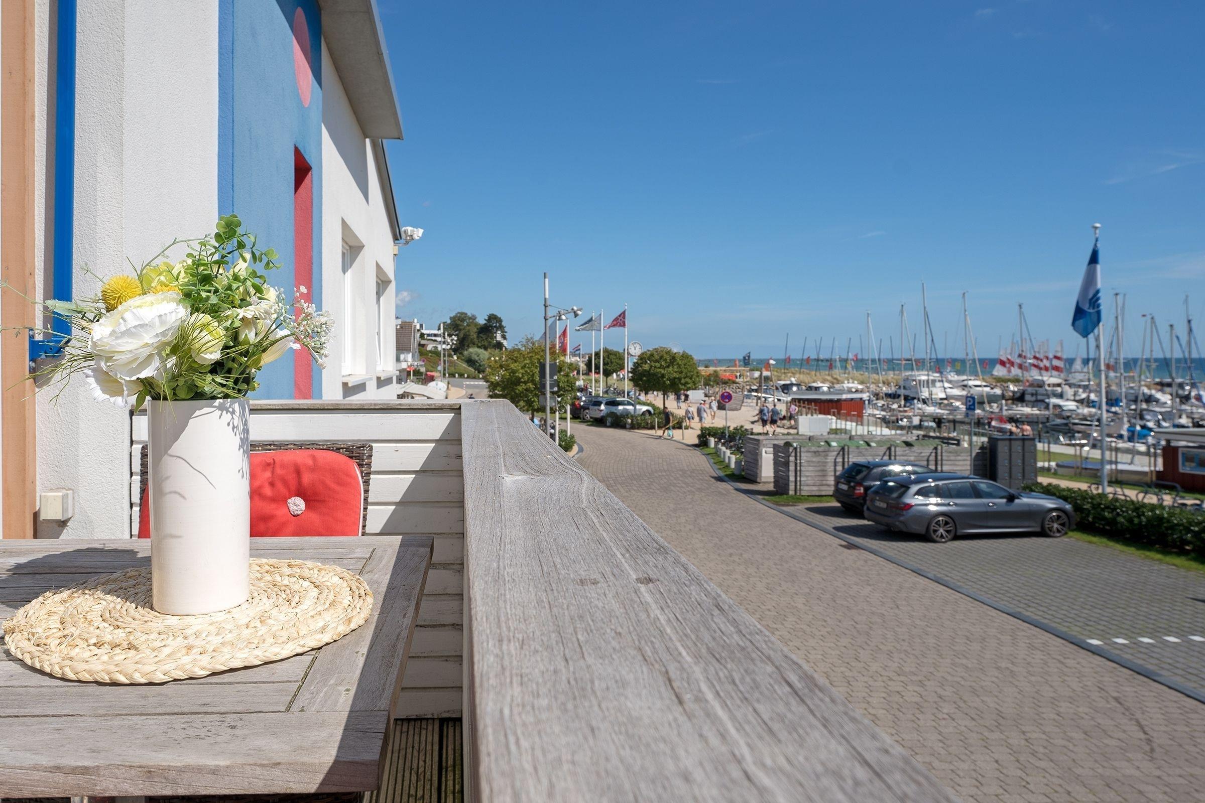 Gemütliche 2-Zimmer-Ferienwohnung am Grömitzer Yachthafen mit Balkon und Meerblick.