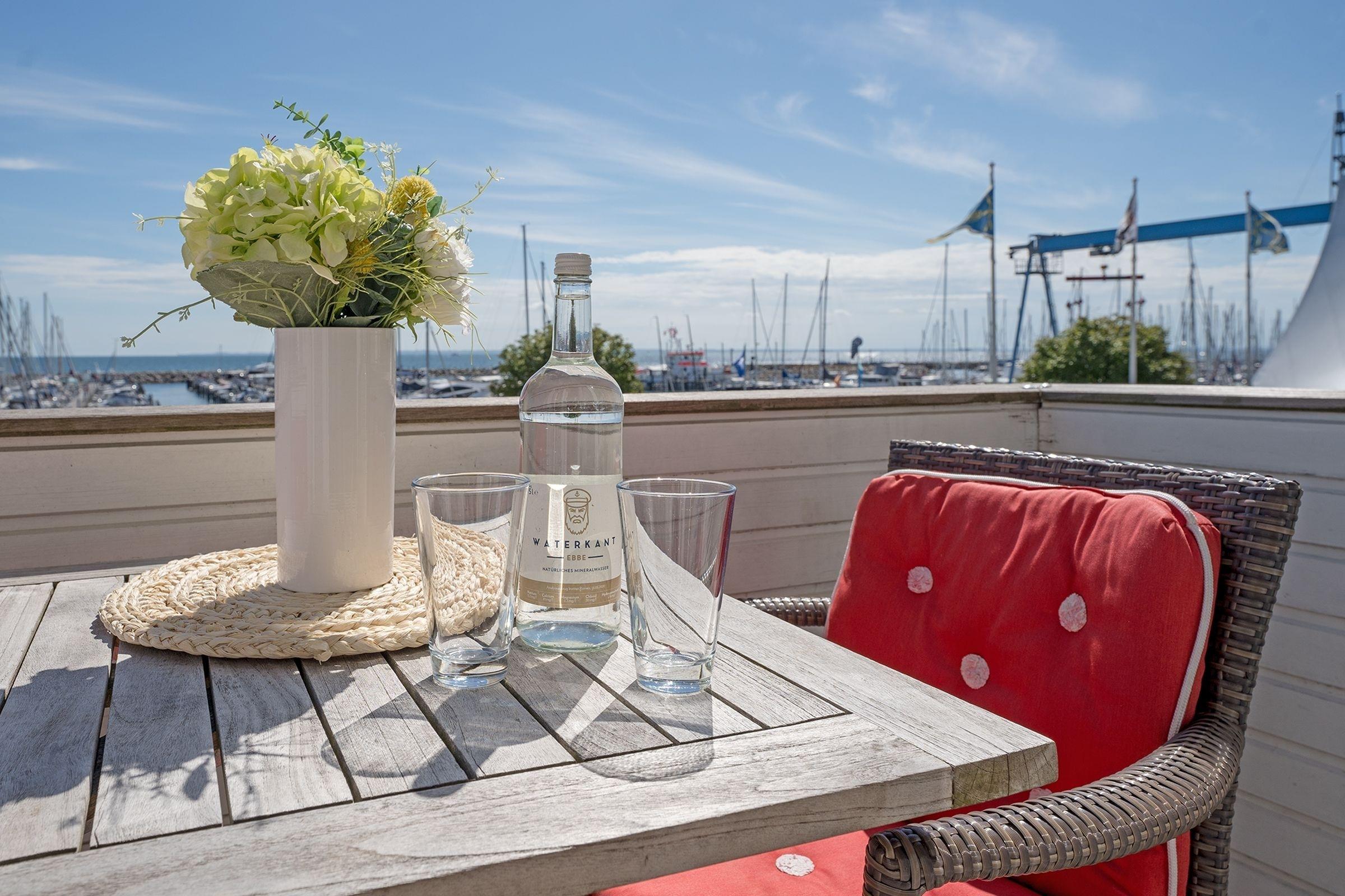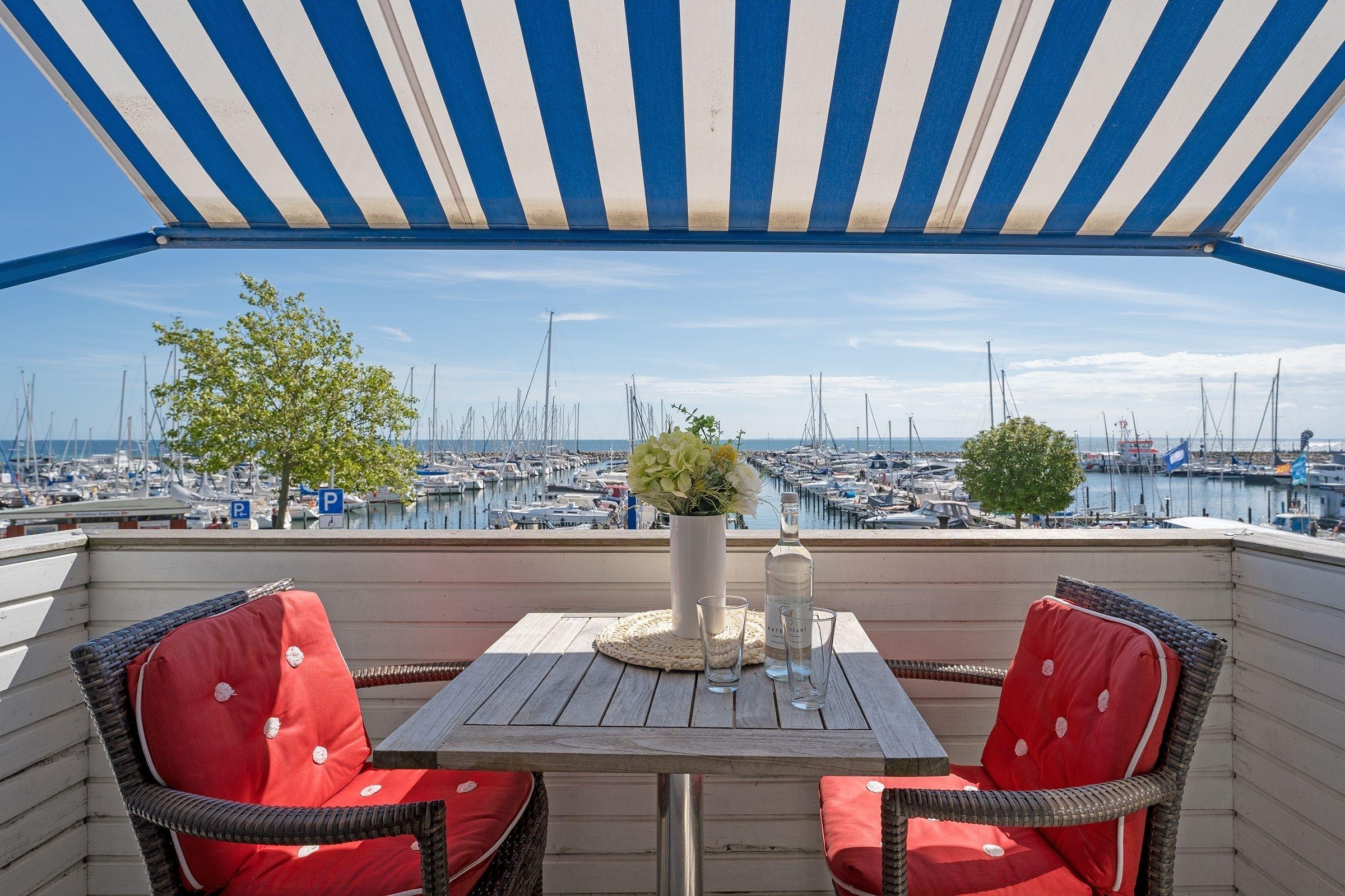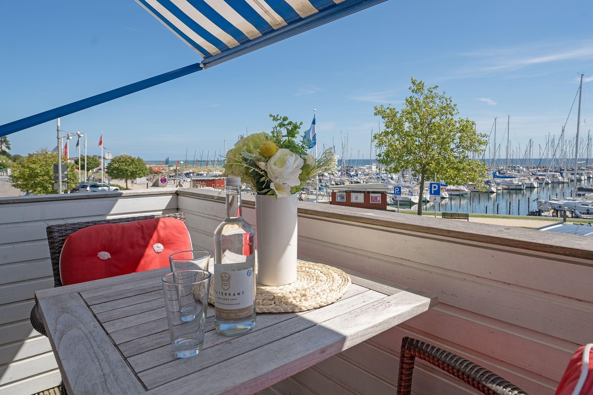Gemütliche 2-Zimmer-Ferienwohnung am Grömitzer Yachthafen mit Balkon und Meerblick.