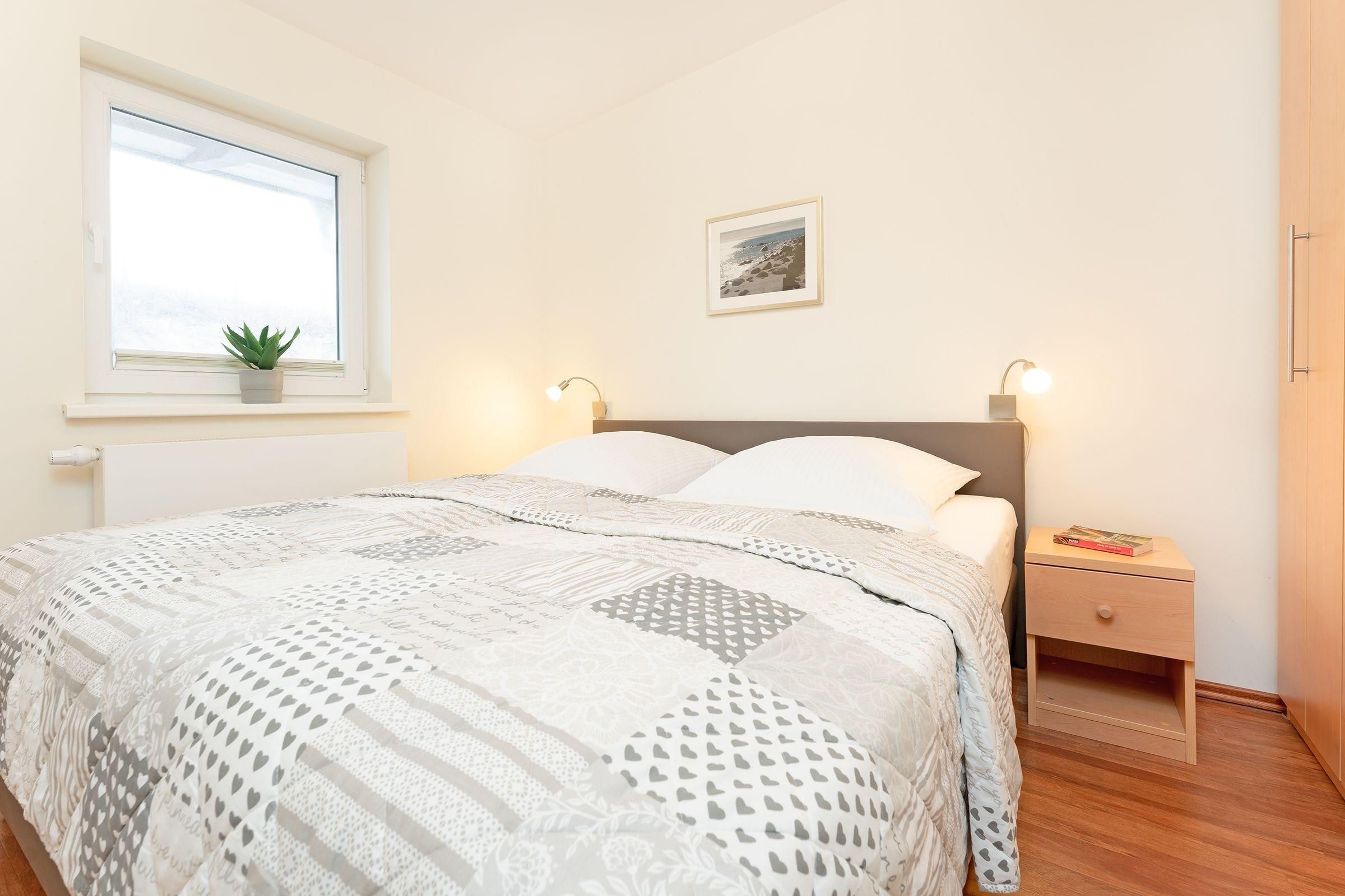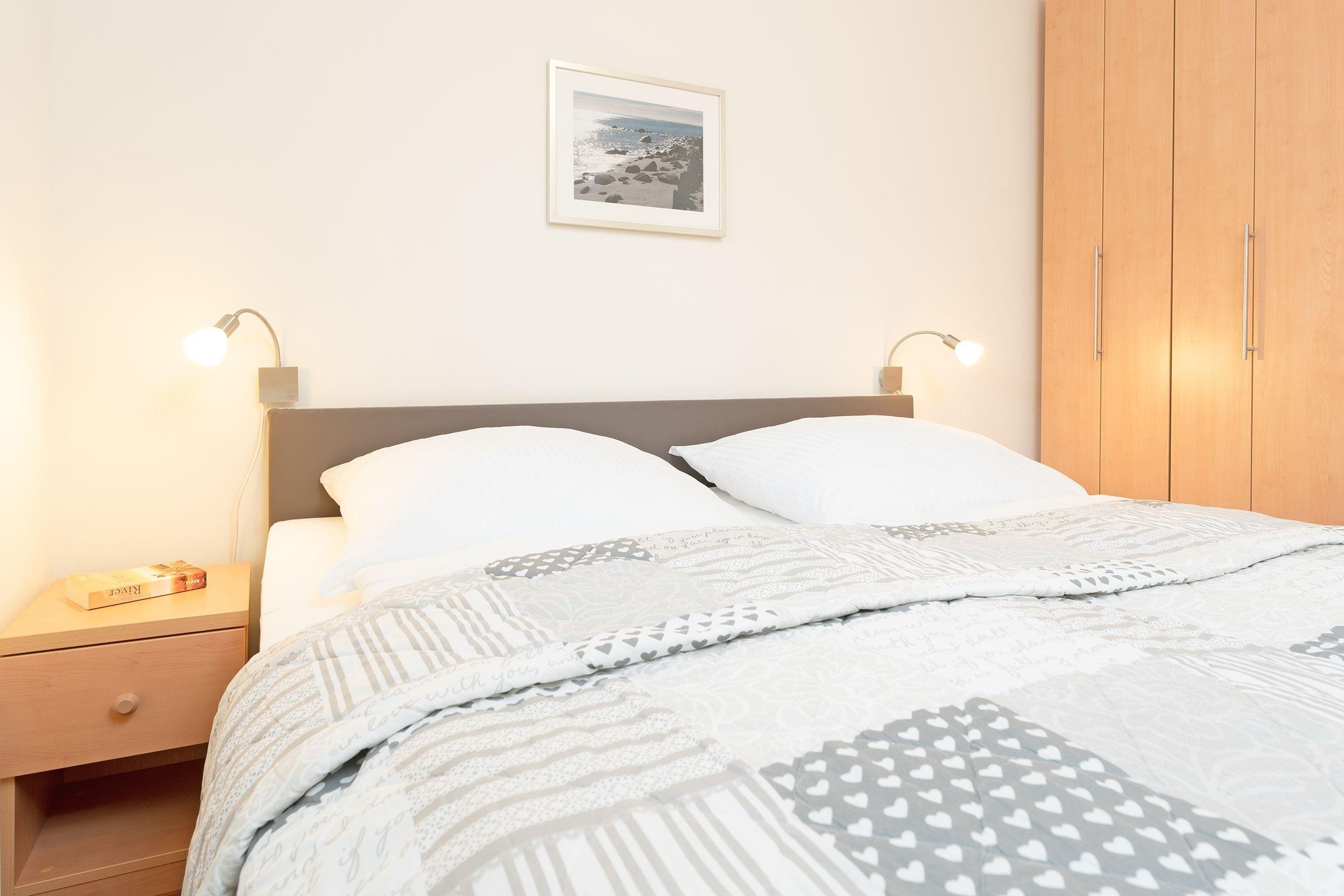 Schlafzimmer: 1 Doppelbett (2x 90x200 cm), Verdunkelung (blickdichte Plissees)
