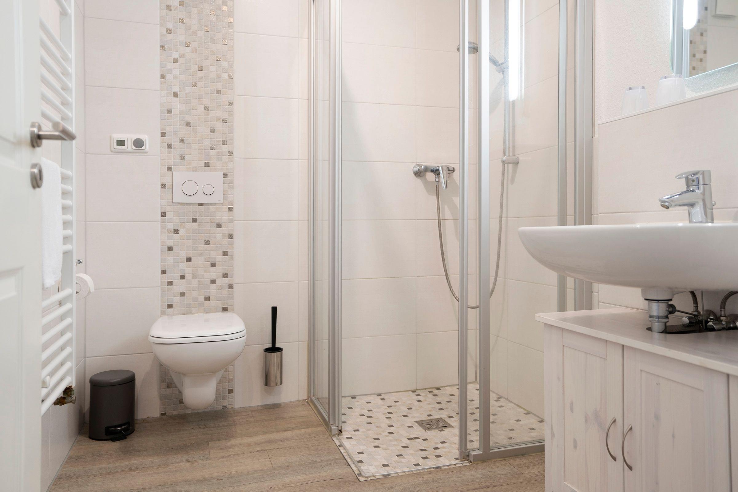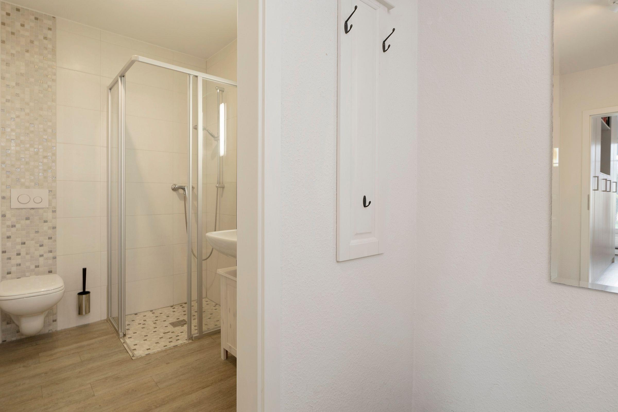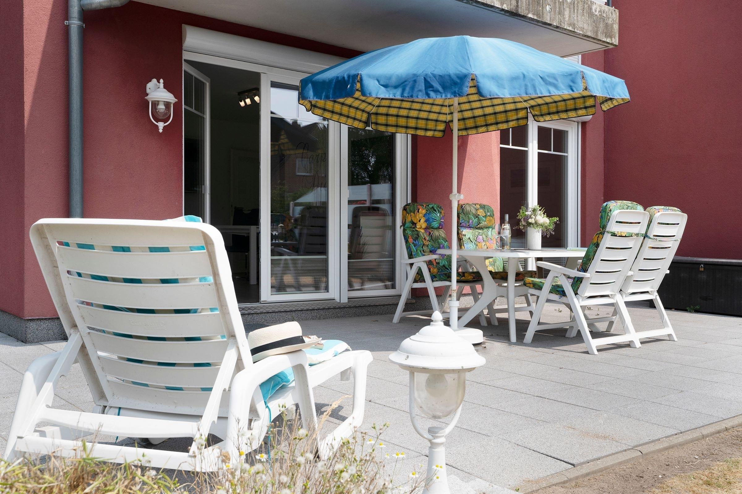 Ihre 2-Zimmer-Ferienwohnung erwartet Sie mit einem modernen, ruhigen Schlafzimmer, das mit einem großen Doppelbett (2x 100x200 cm) und einem Flat-TV ausgestattet ist. Das Wohnzimmer mit zusätzlicher Schlafcouch (160x190 cm) und dem großen 55 Zoll Fernseher sowie die Küche mit 4-Platten Ceranfeld, Spülmaschine und diversen Extras lassen ebenso keine Wünsche offen wie das ansprechende Bad mit ebenerdiger Dusche und Radio. Die großzügige, ca 40 m² große Terrasse ist mit hochwertigen Gartenmöbeln inkl. Liege ausgestattet. In der kompletten Wohnung sorgt eine Fußbodenheizung für wohlige Wärme.