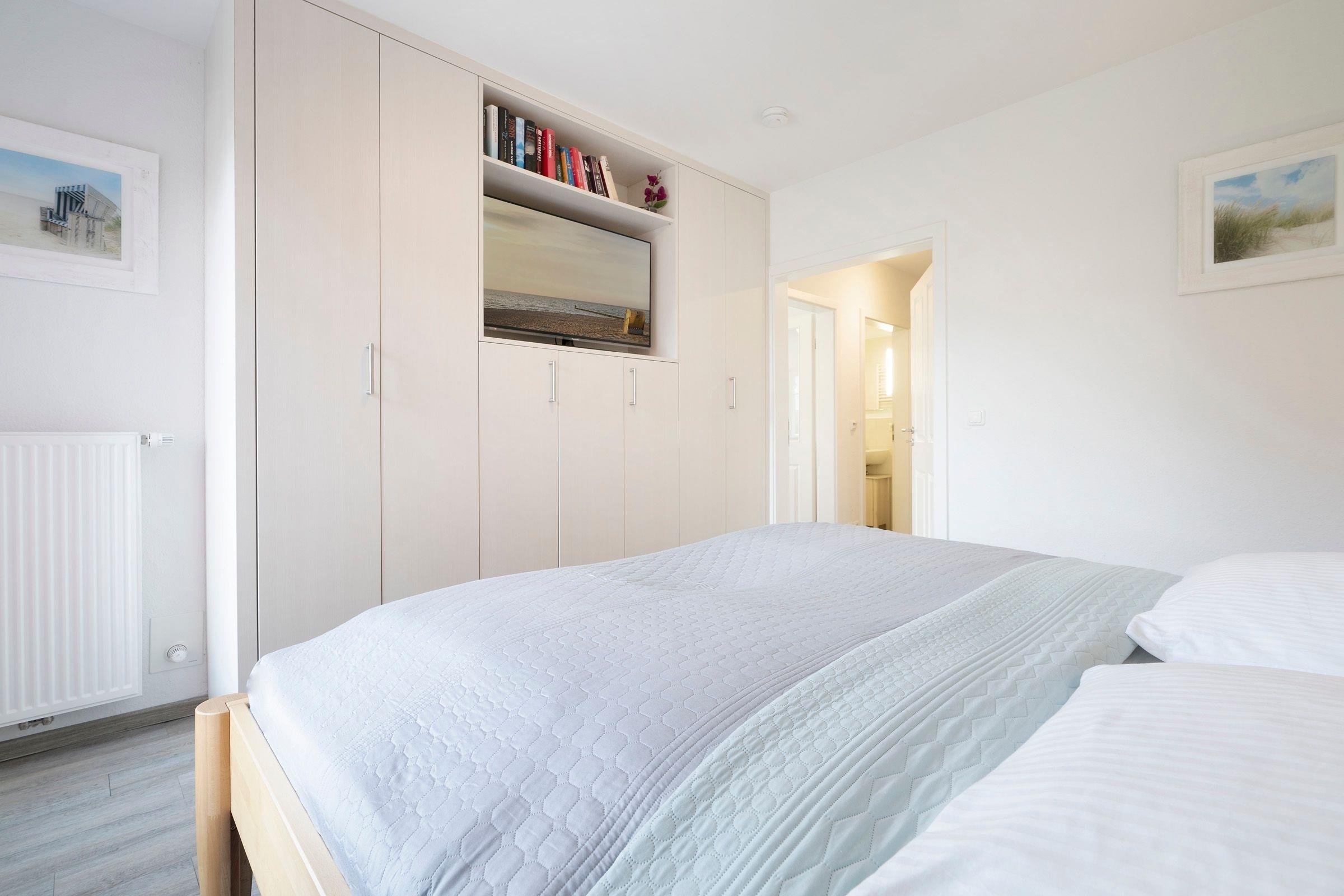 Schlafzimmer :1 Doppelbett (2x 100x200 cm), Kleiderschrank, Verdunkelung (Plissees).