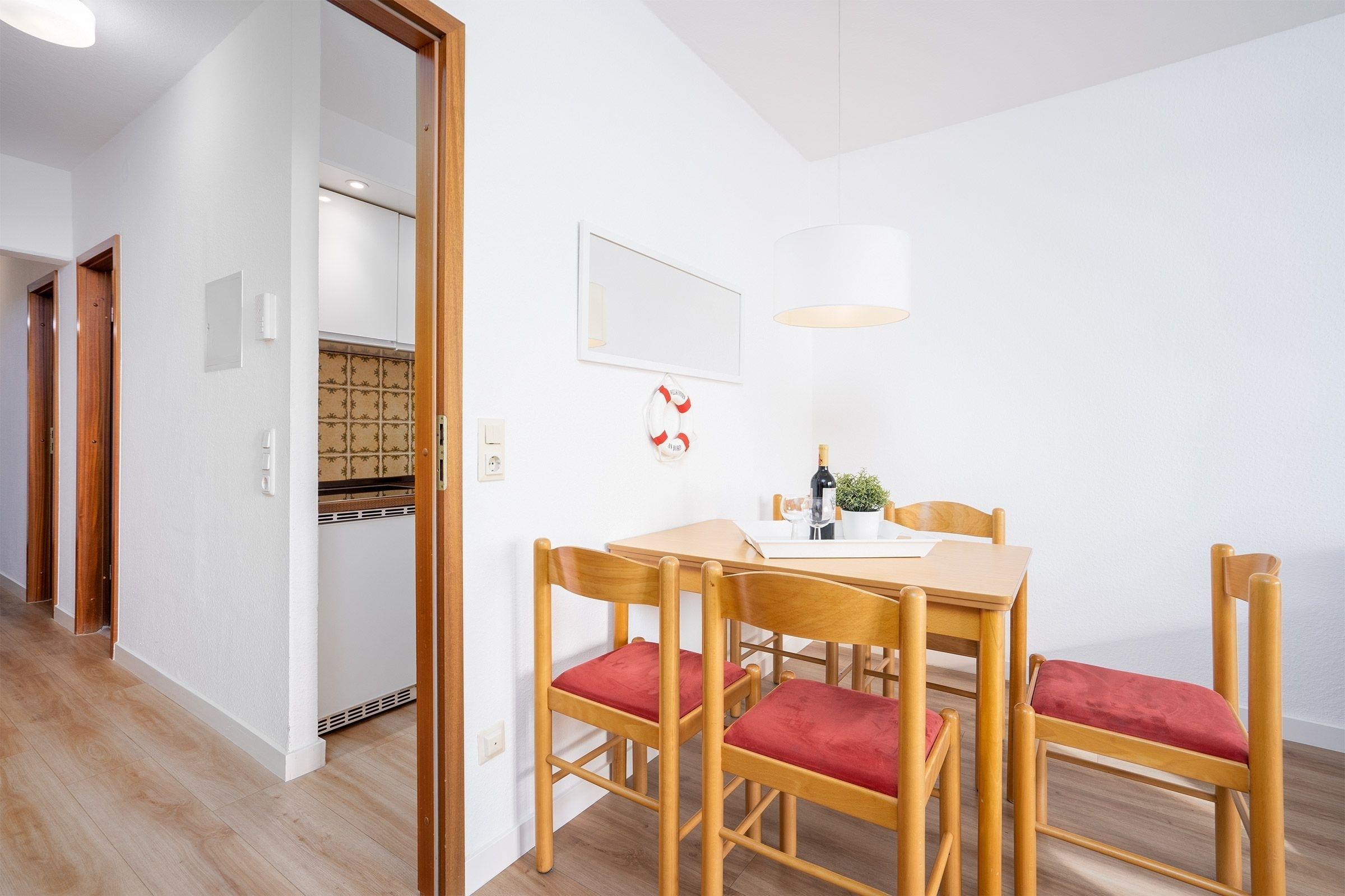 Die Wohnung hat ein geräumiges Wohnzimmer in dem ein Flatscreen TV für Unterhaltung sorgt. Die gut ausgestattete Küche mit Herd (Ceranfeld mit Touch Screen), Kaffeemaschine, Toaster, Wasserkocher, Kühlschrank mit Gefrierfach, Töpfe, Pfannen, Geschirr, Besteck, etc. lässt keine Wünsche offen. Nach einem erlebnisreichen Urlaubstag sorgt ein Schlafzimmer mit einem Doppelbett (2x 90x200 cm) sowie ein weiteres Einzelbett (80x200 cm) in einem separatem Schlafzimmer für Entspannung und Ruhe. Beide Schlafzimmer verfügen über Rollläden. Ein helles, modernes Bad mit einer fast ebenerdigen Dusche und WC wird Sie begeistern.
