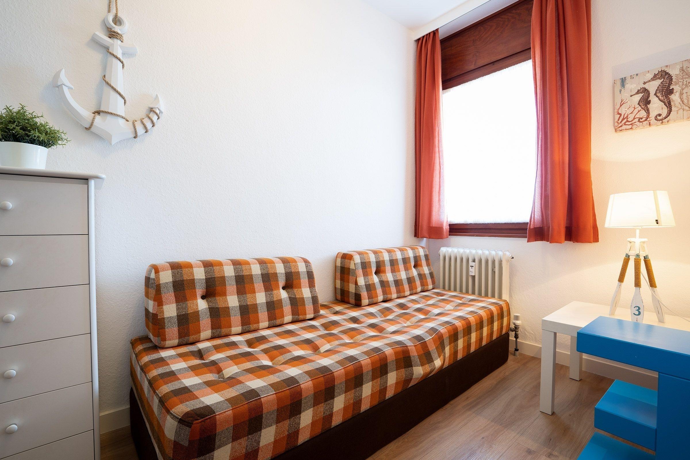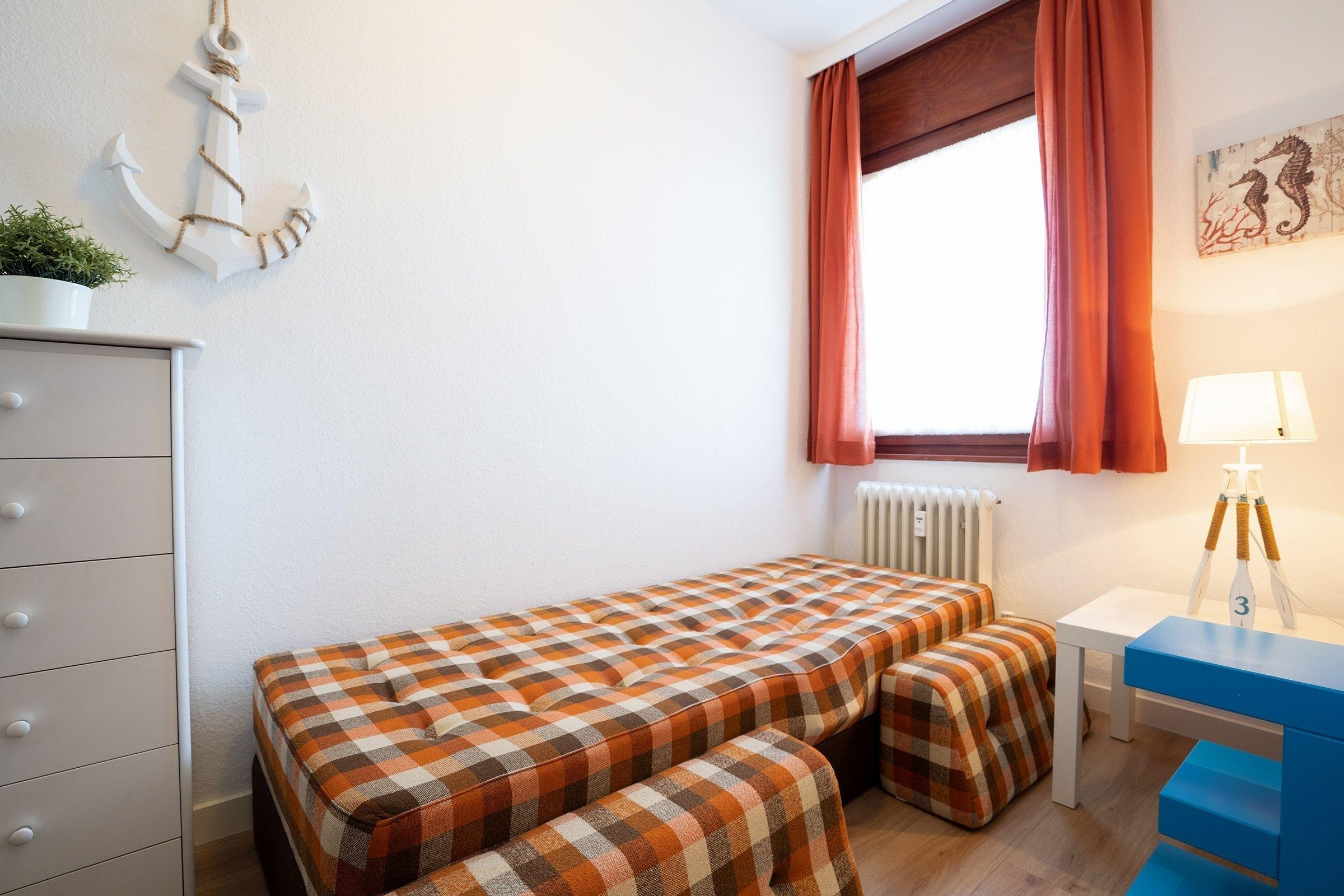 Schlafzimmer 2: 1 Einzelbett (80x200 cm), Verdunkelung: Rollos und Vorhänge