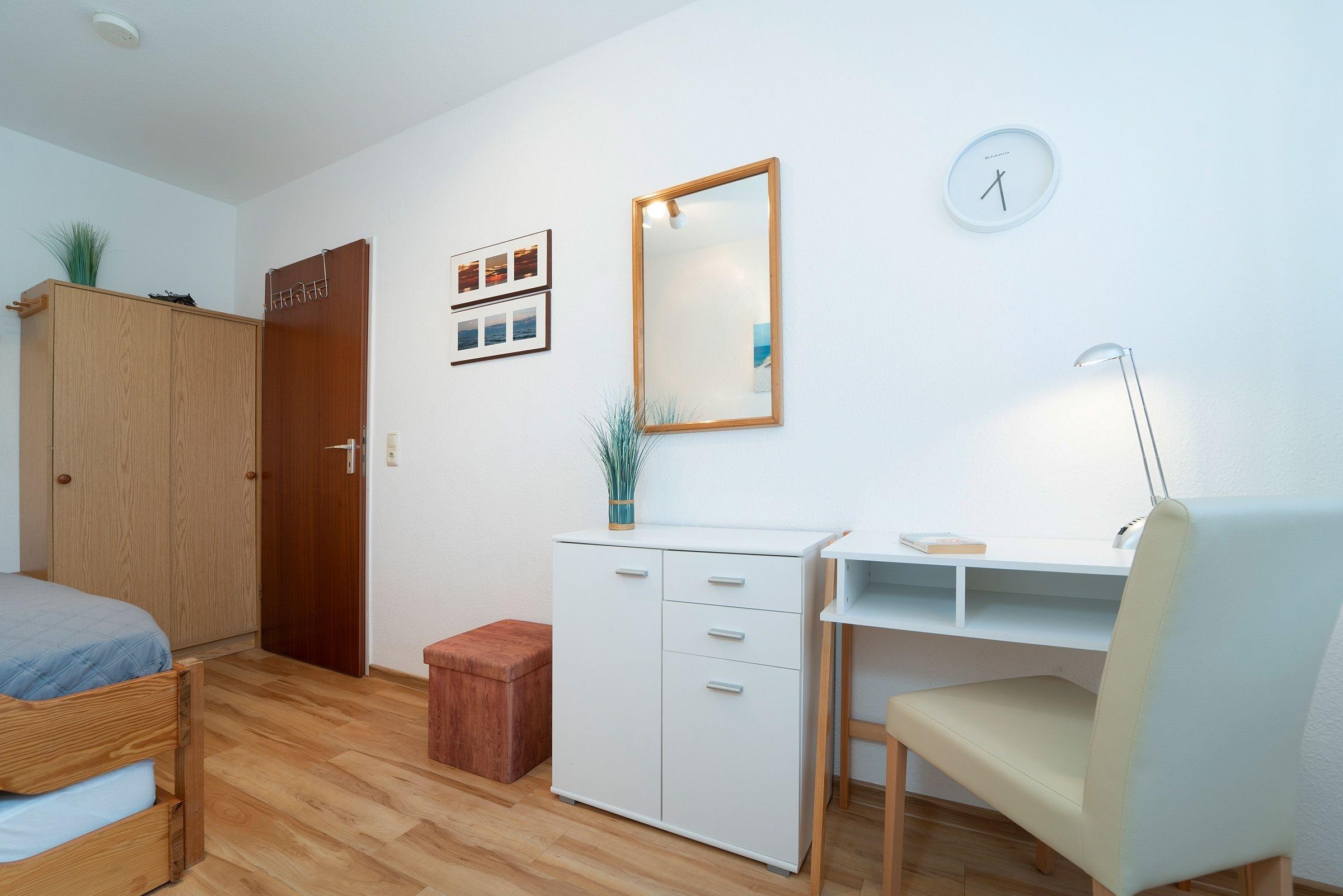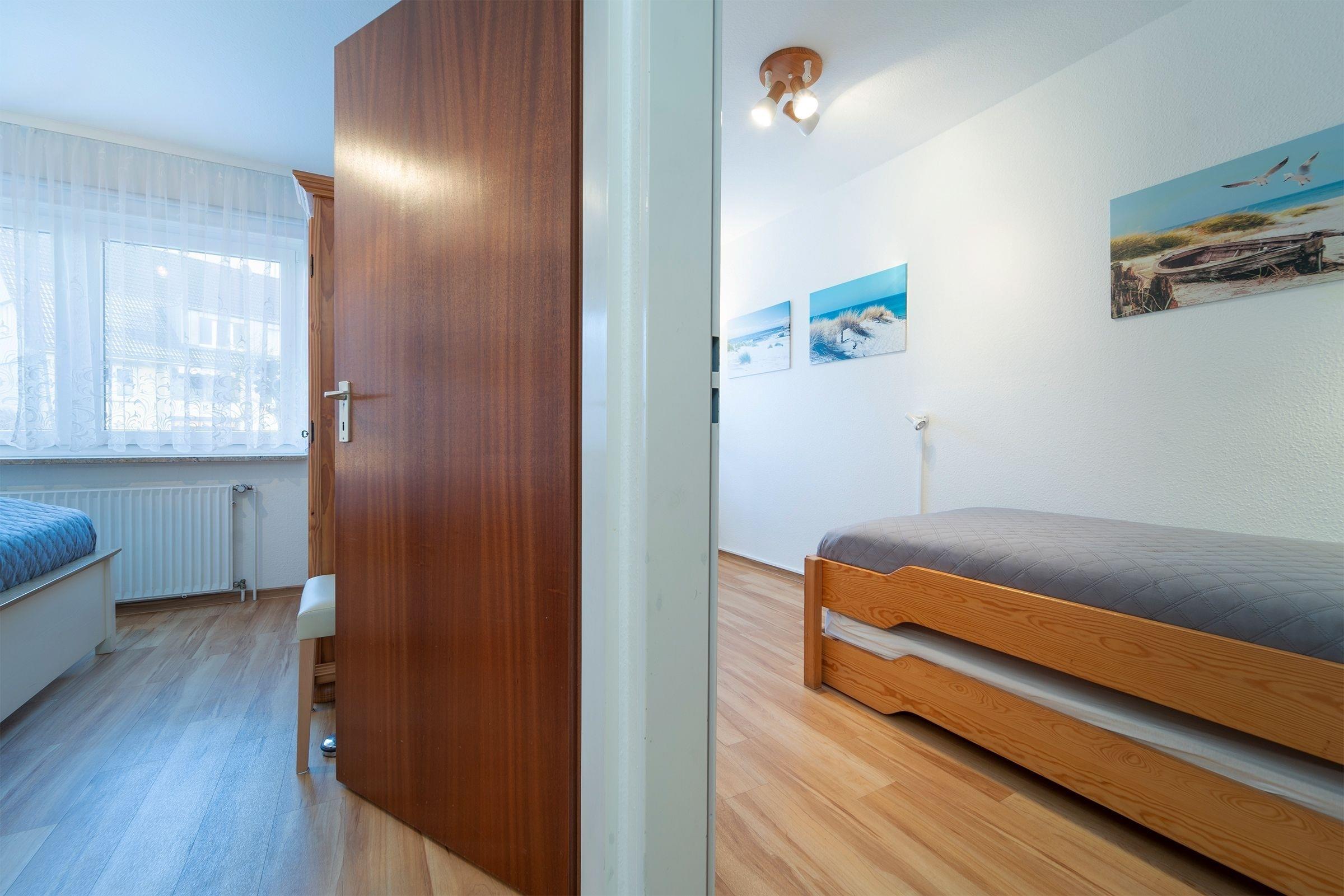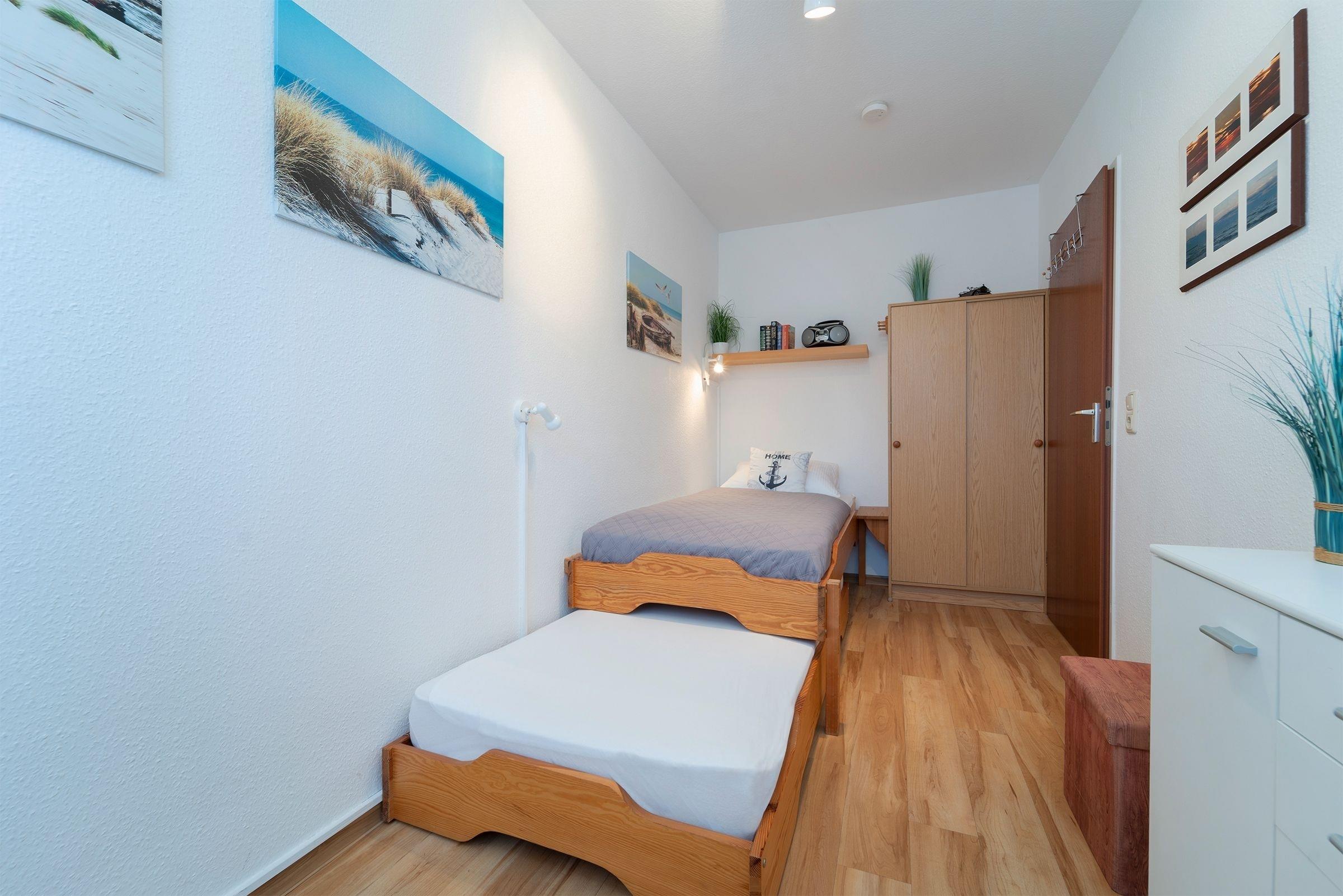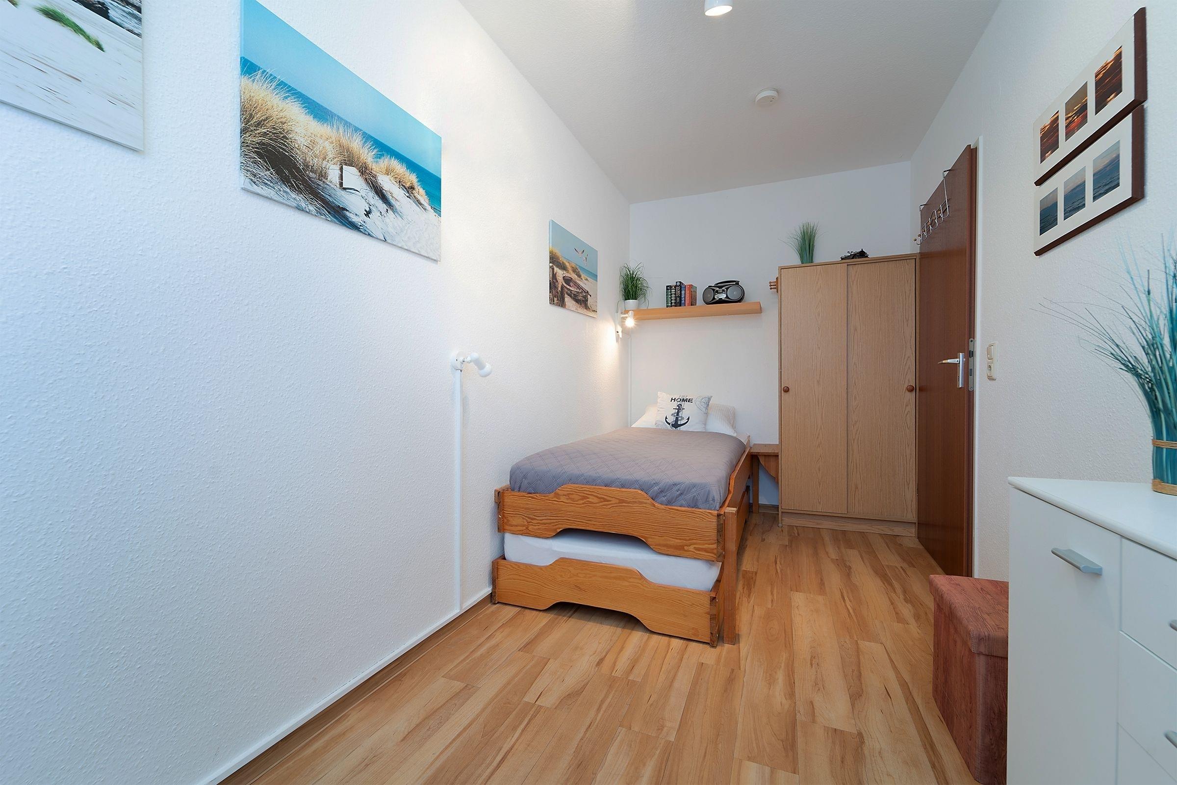 Schlafzimmer 2: 2 Einzelbetten (2x 90x200 cm), Verdunkelungsmöglichkeit (Rollo)
