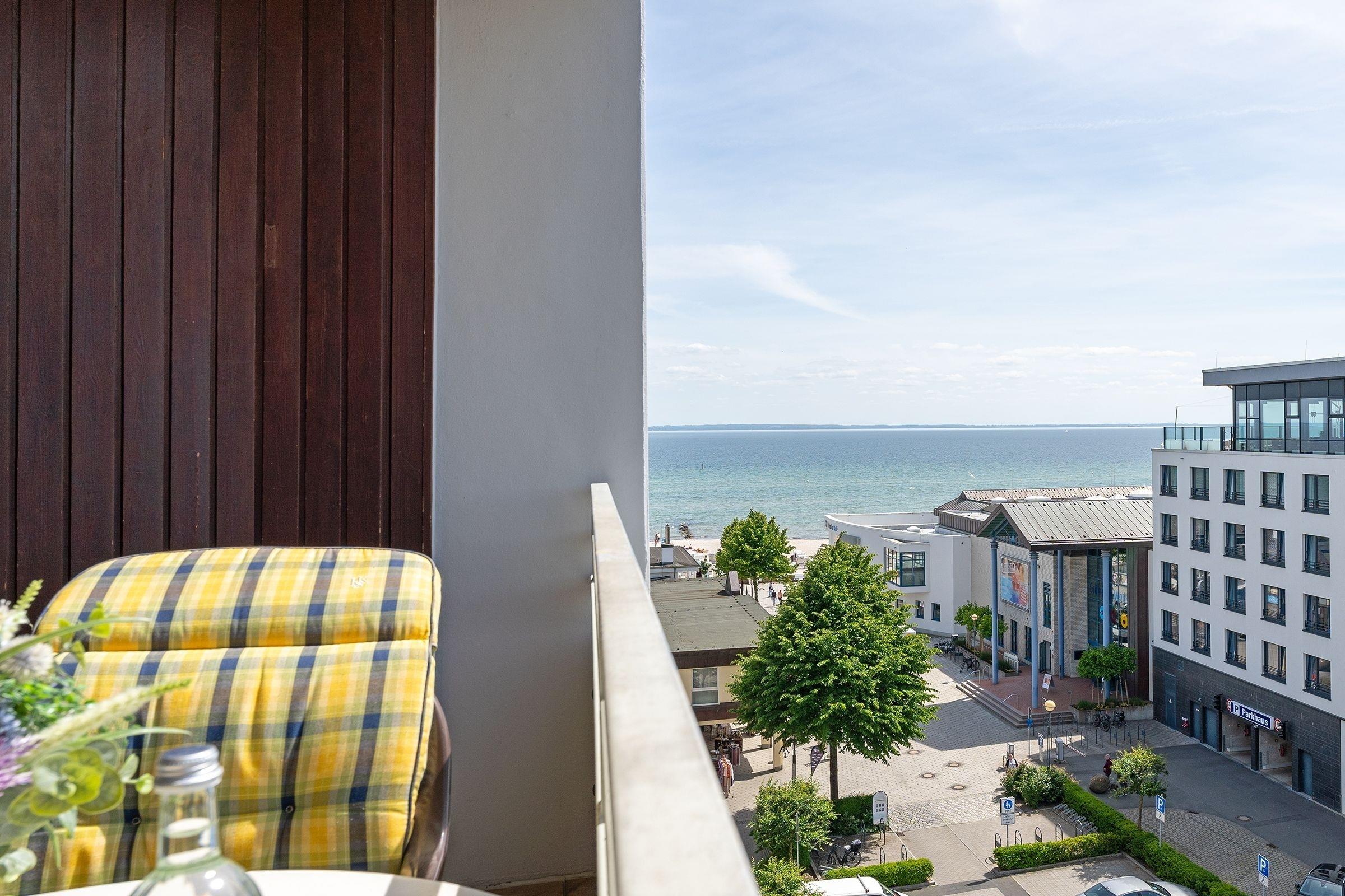 Charmante Ferienwohnung mit Balkon und seitlichem Meerblick in Grömitz, ideal für erholsame Strandtage.