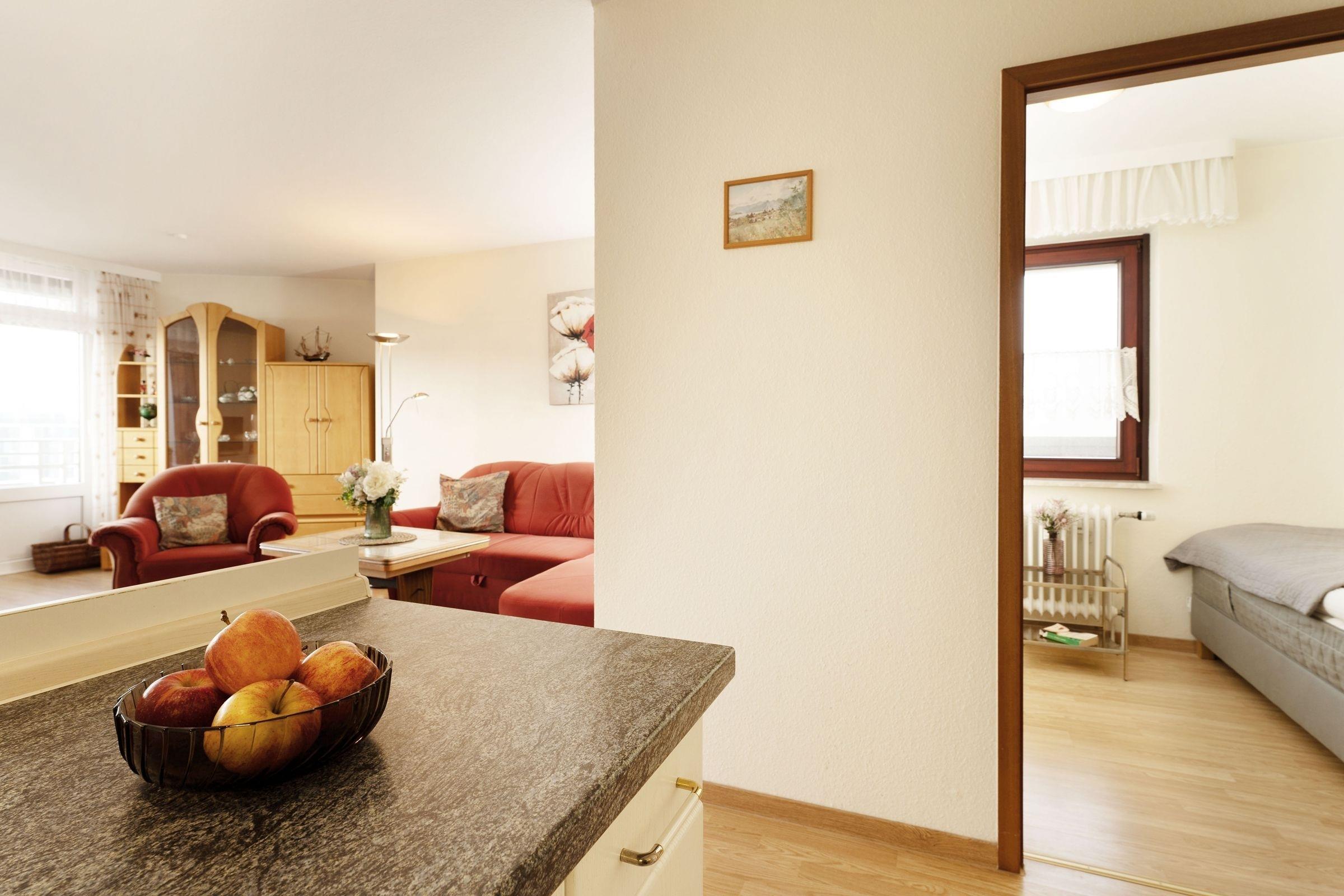 Sie werden sich vom ersten Moment an wie zu Hause fühlen - alles ist harmonisch aufeinander abgestimmt. Ein Schlafraum mit 2 Einzelbetten (je 90x200 cm) und ein Schlafraum mit einem Einzelbett (90x200 cm) lädt zum erholsamen Schlafen ein. Ein großzügig geschnittenes Wohnzimmer mit einer Schlafcouch (ca. 120x180 cm) mit einem Flachbild-TV lässt einen langen Urlaubstag gemütlich ausklingen. Die integrierten Küche lädt zum gemütlichen Kochen und die Essecke zum Verweilen ein. Ein direkter Ausgang zum Eckbalkon lässt Sie die Abendsonne genießen. Von hier aus haben Sie einen seitlichen Blick auf die Ostsee.