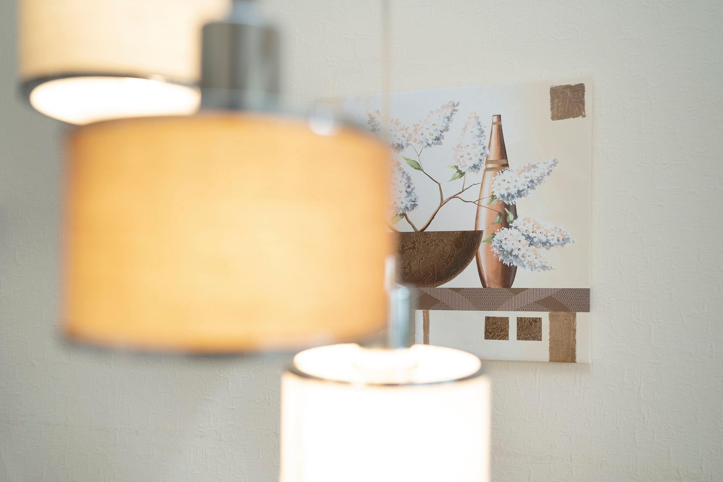 zentral gelegene Wohnung, genügend Plätze auf der Couch um den Abend gemütlich ausklingen zu lassen, WZ-Lampe hängt zu niedrig, man kann sich leicht den Kopf stossen