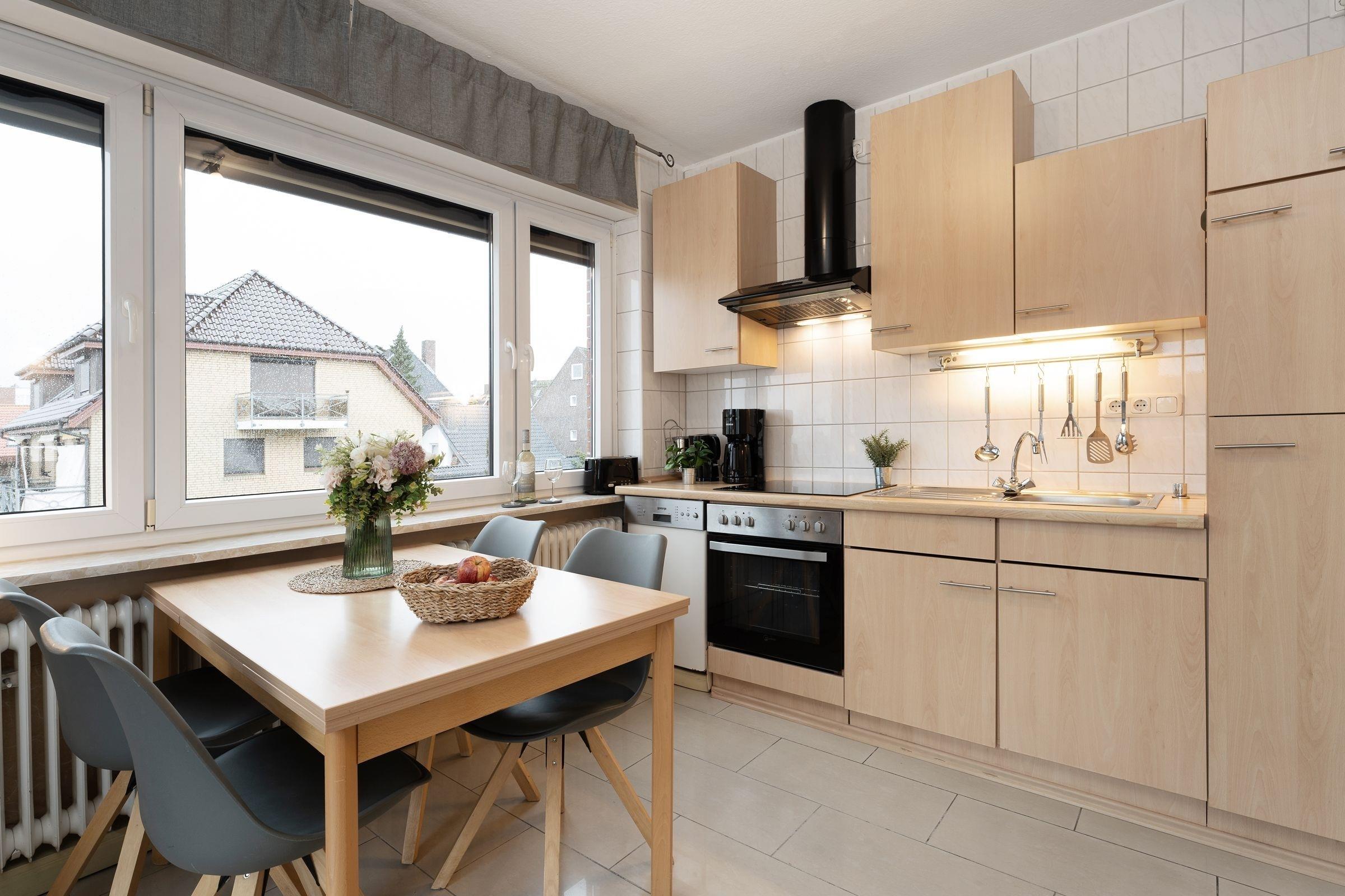Bis zu 2 Personen können hier einen entspannten Urlaub mit saisonal eingeschränktem Meerblick über den Deich hinweg genießen. Das freundliche Wohnzimmer mit Sofa und Smart-TV sowie Bluetooth-Radio schenkt Ihnen behagliche Urlaubsstunden. Über den kostenlosen WLAN-Anschluss bleiben Sie mit Ihren Lieben in Kontakt. Die integrierte Küche ist auf kleinem Raum gut ausgestattet und gewährleistet eine mühelose Zubereitung schmackhafter Köstlichkeiten. Zum Essen oder Spielen finden Sie am Esstisch ausreichend Platz. Vom Wohnraum aus gelangen Sie auf den großzügigen, möblierten Balkon Richtung Meer, auf dem Sie im Sonnenschein die Seele baumeln lassen können. Bei Bedarf sorgt ein Sonnenschirm für Schatten. Im separaten Schlafzimmer spendet ein großes Doppelbett (180x200 cm) erholsame Nächte und im gepflegten, hellen Duschbad bleiben keine Wünsche offen.