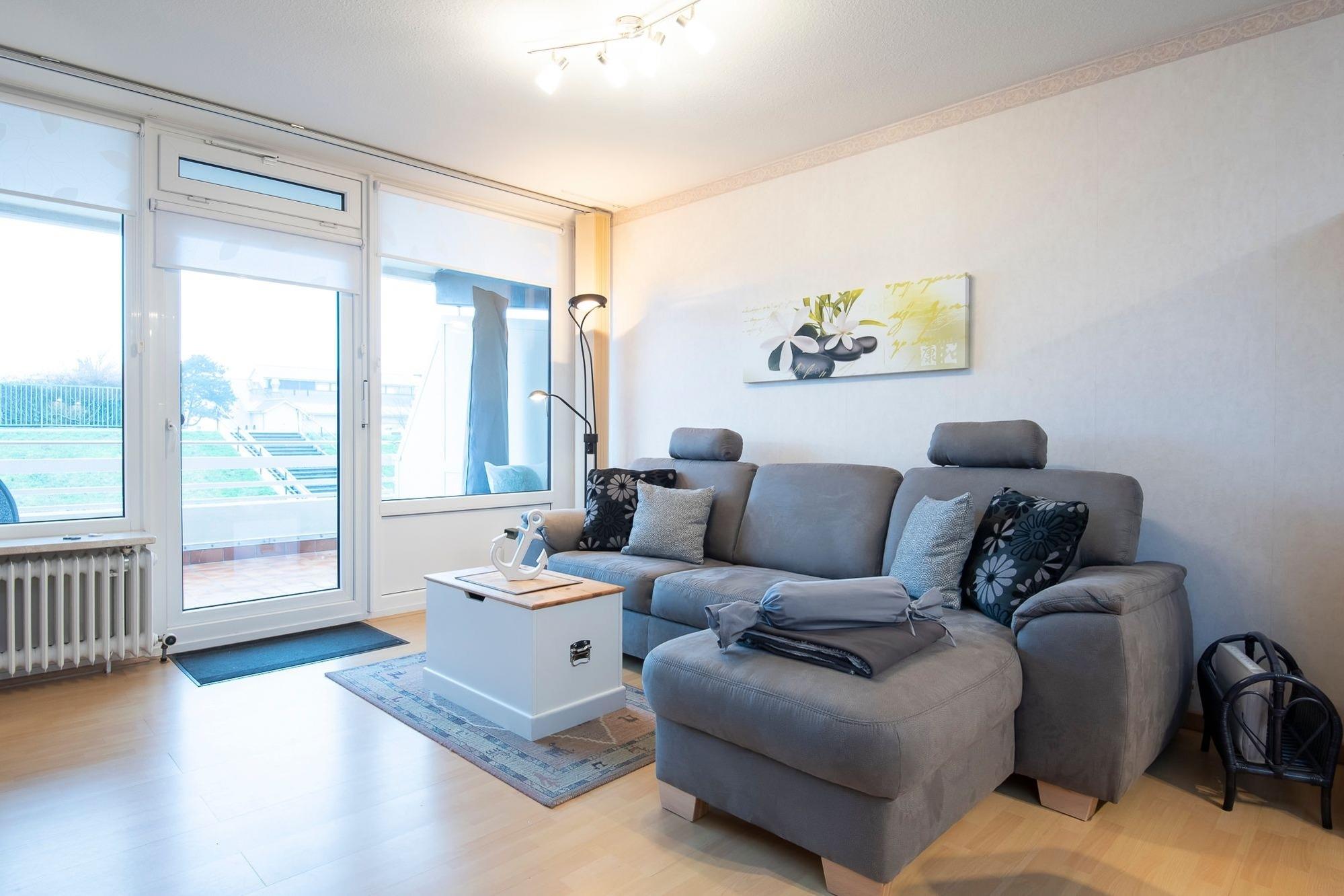 Gemütliche Ferienwohnung mit Balkon und Deichblick in Grömitz, nahe Strand und Promenade.