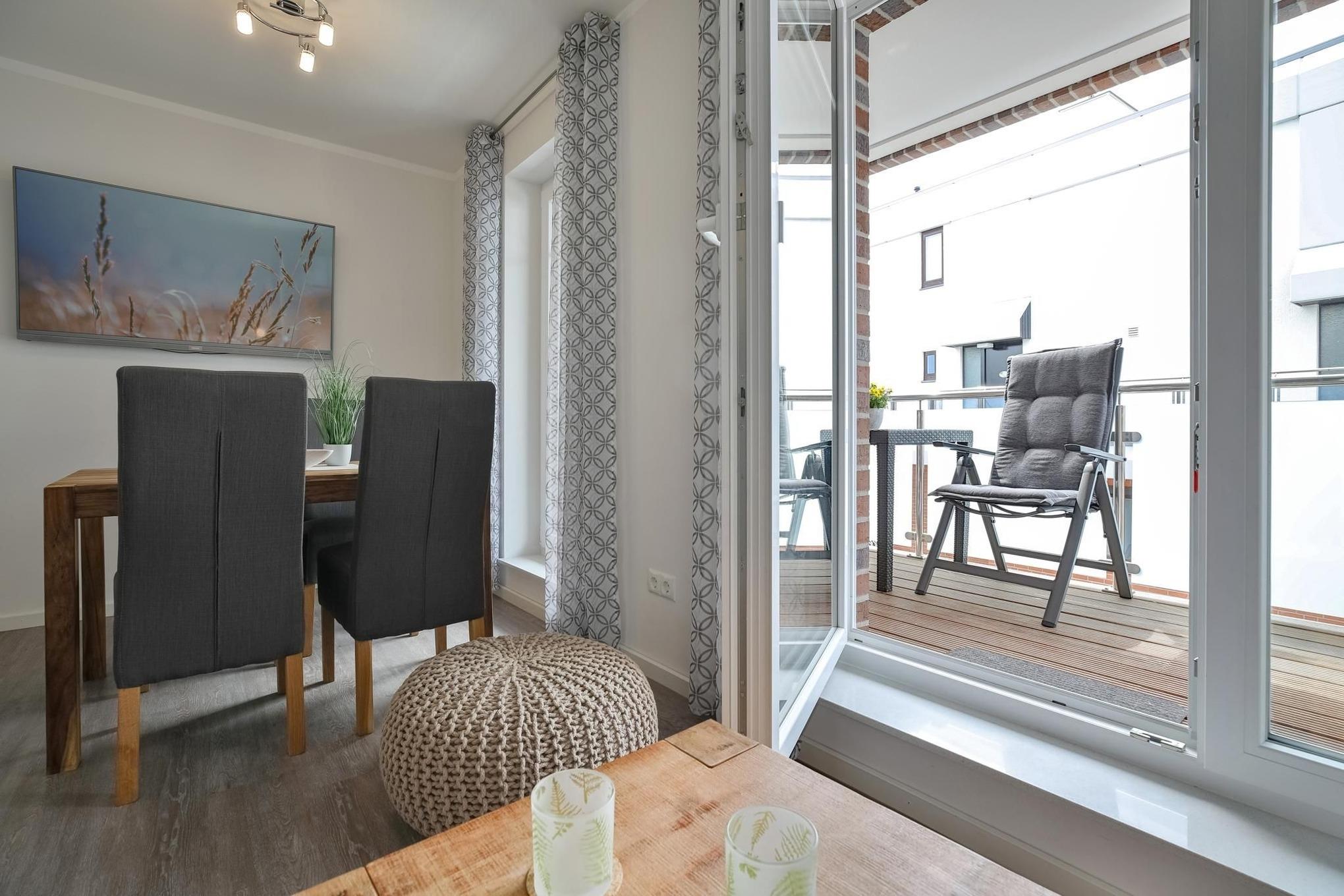 Stilvolle 2-Zimmer-Ferienwohnung mit Balkon und Meerblick in Grömitz, ideal für erholsame Ostseeurlaube.