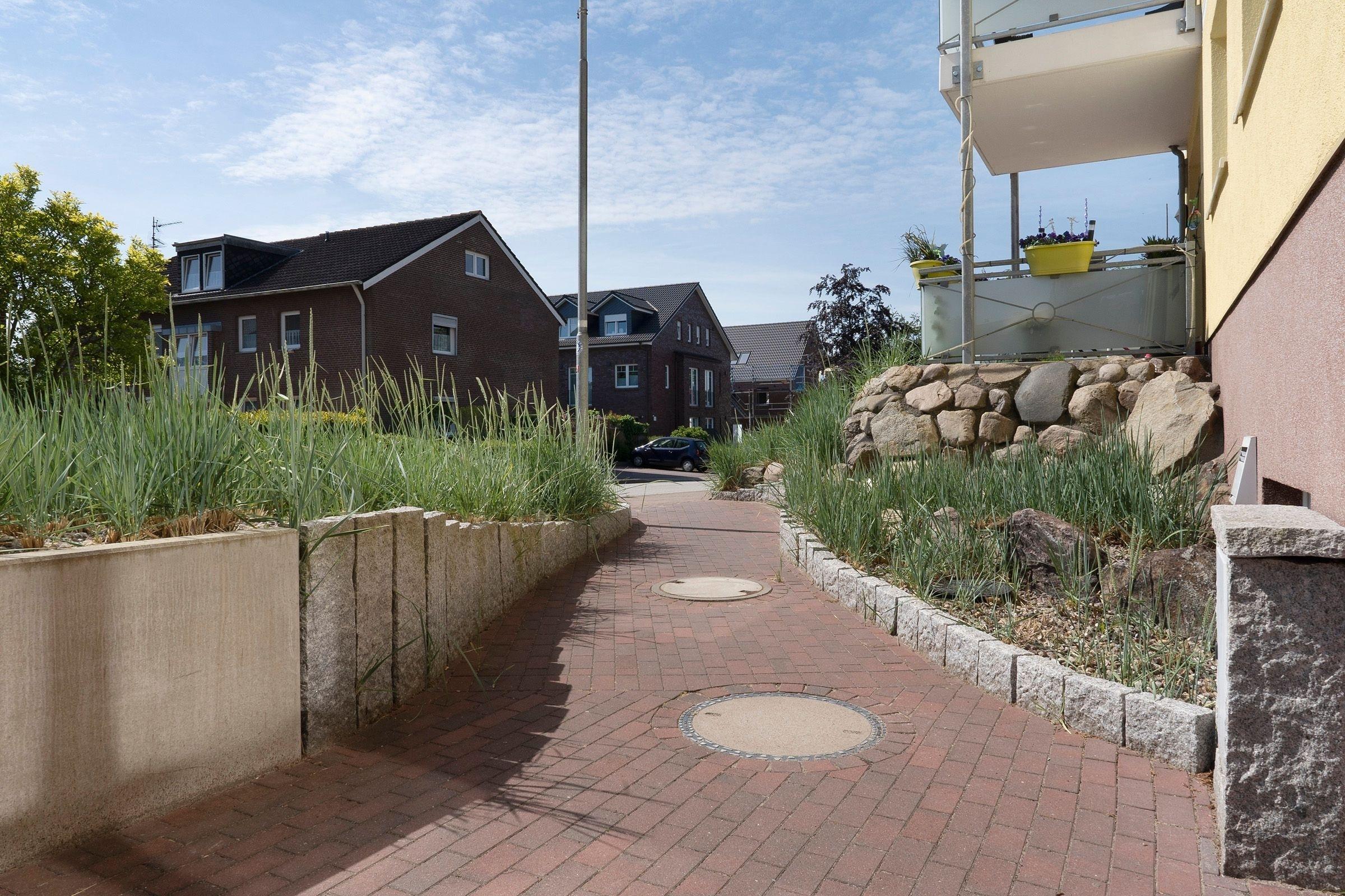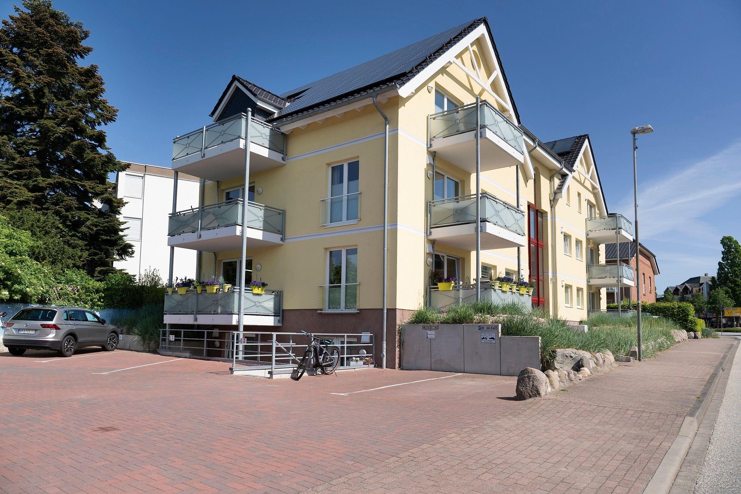 Ein PKW-Außenstellplatz ist für Sie reserviert. Für mitgebrachte Fahrräder ist ein Fahrradkeller vorgesehen. Waschmaschine und Trockner stehen zur gemeinschaftlichen Nutzung zur Verfügung. Ebenfalls steht für die Gäste ein Holz-Bollerwagen bereit.