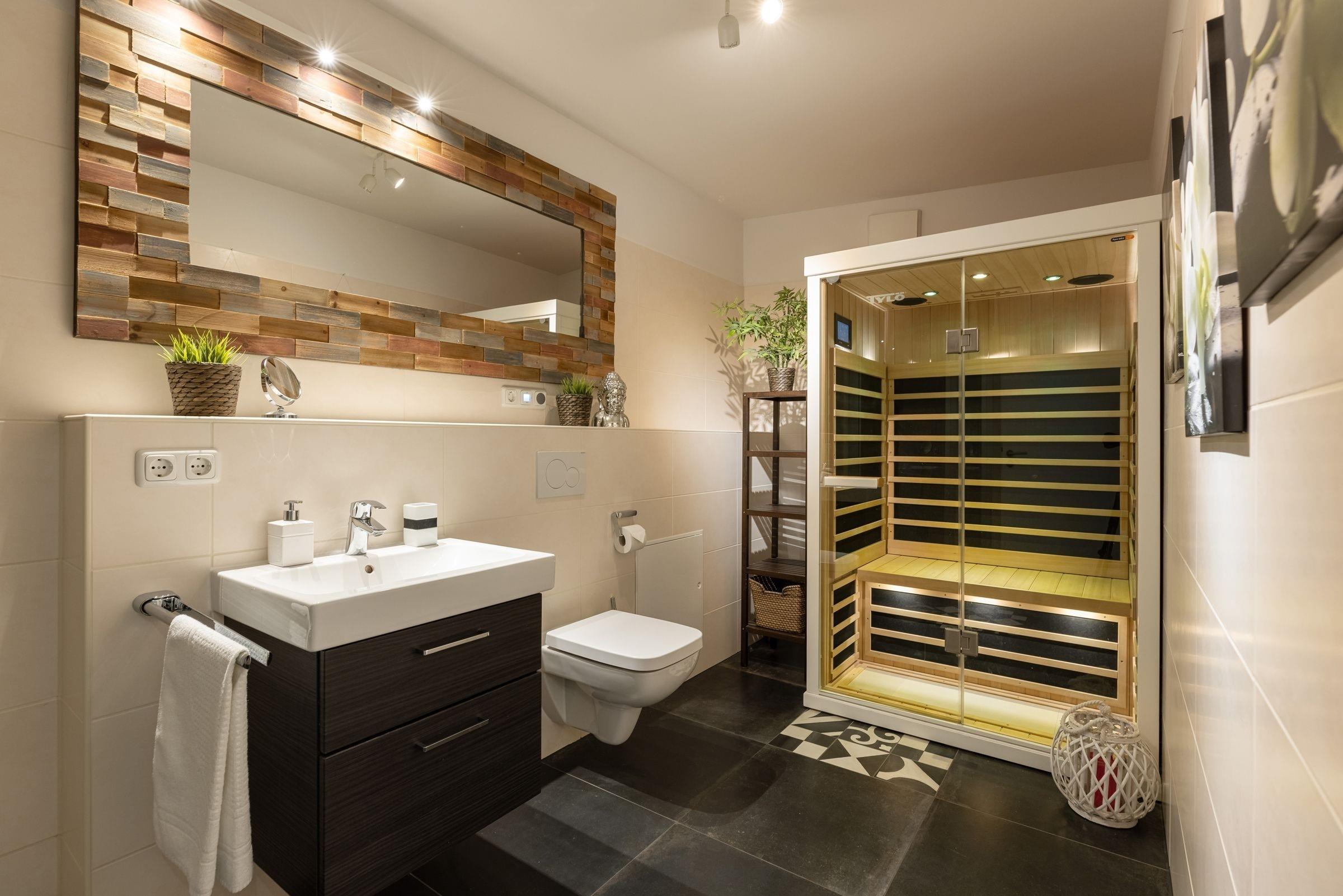 Freuen Sie sich auf ein modernes Wohnzimmer mit direktem Zugang zum Balkon mit Südostausrichtung und gemütlicher Sitzgruppe, eine üppig ausgestattete integrierte Küche mit Essplatz sowie über zwei separate Schlafzimmer, eines mit Doppelbett (180x200 cm), das andere mit zwei Einzelbetten (je 100x200 cm). Das innenliegende Wohlfühlbad erwartet Sie mit einer Infrarotkabine mit integrierter Dampfduschen-Funktion. Das Wohnzimmer und die beiden Schlafzimmer sind jeweils mit einem eigenen Flachbild-TV ausgestattet - hier ist auch an Regentagen für gute Unterhaltung gesorgt.