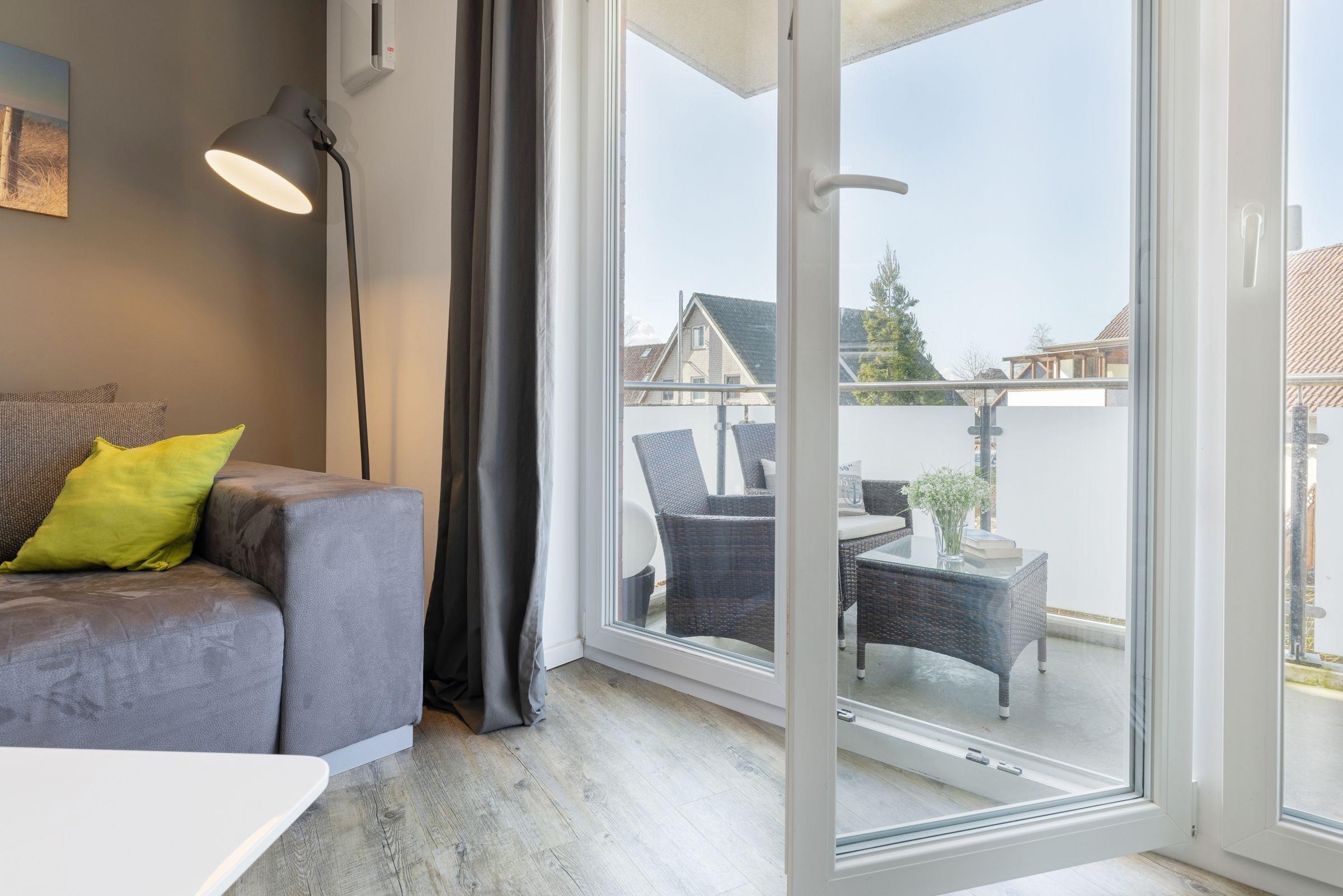 Moderne Ferienwohnung mit Balkon in Grömitz, ideal für entspannte Tage am Meer und Familienurlaub.