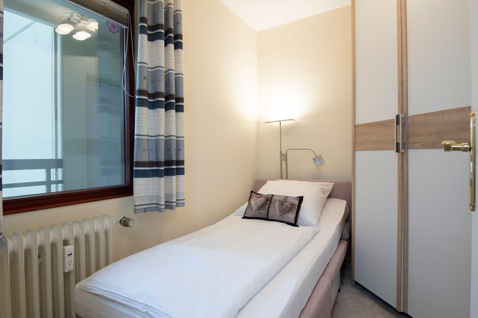 In dieser 2,5-Zimmer-Wohnung finden Sie Platz für max. 4 Erwachsene. Die Wohnung ist modernisiert und hell und freundlich eingerichtet.