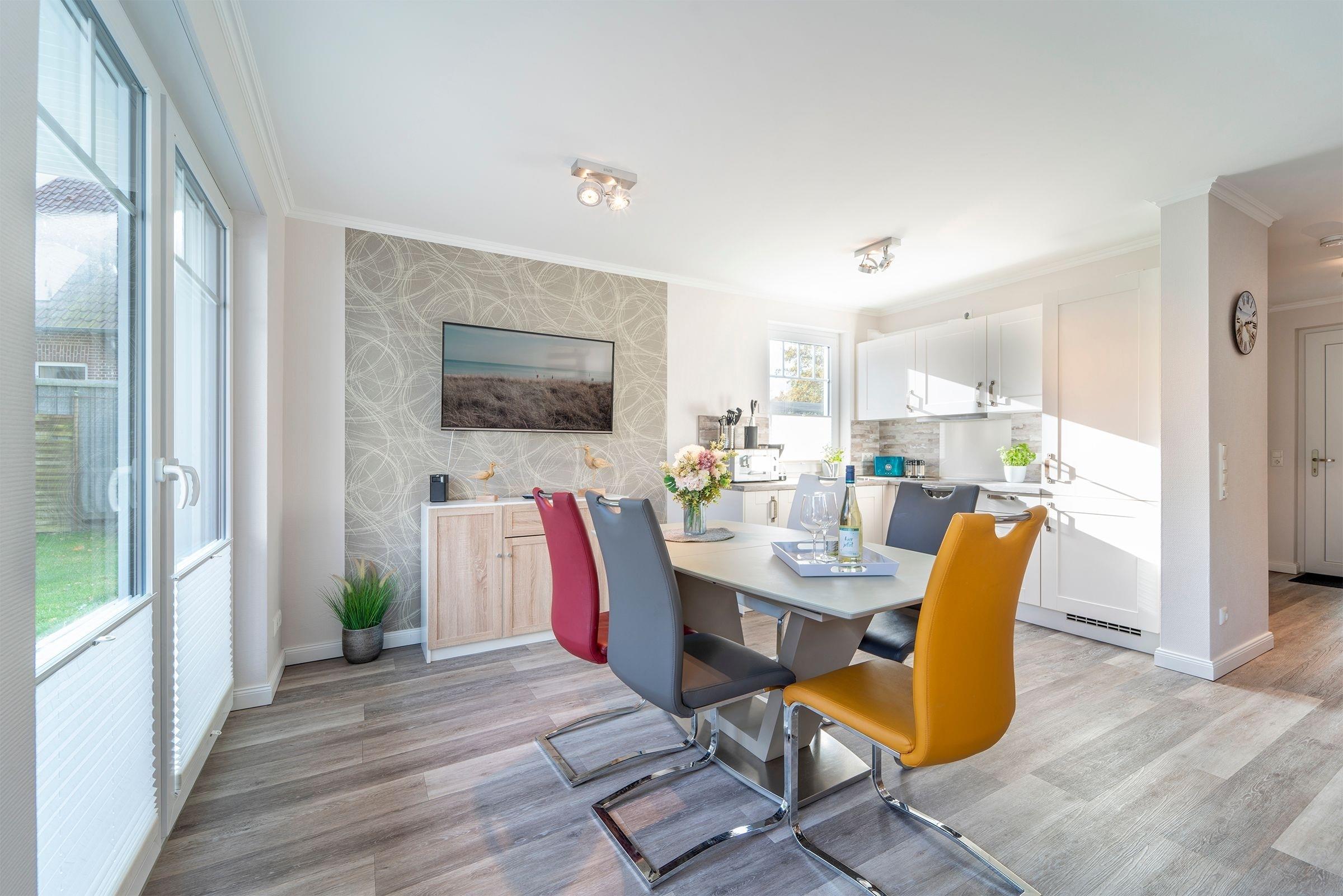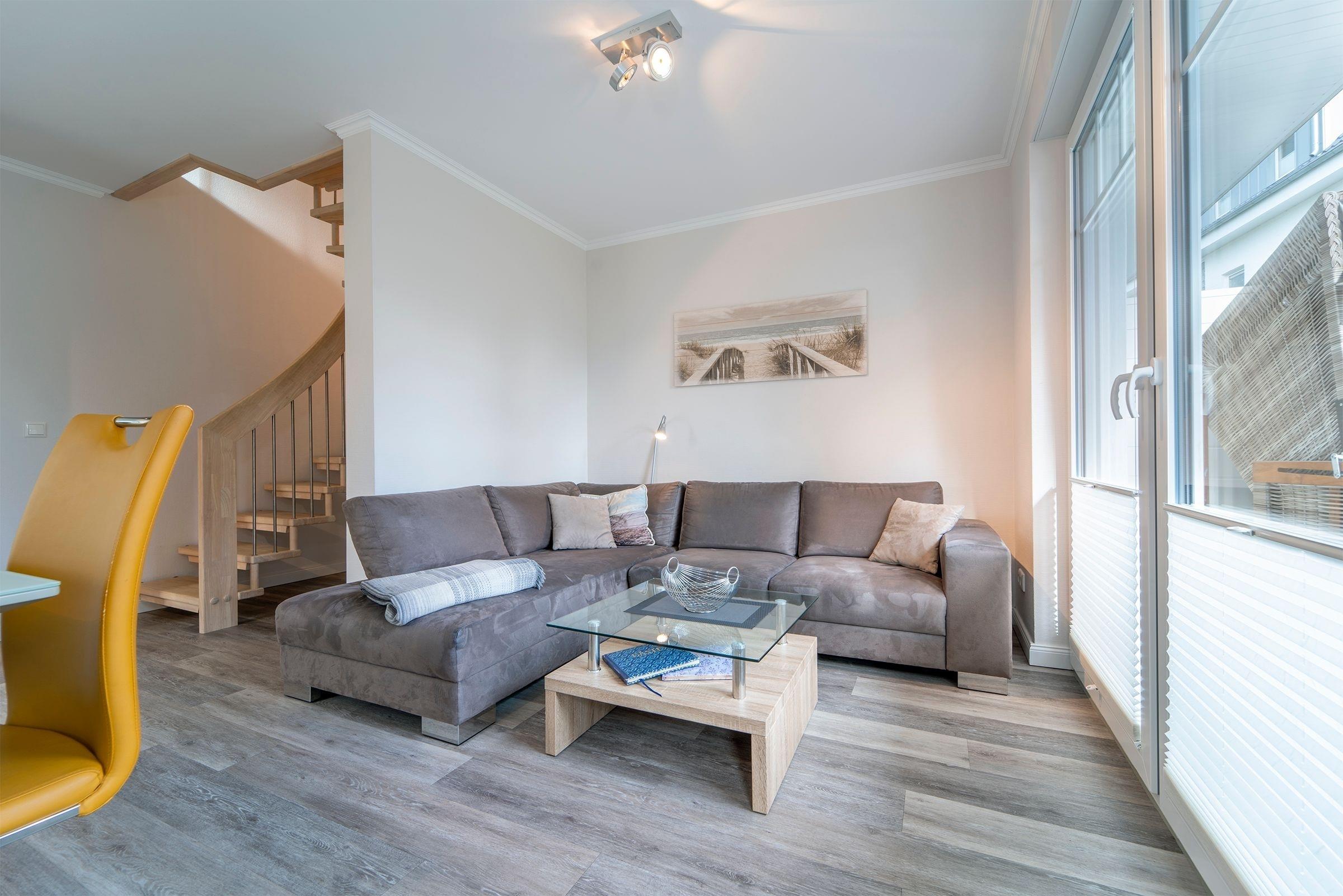 Für wohlige Wärme an kälteren Tagen sorgt die Fußbodenheizung im gesamten Haus. Alle Räumlichkeiten im Parterre verfügen über Außenrollläden. Die große, teilüberdachte Terrasse mit hochwertigen Gartenmöbeln und Strandkorb lädt Sie zum Verweilen in der Sonne ein. Zusätzlich als kleines Extra steht Ihnen ein Kinder-Hochstuhl zur Verfügung. Um auch immer up to date zu sein können Sie gern den kostenfreien WLAN Zugang nutzen.